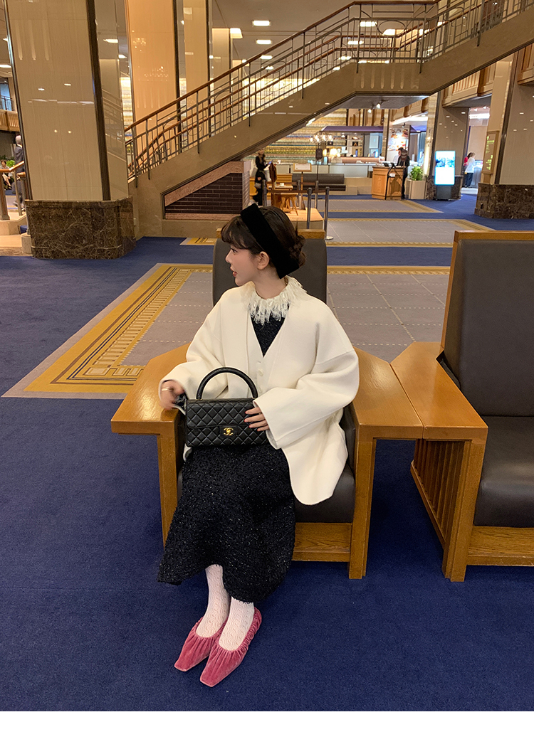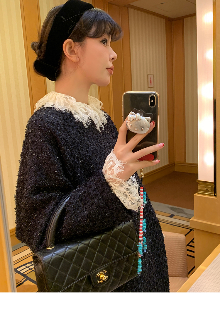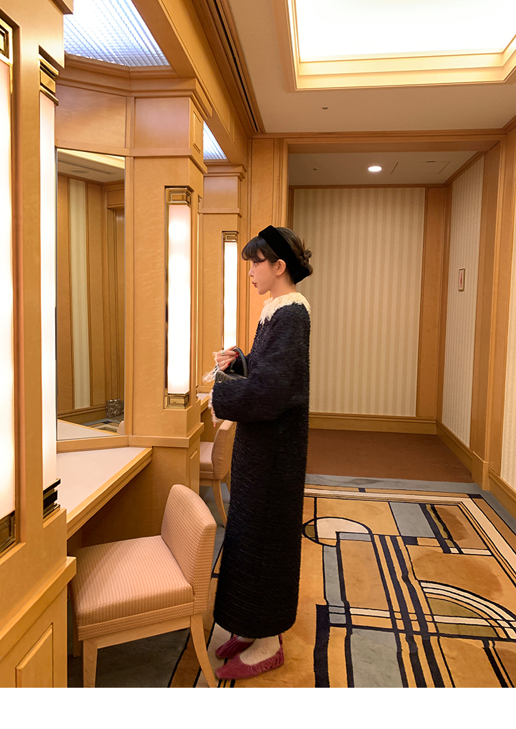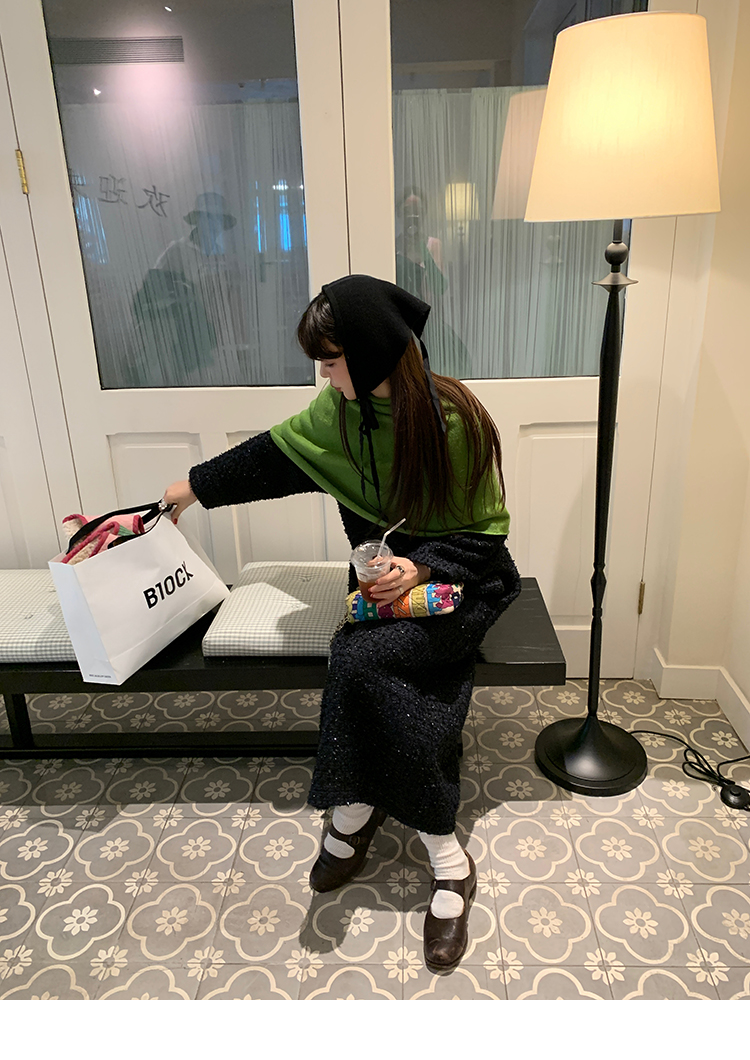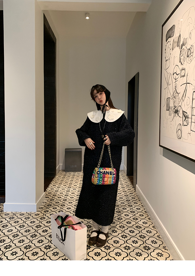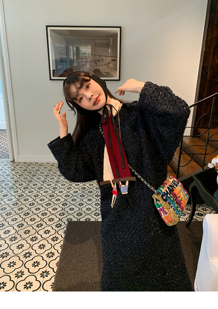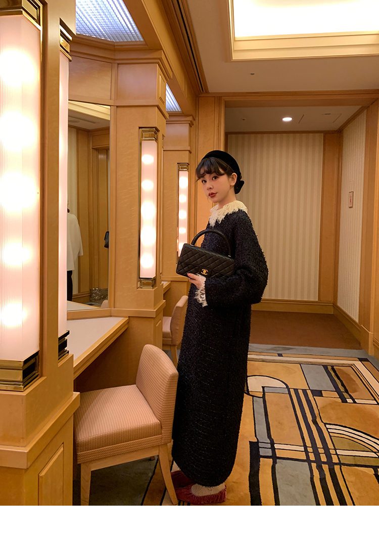 LRIB romantic dignified fine shimmering tweed long-sleeved dress