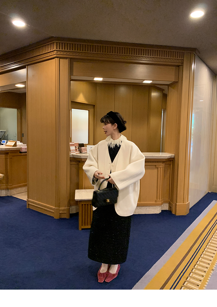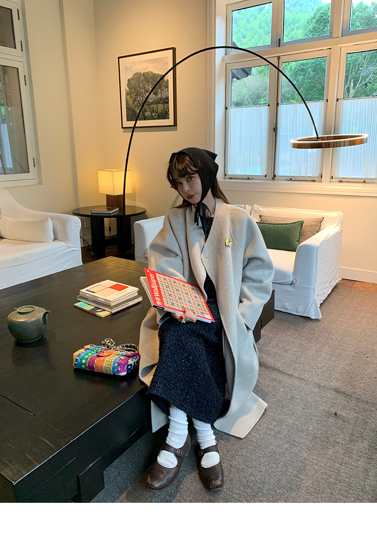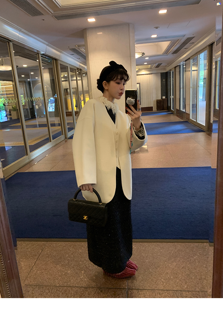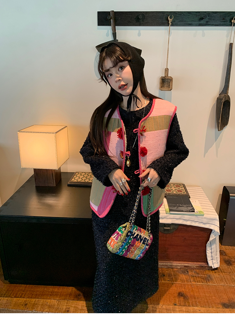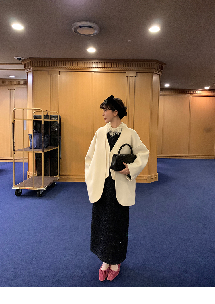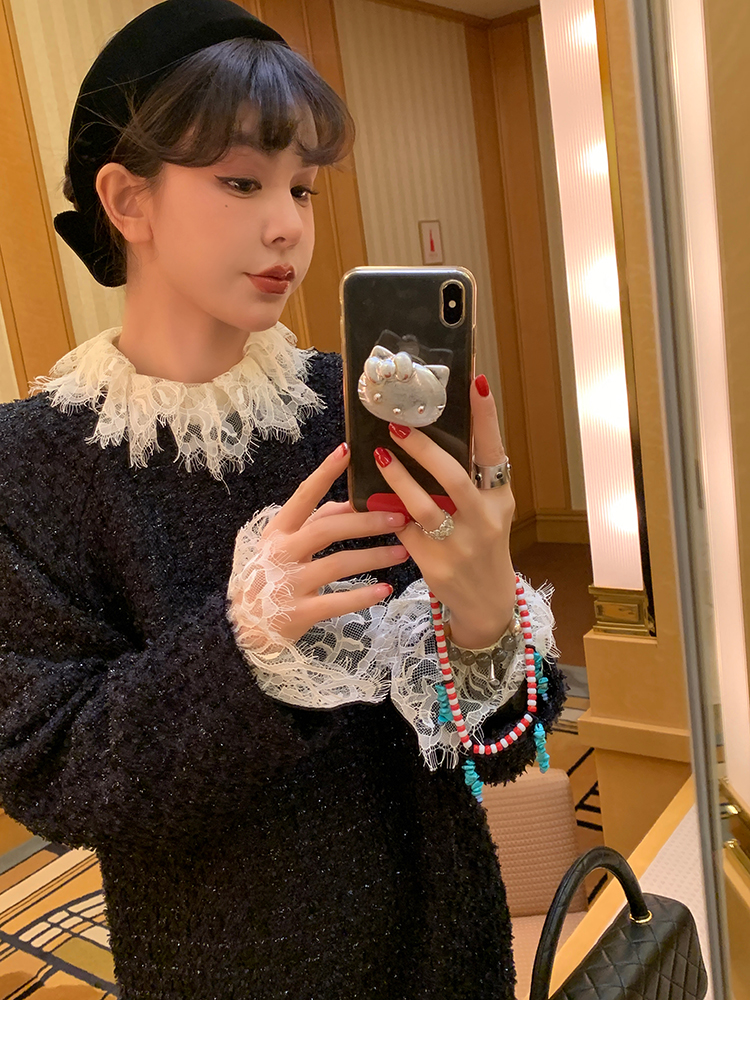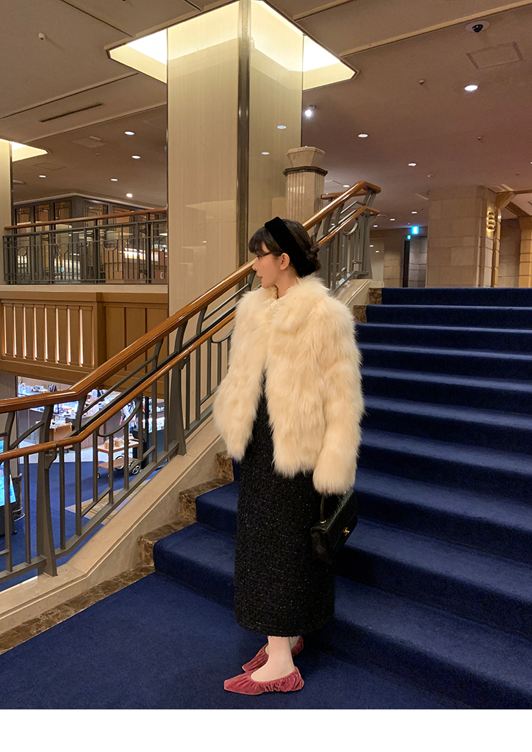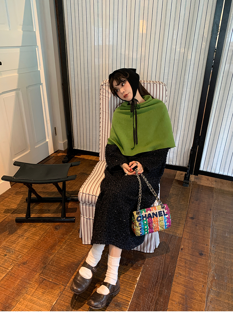 LRIB romantic dignified fine shimmering tweed long-sleeved dress