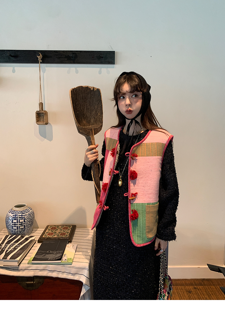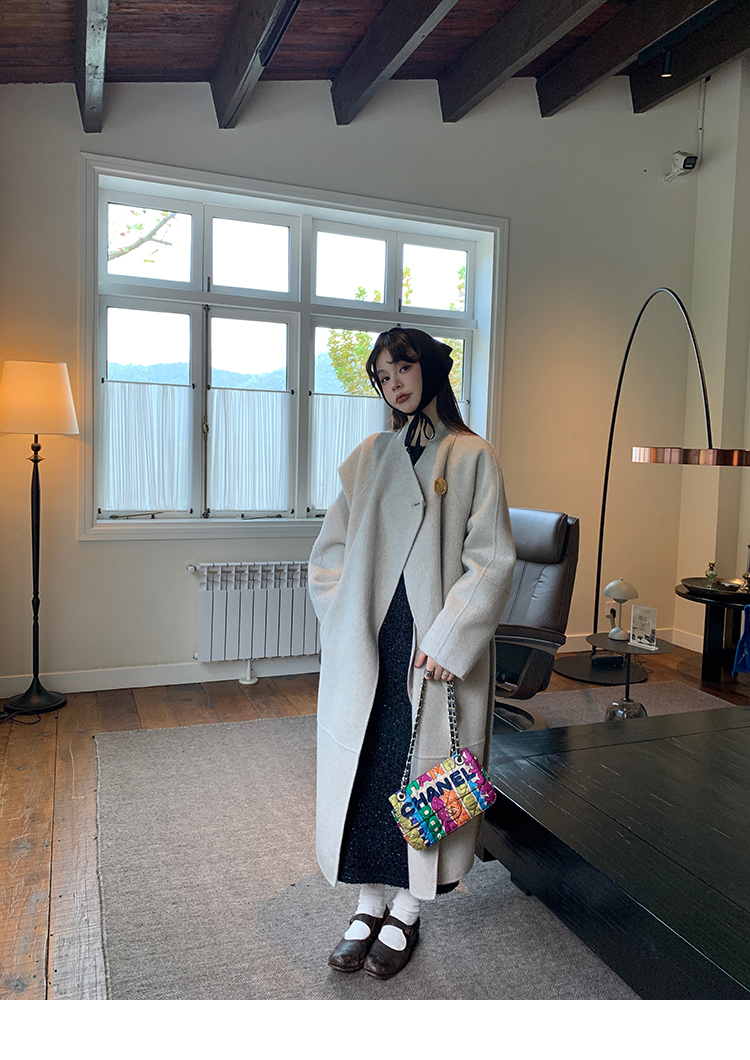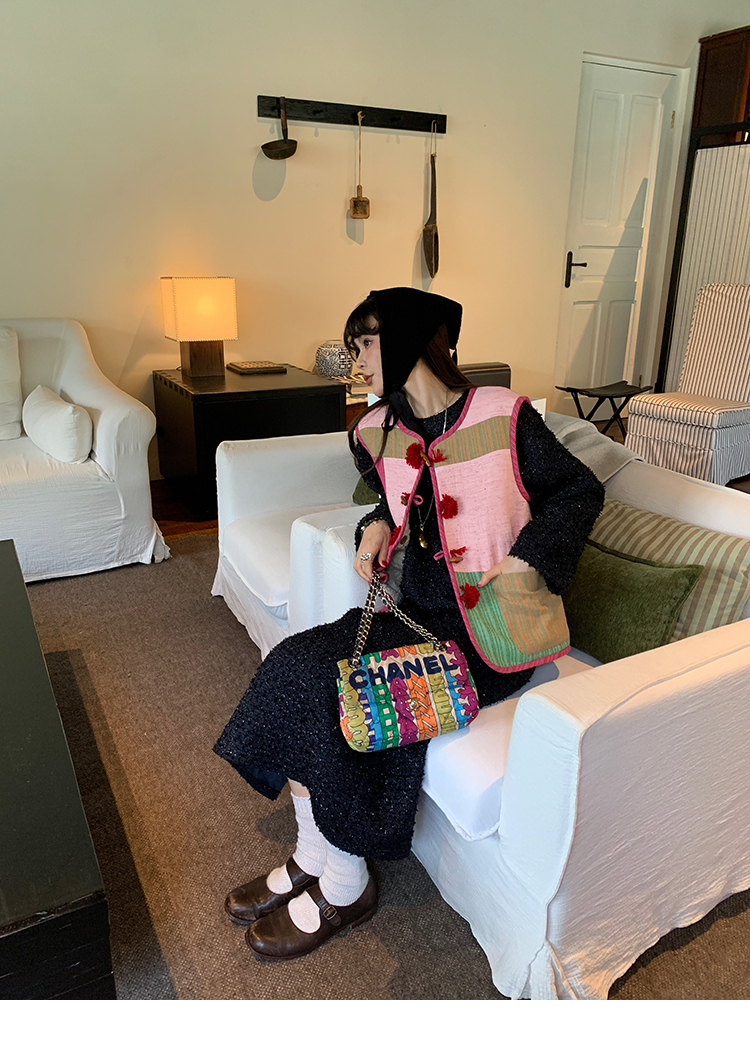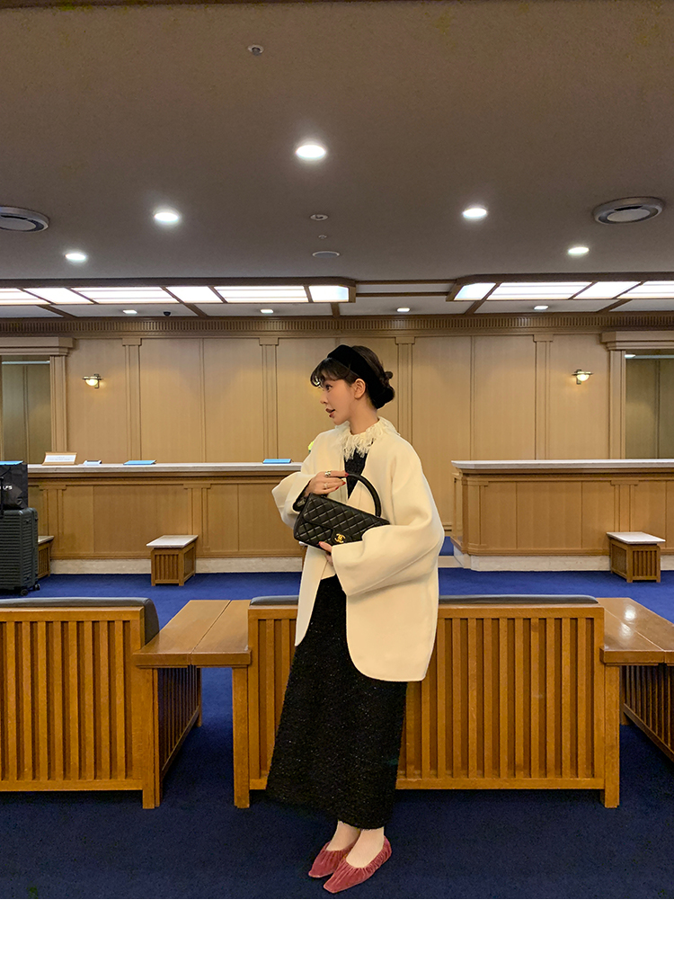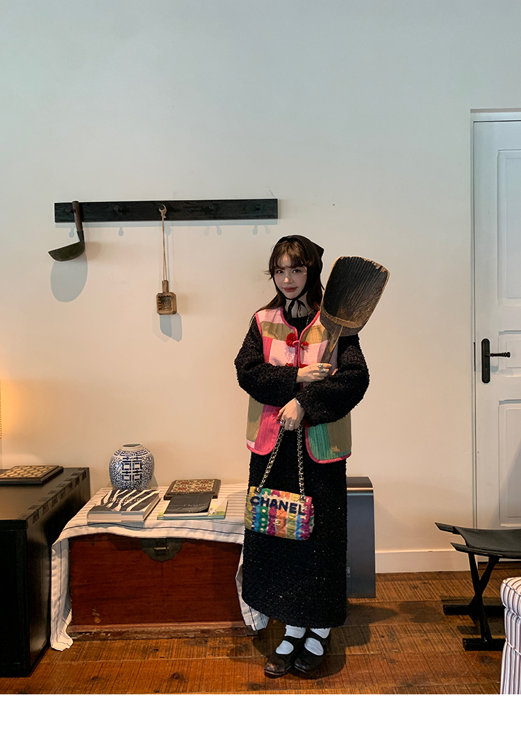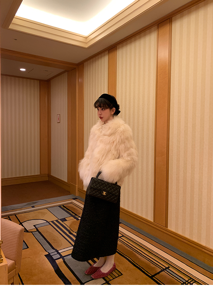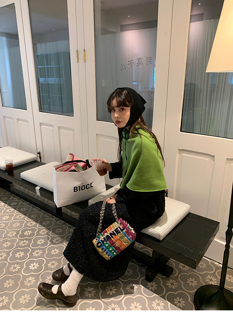 LRIB romantic dignified fine shimmering tweed long-sleeved dress