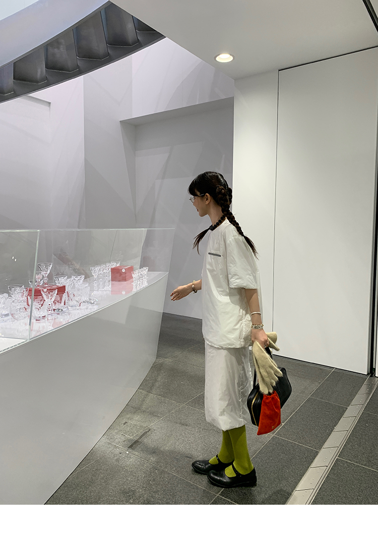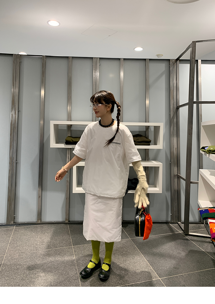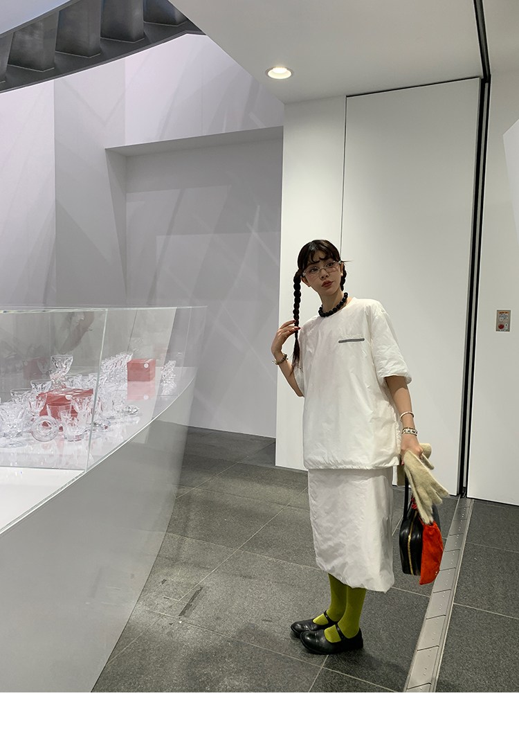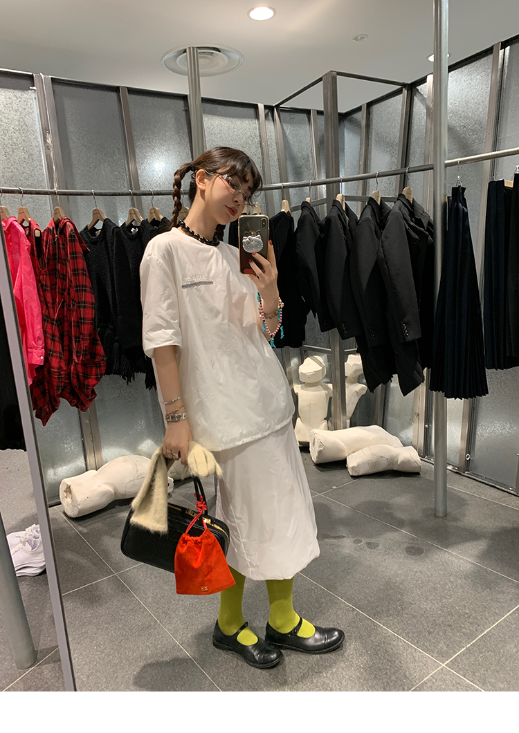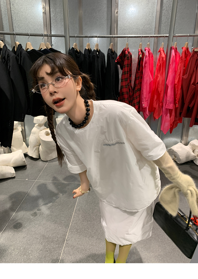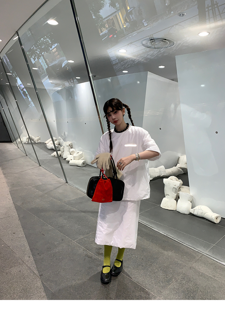 LRIB light simple white heng cotton short-sleeved top and skirt set