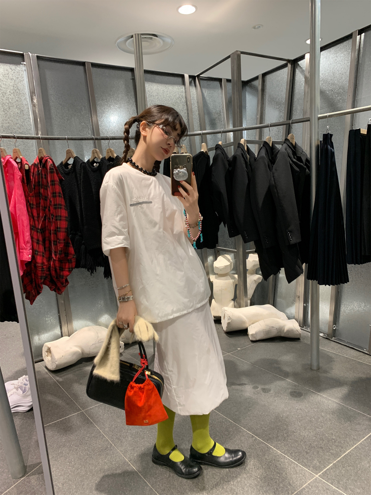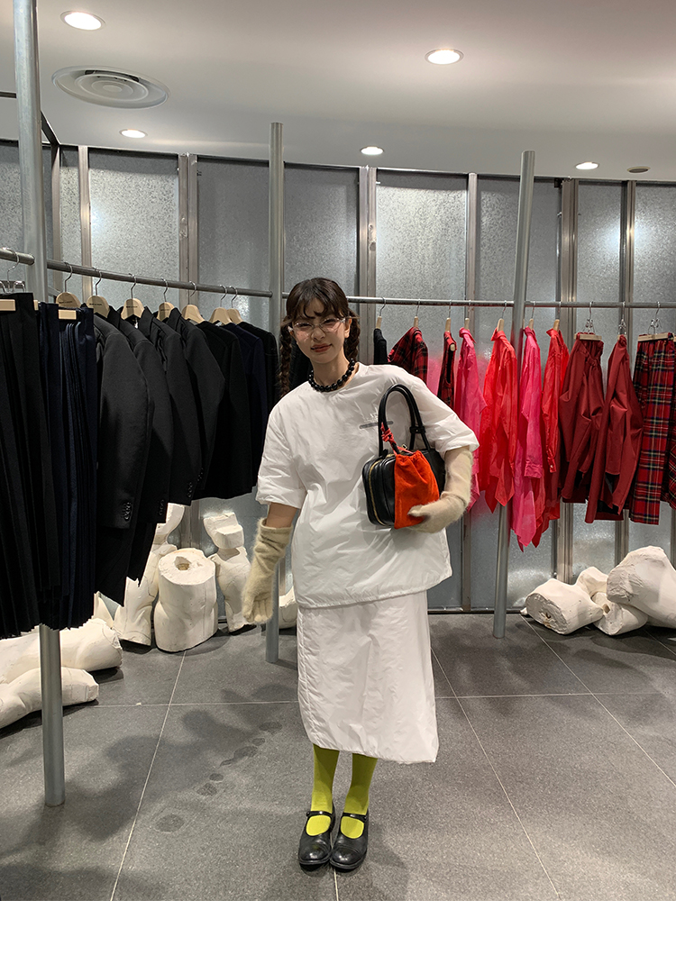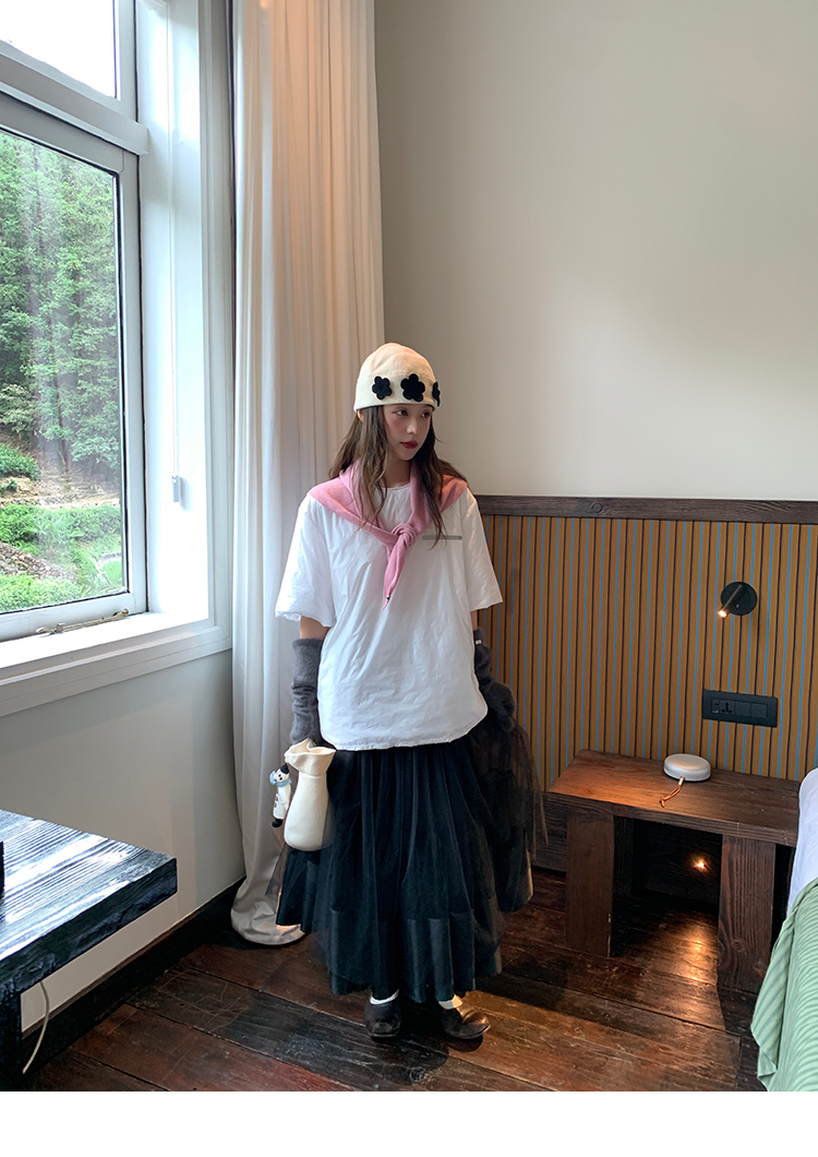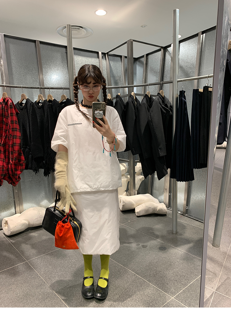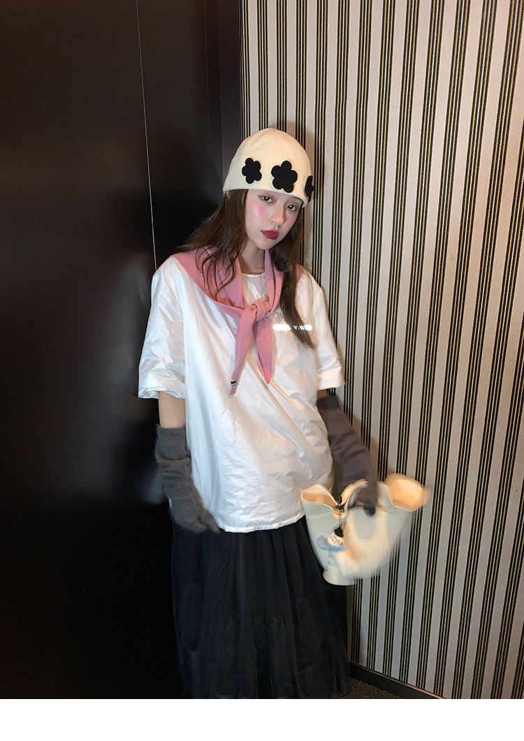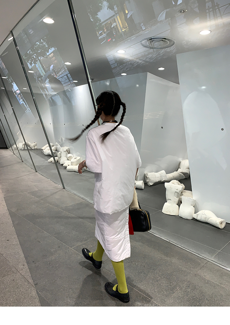 LRIB light simple white heng cotton short-sleeved top and skirt set
