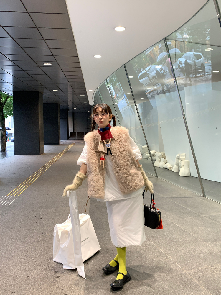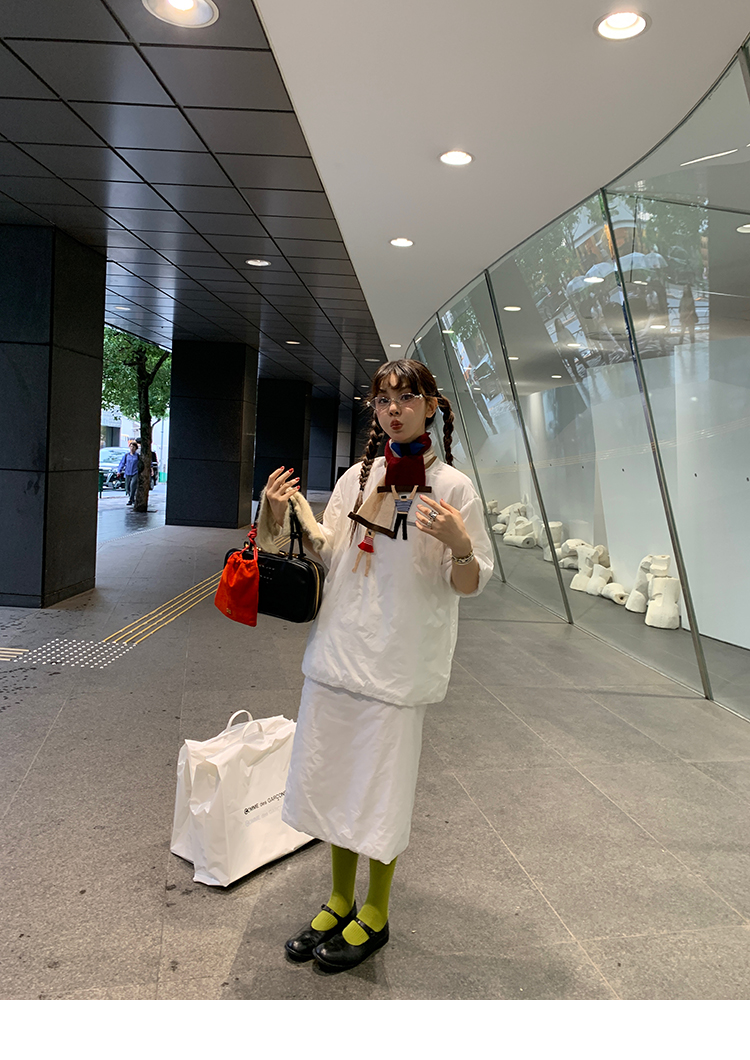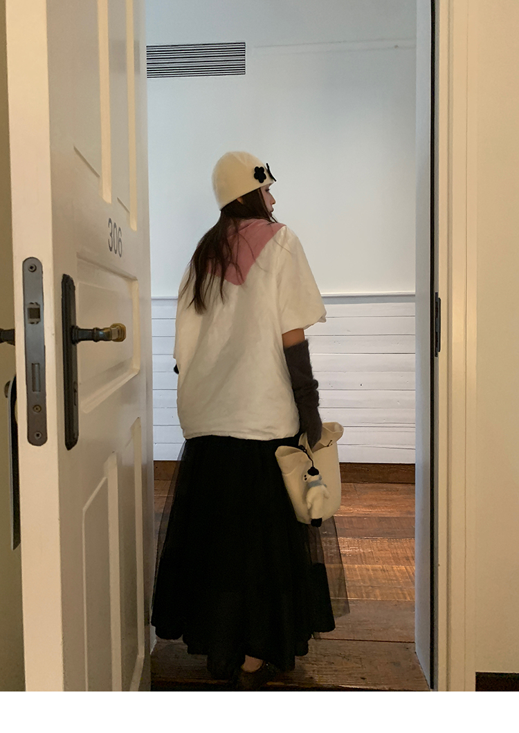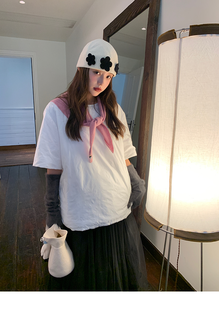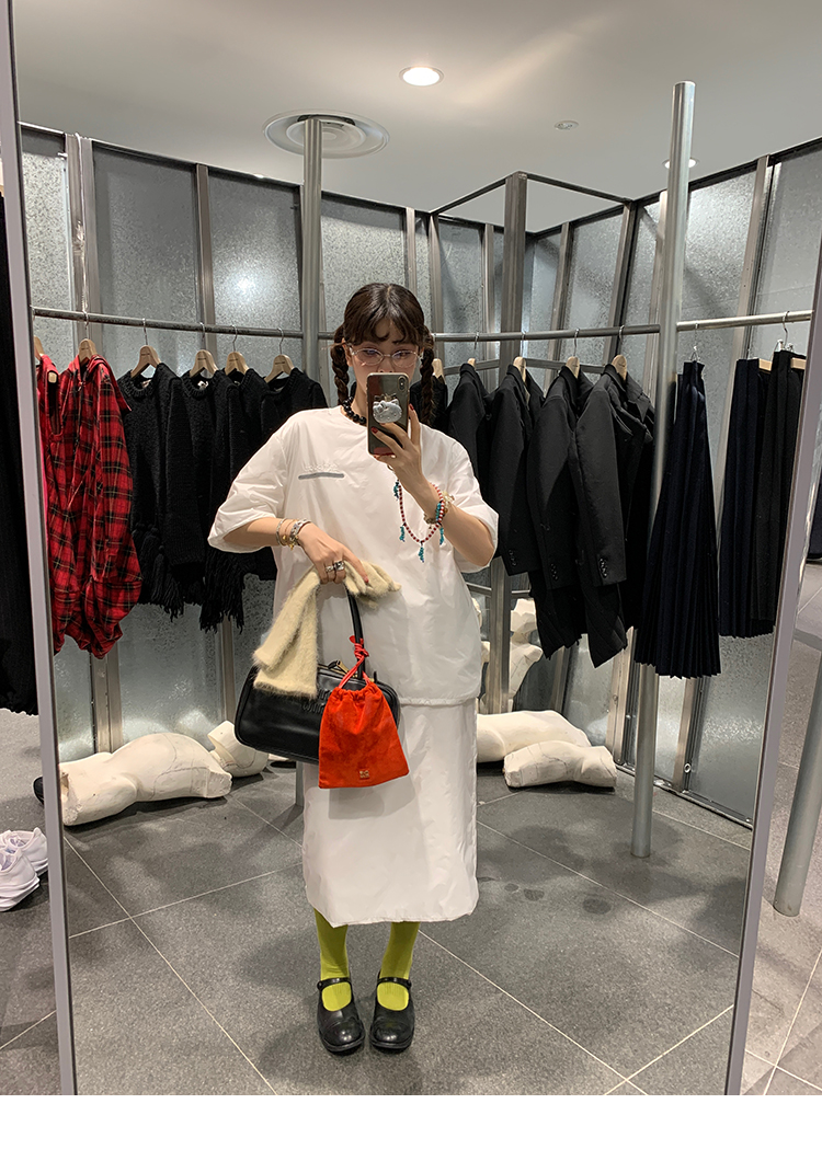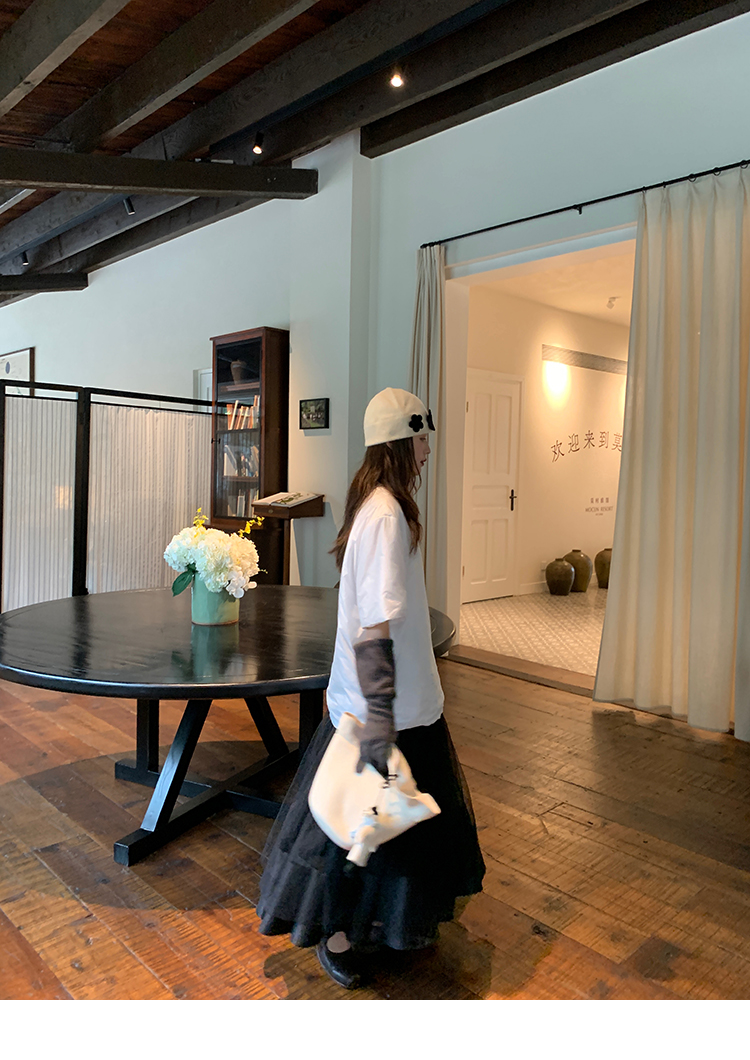 LRIB light simple white heng cotton short-sleeved top and skirt set
