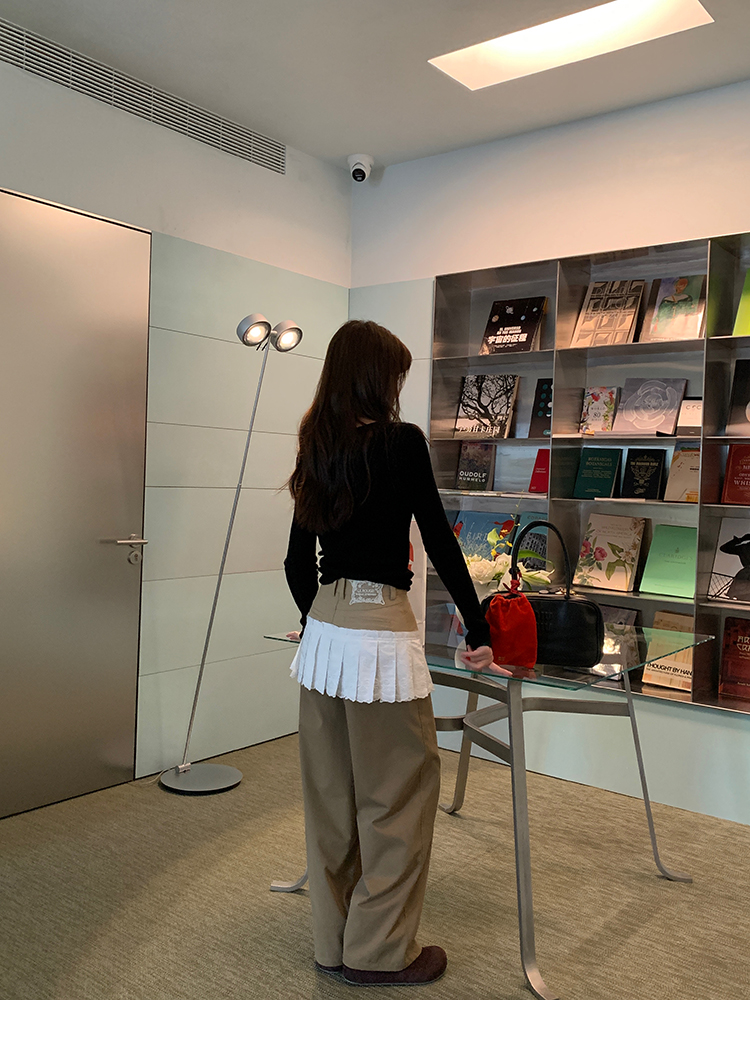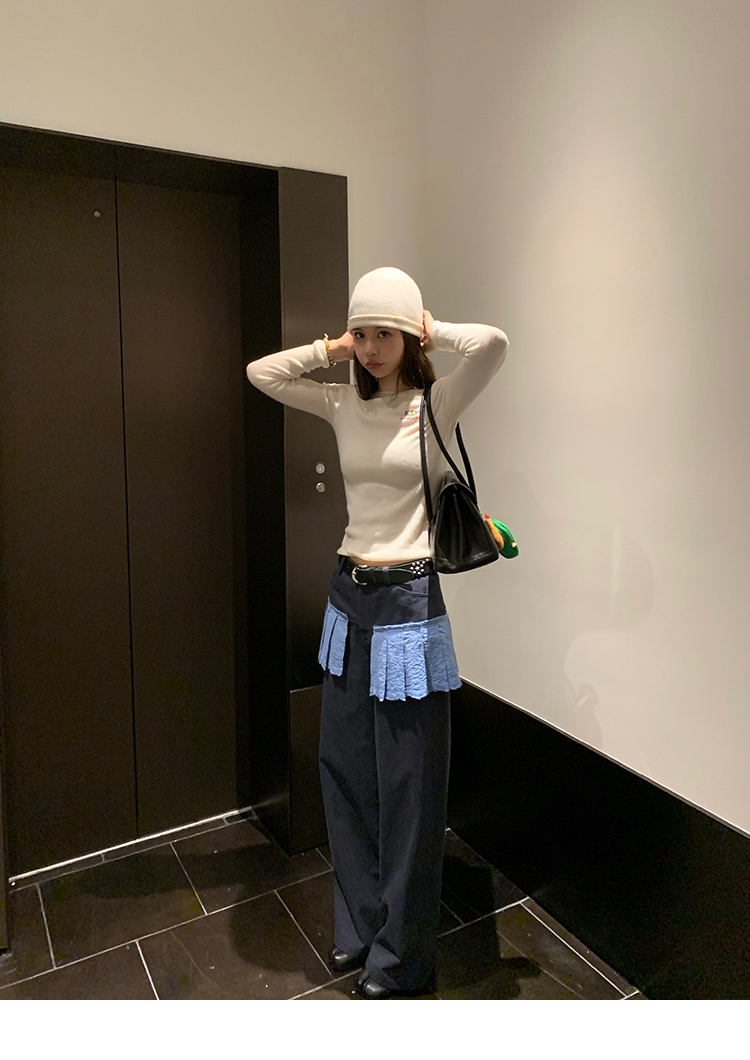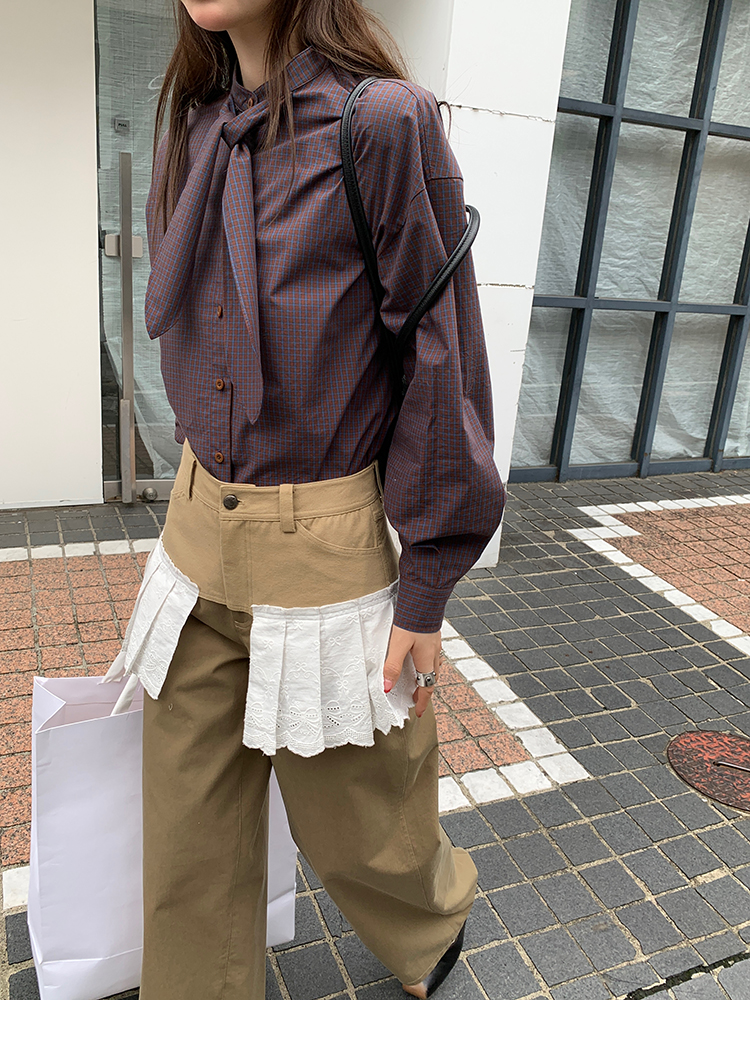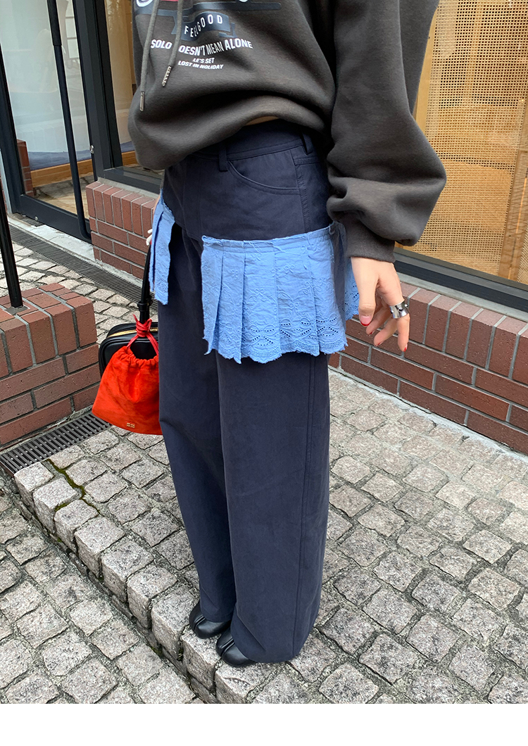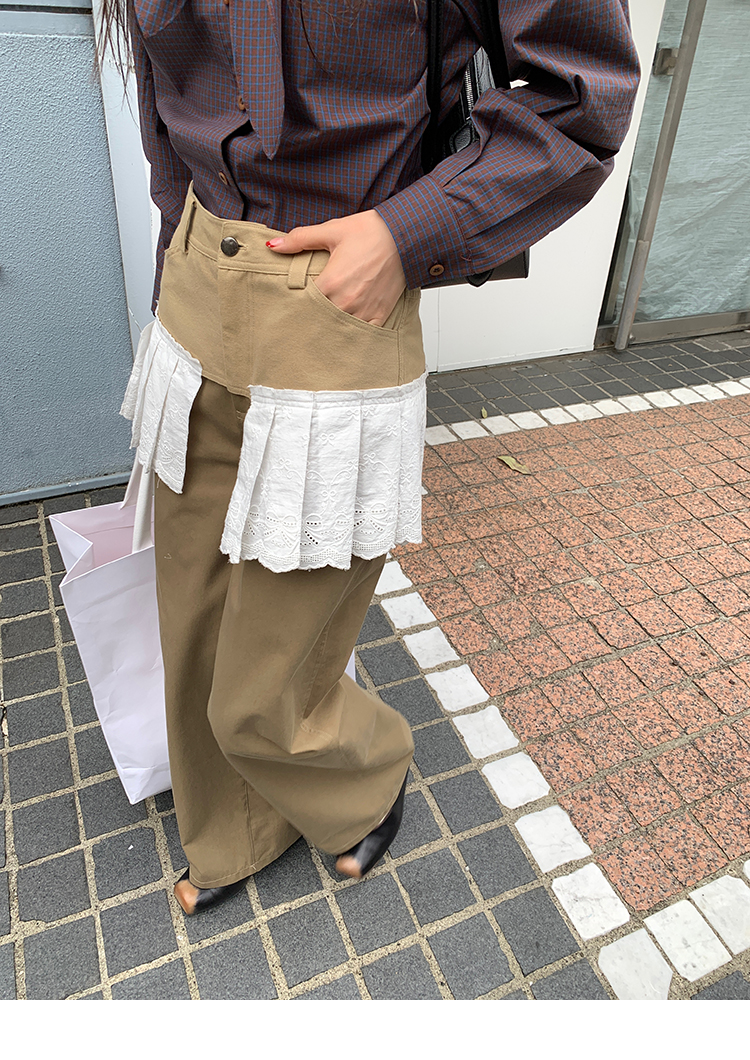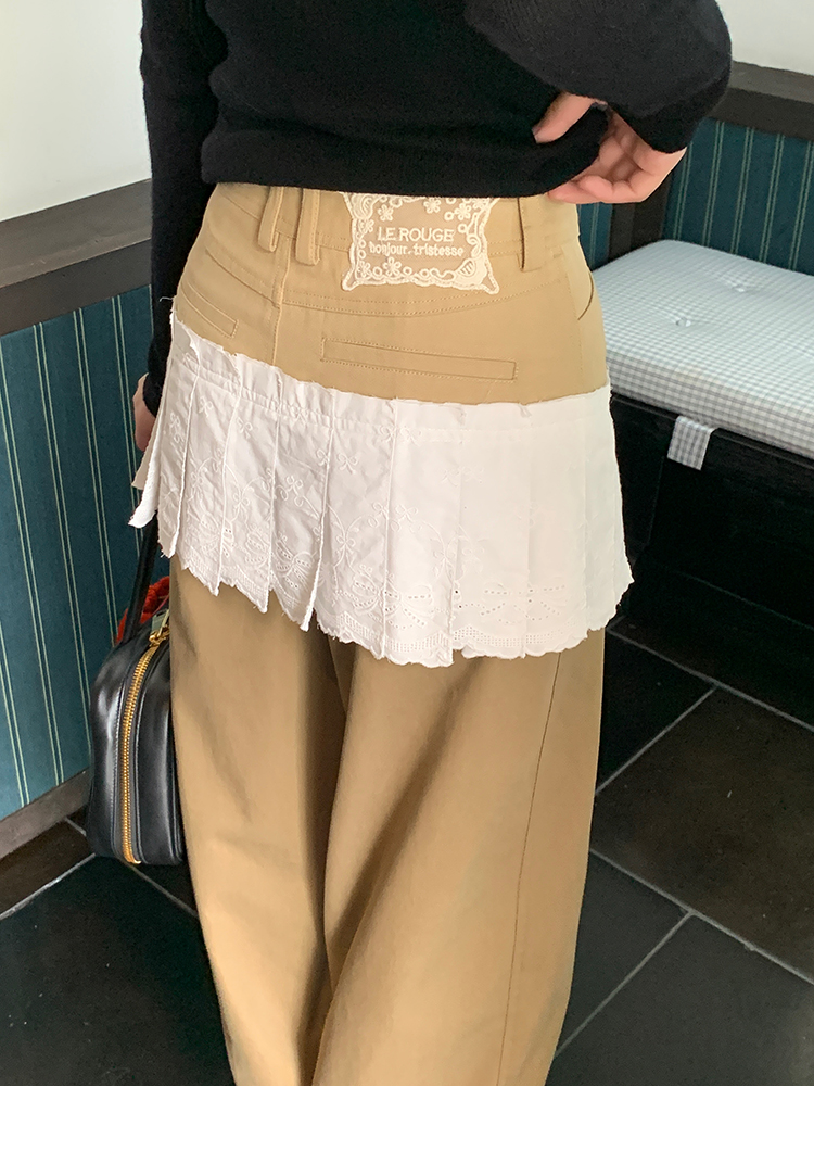 LRIB fake two-piece hollow embroidery lace skirt retro pants