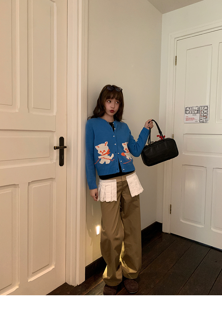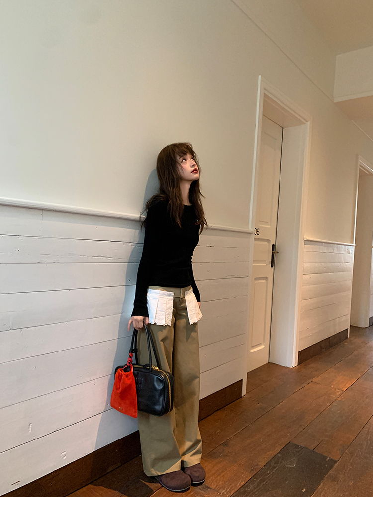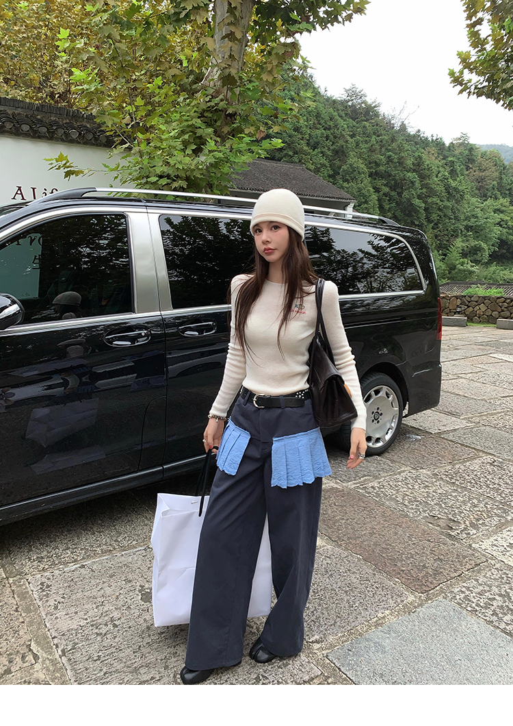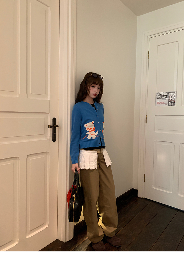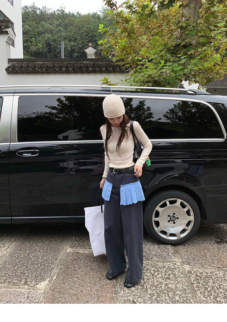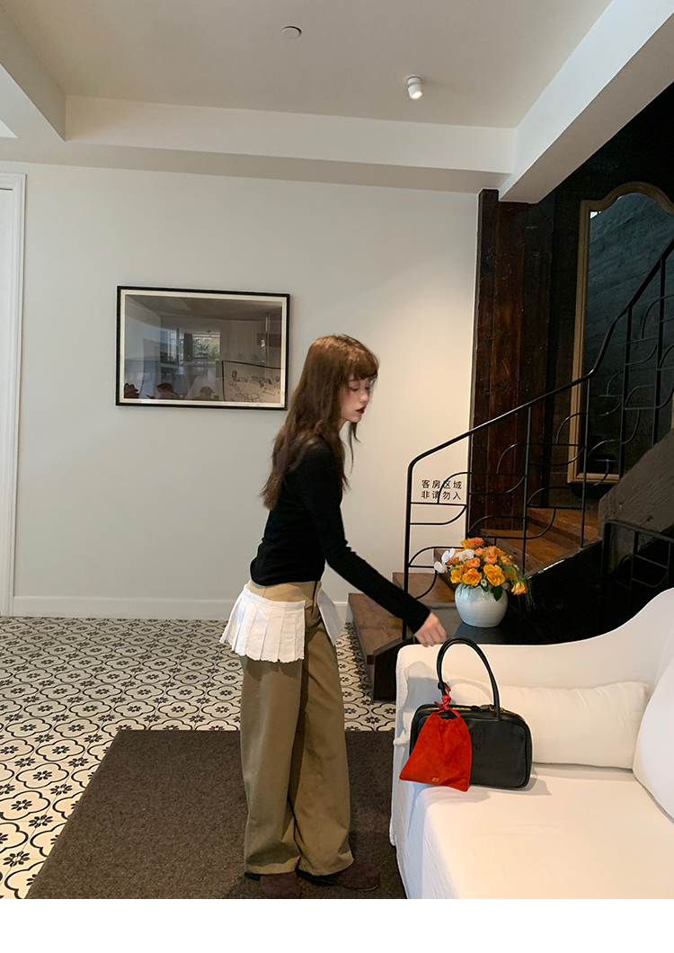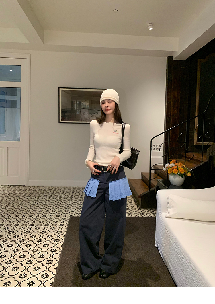 LRIB fake two-piece hollow embroidery lace skirt retro pants