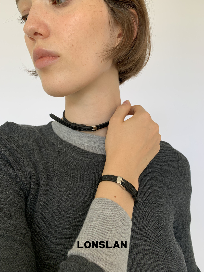LONSLAN Leather Narrow Bracelet + Neckchain Retro Accessories