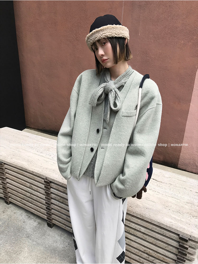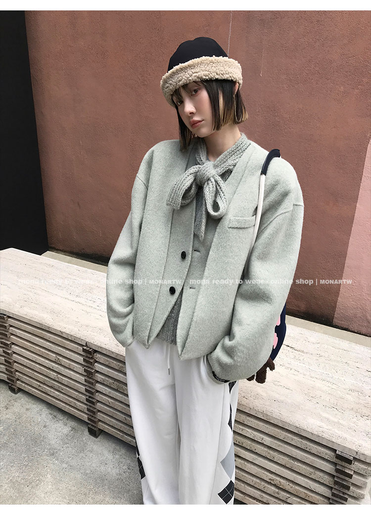 MONARTW wool unique double-faced loose short coat
