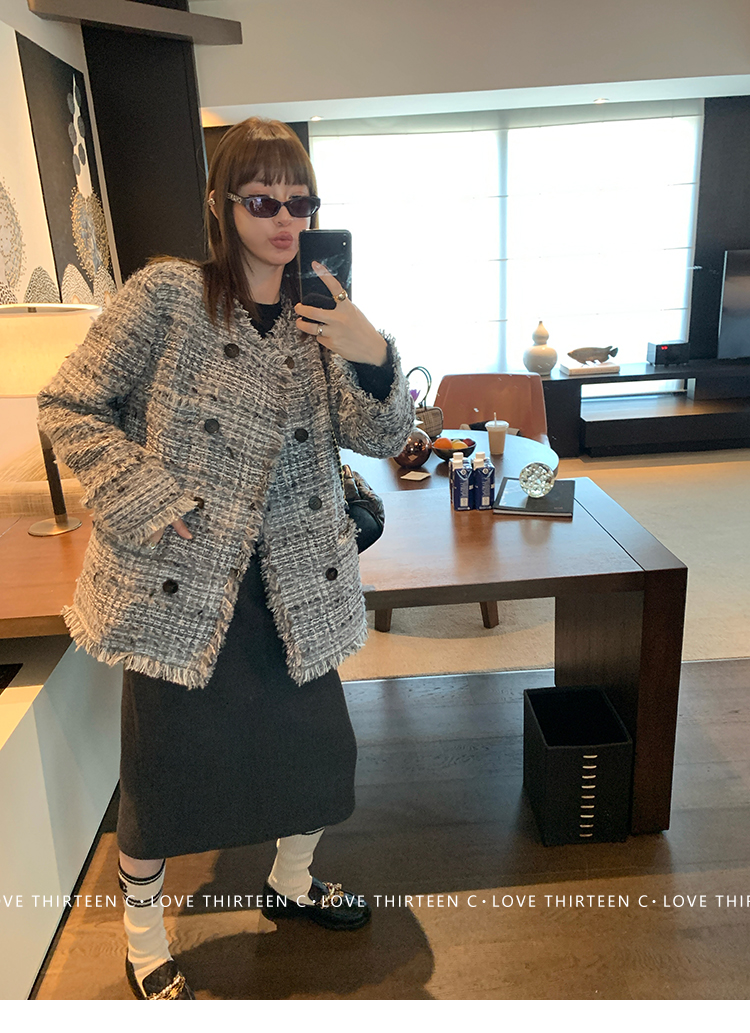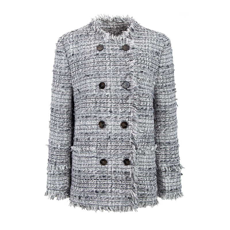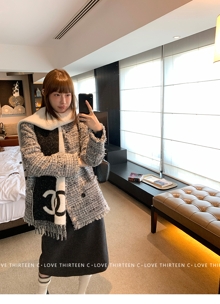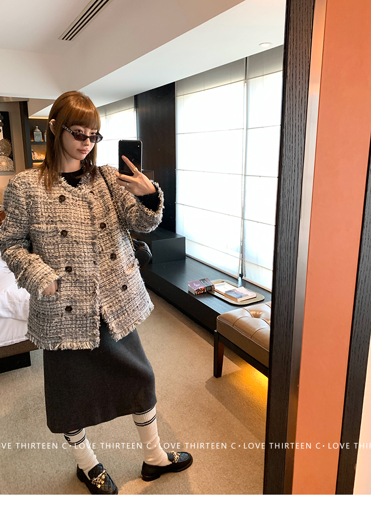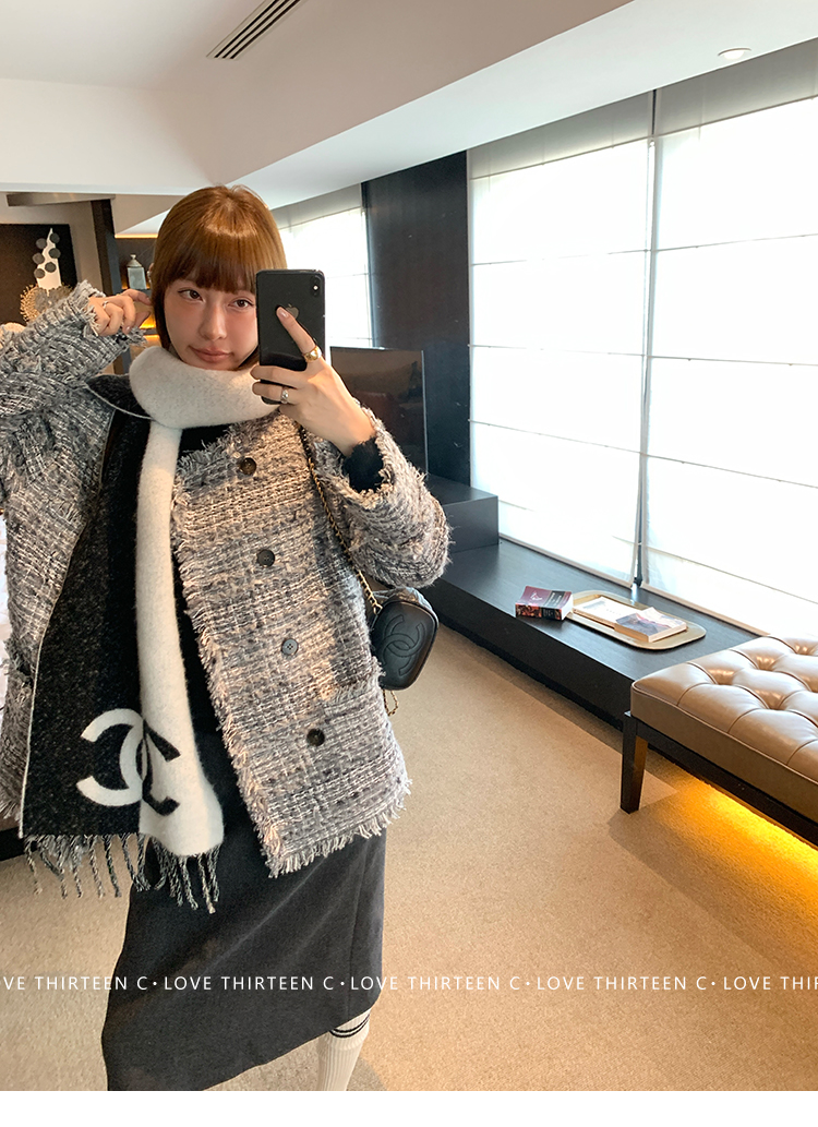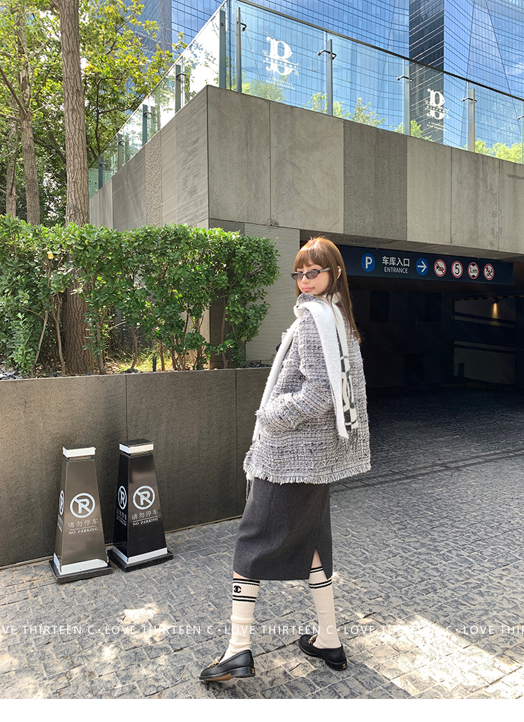 TC gold and silver yarn tweed hand-made fur trim classic jacket