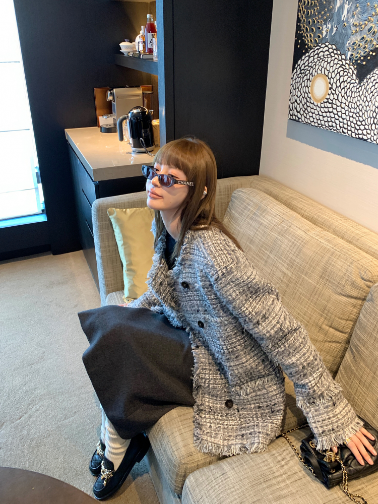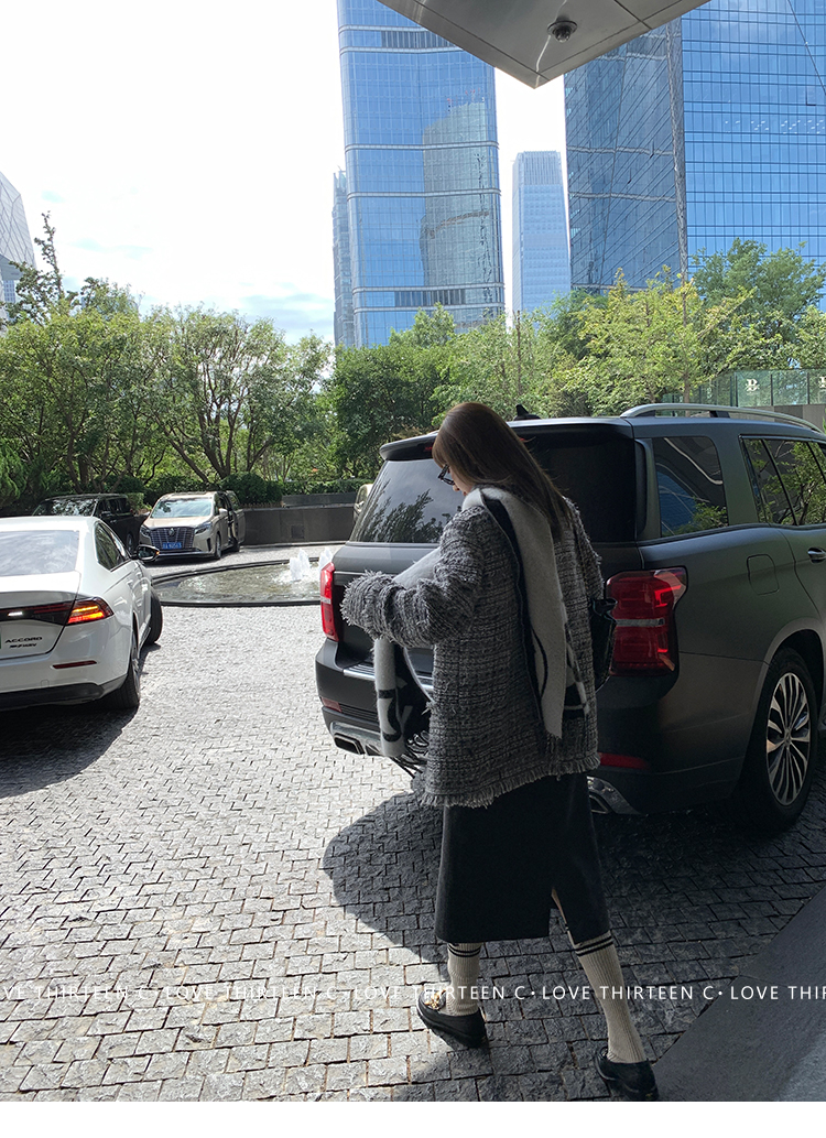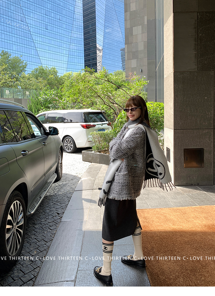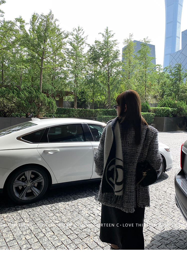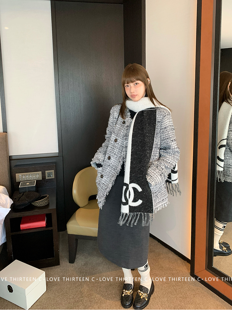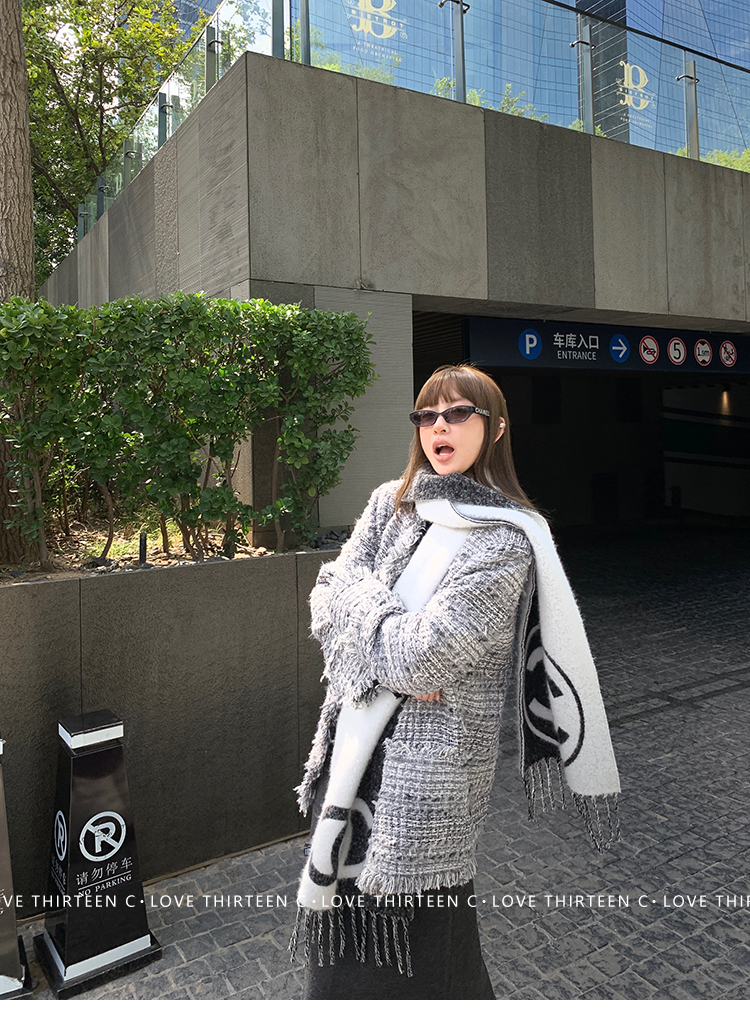 TC gold and silver yarn tweed hand-made fur trim classic jacket