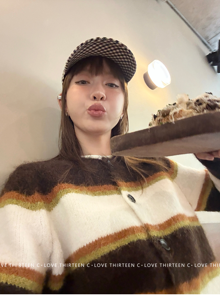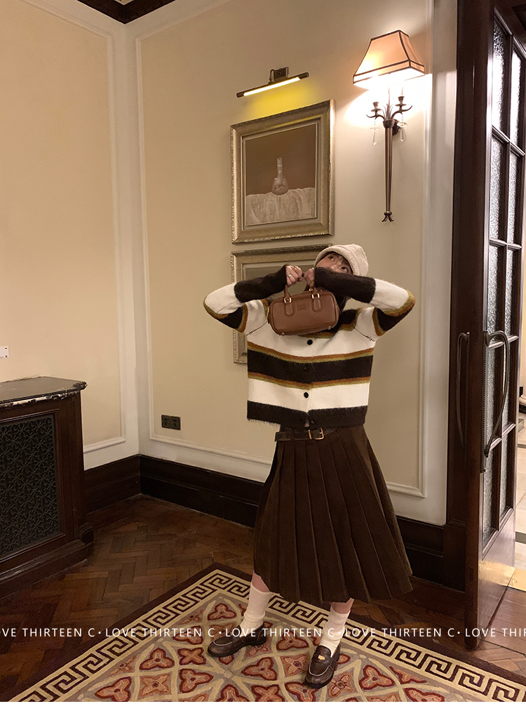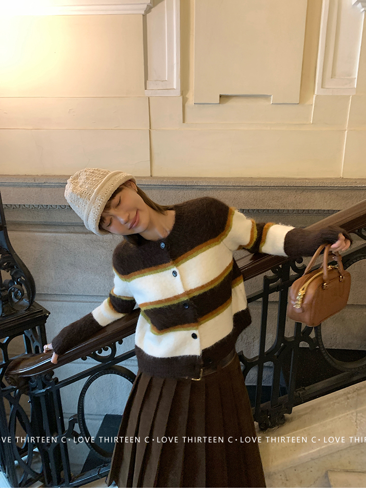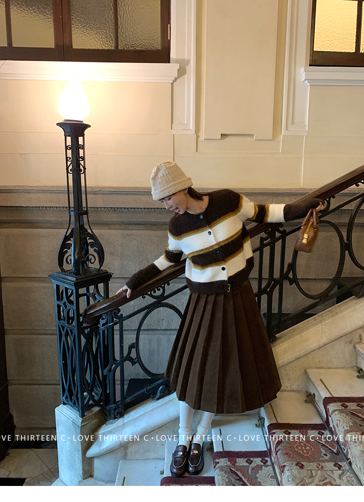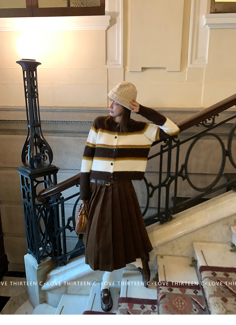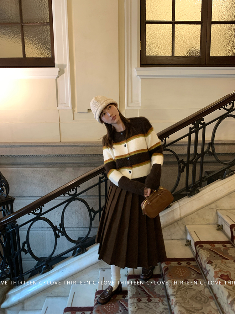 TC Chocolate Wafer Classic Wool Contrast Striped Cardigan