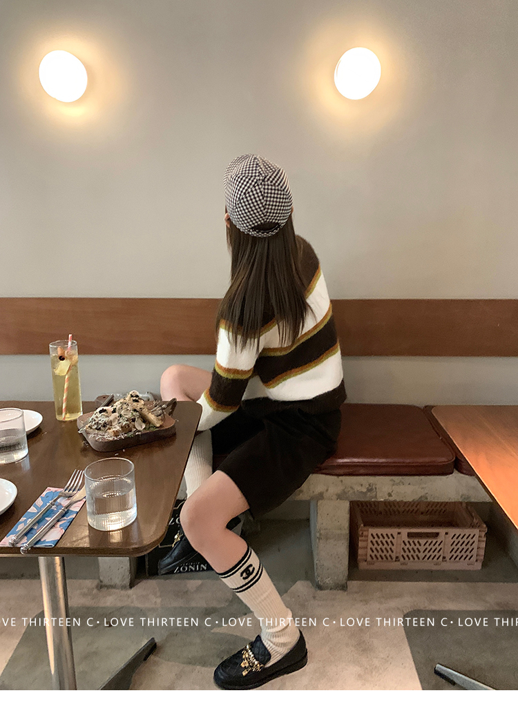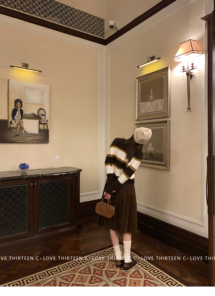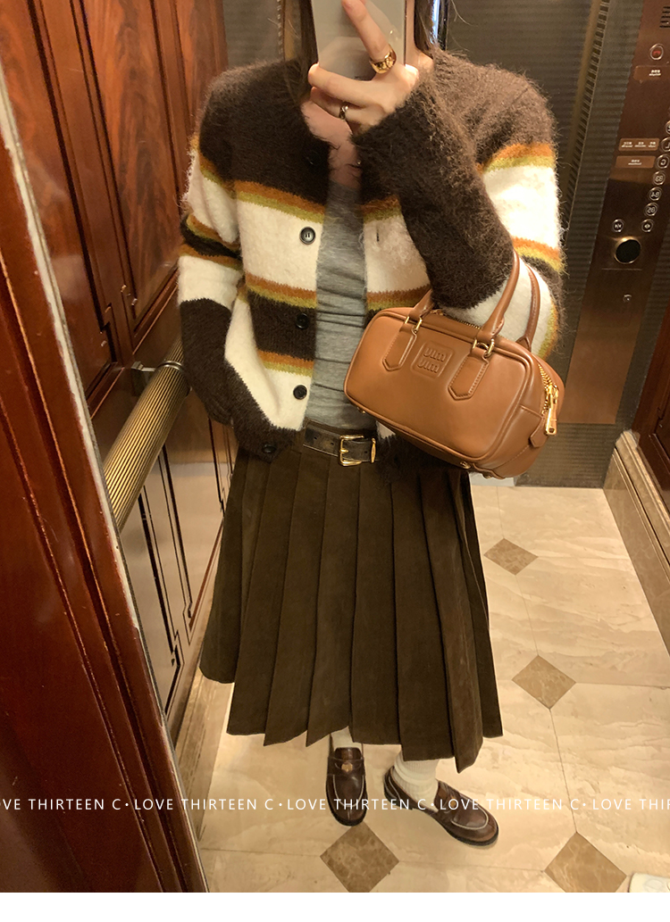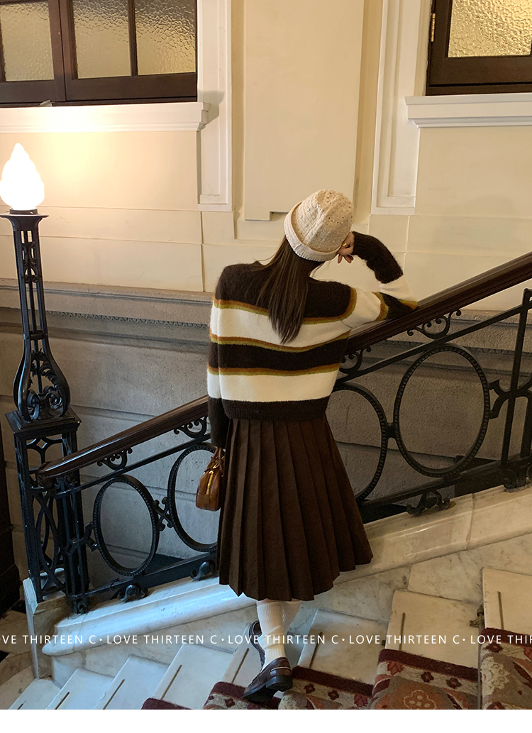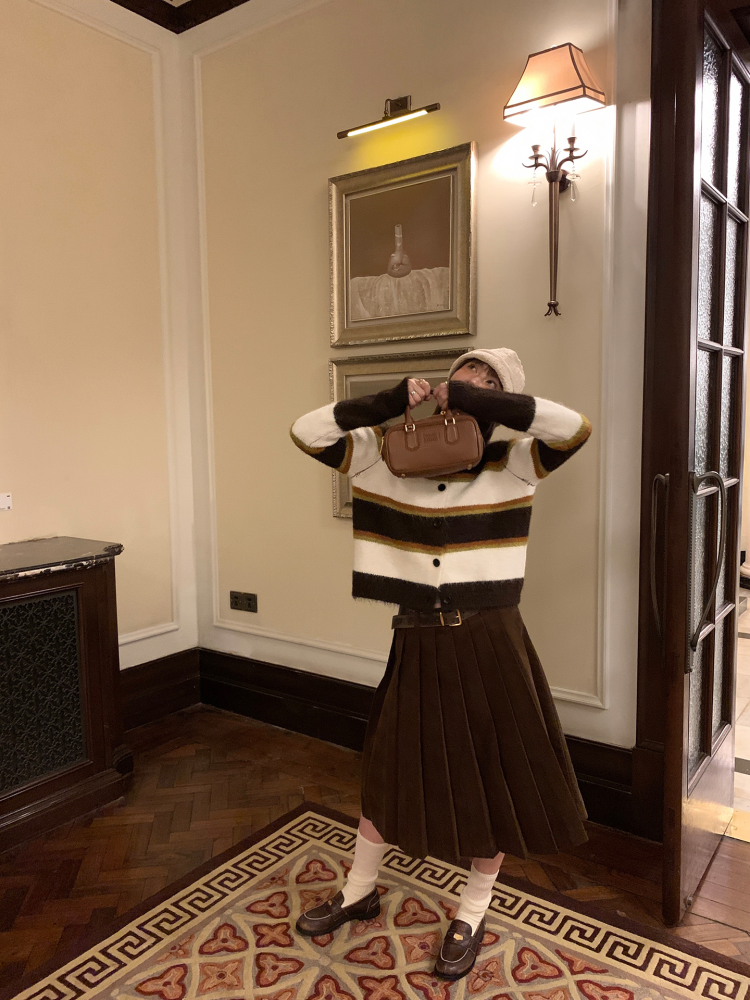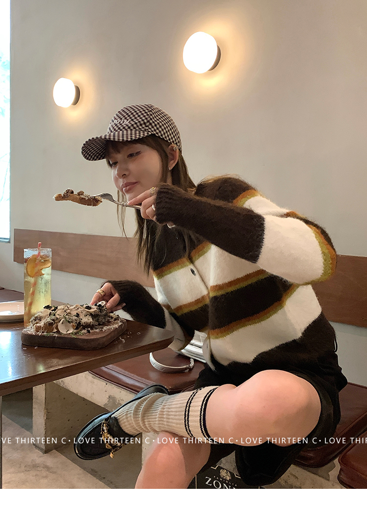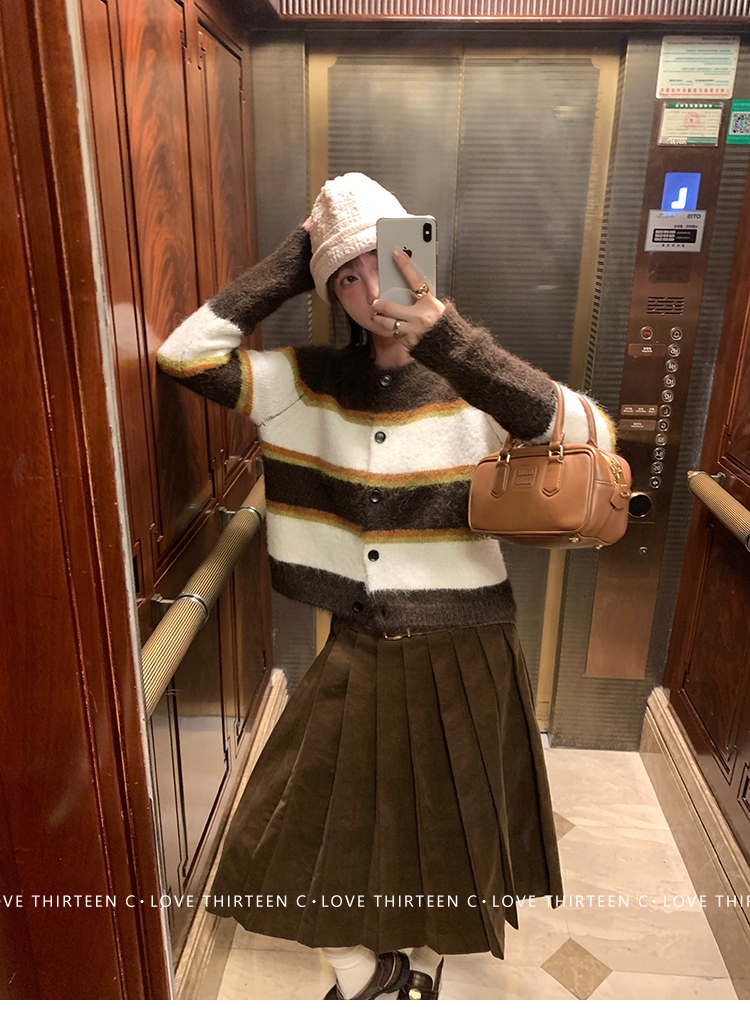 TC Chocolate Wafer Classic Wool Contrast Striped Cardigan