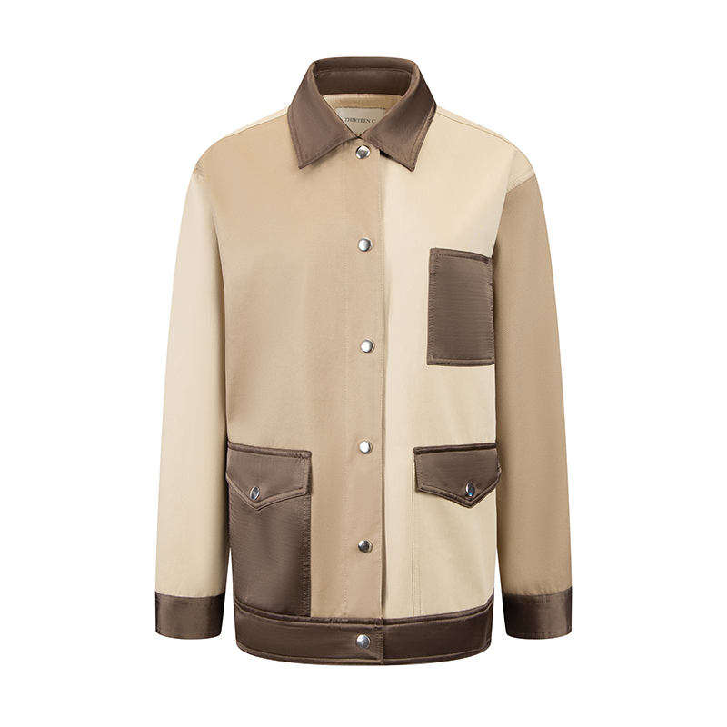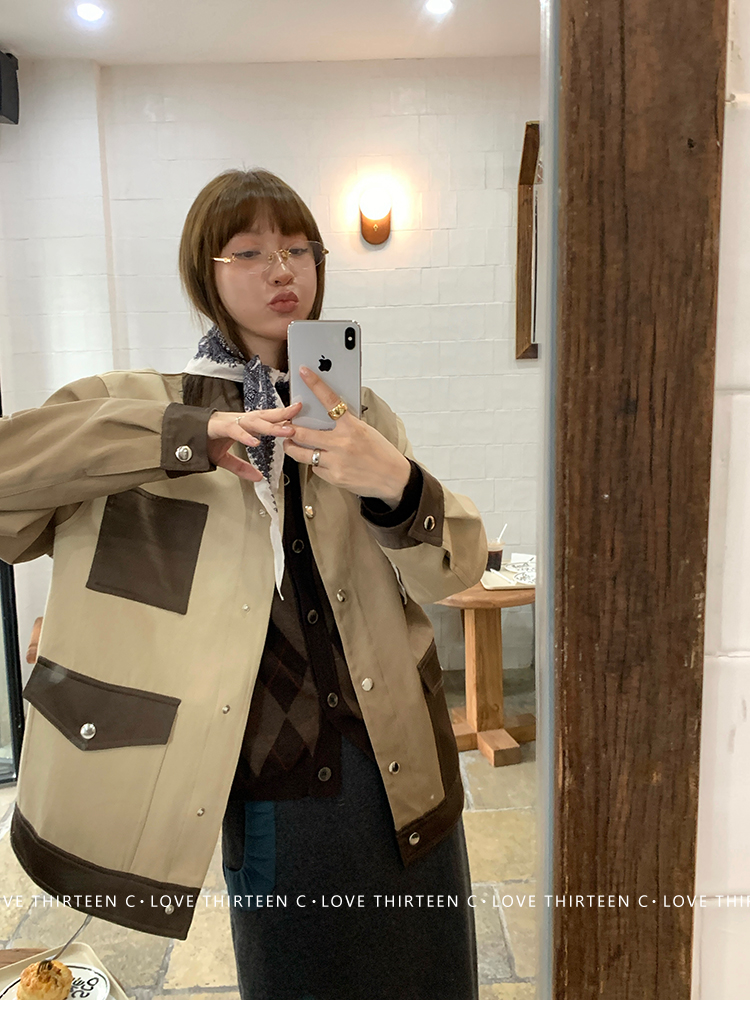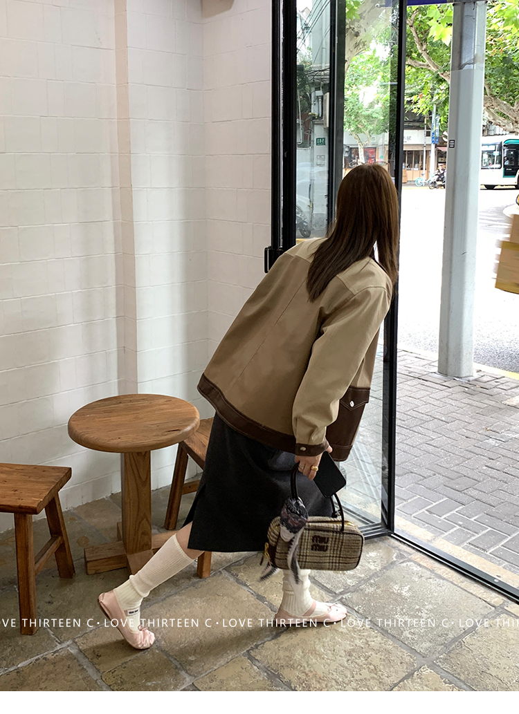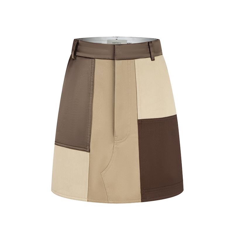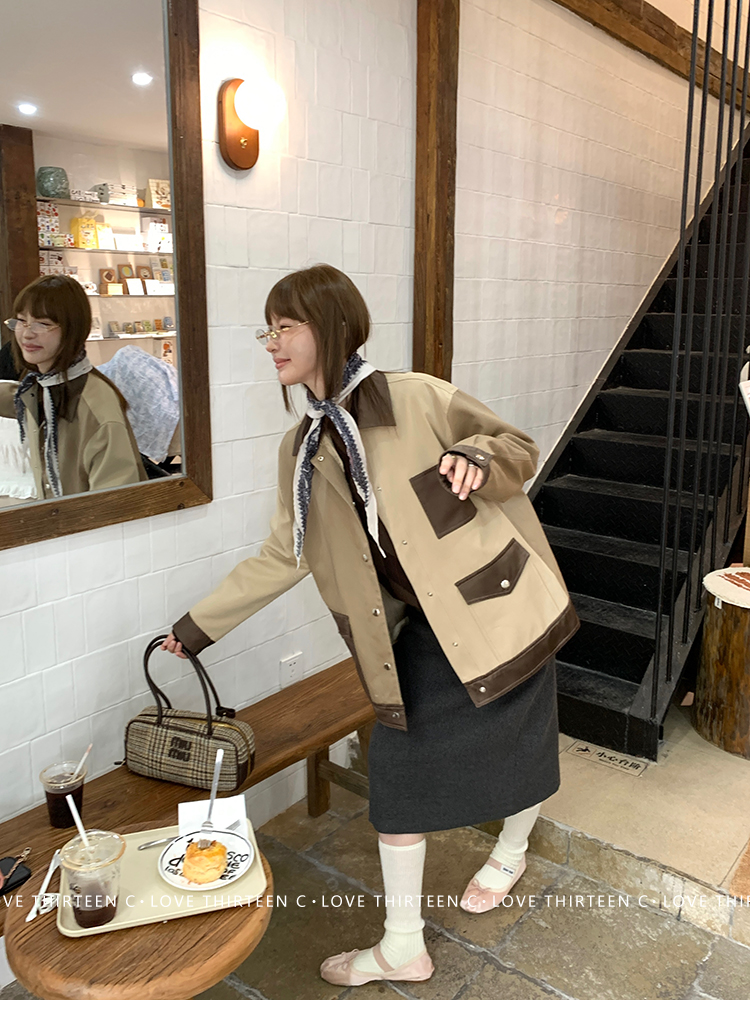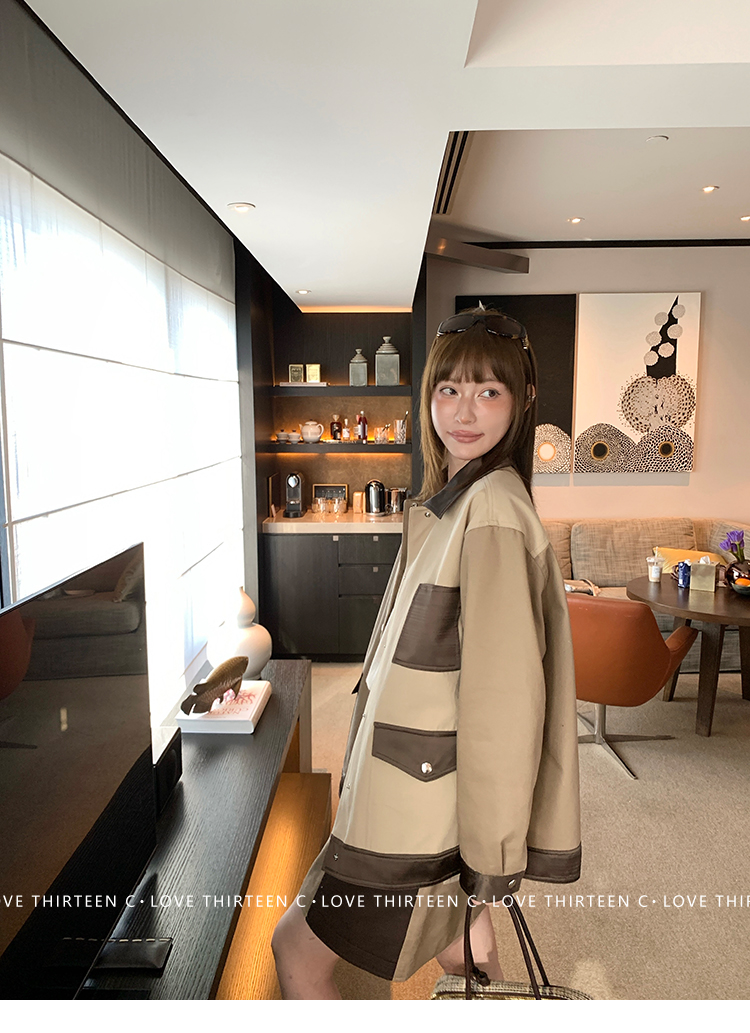 TC Autumn color contrast stitching trench coat + A-line skirt set