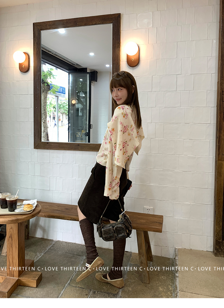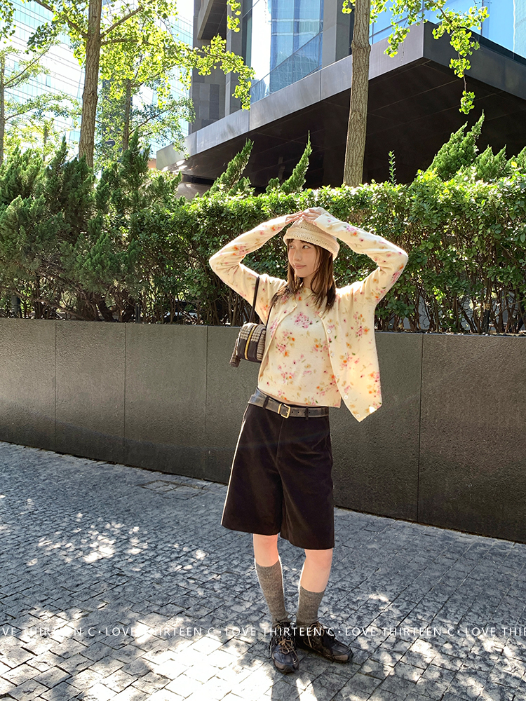 TC oil painting wool floral print round neck pullover sweater cardigan