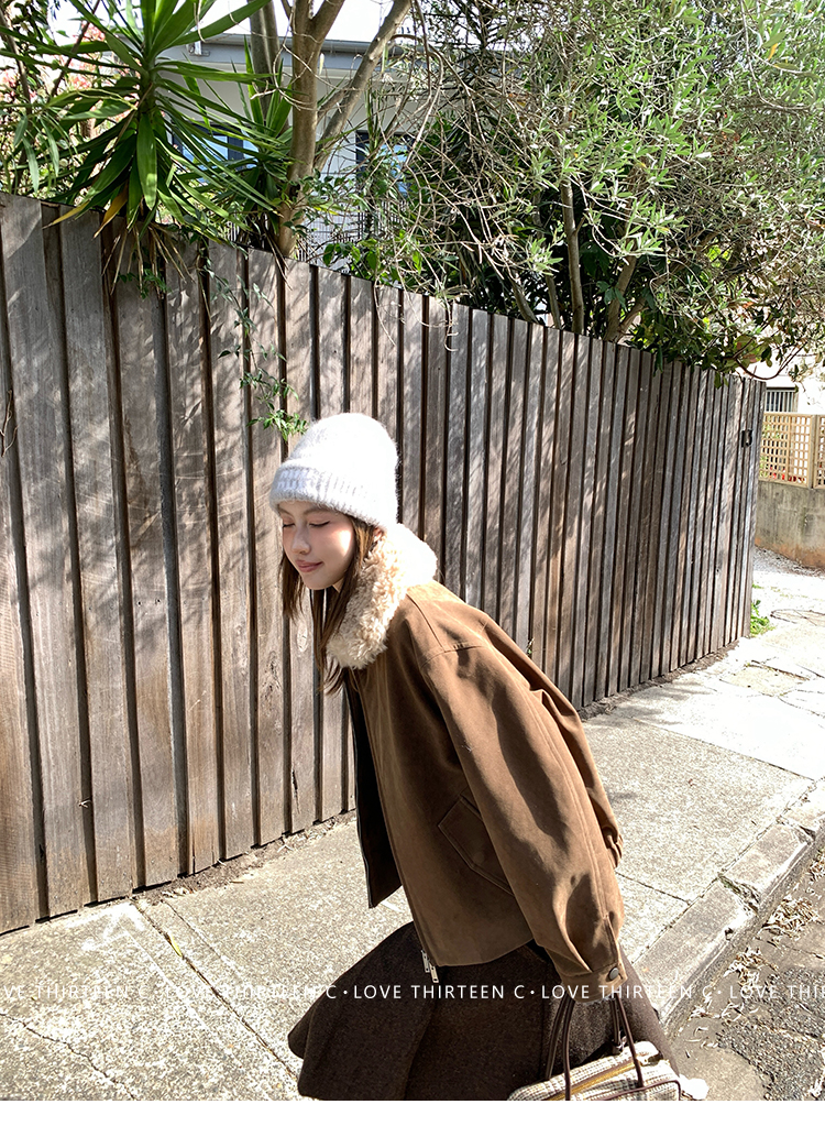 TC Retro eco-friendly suede fur collar detachable jacket
