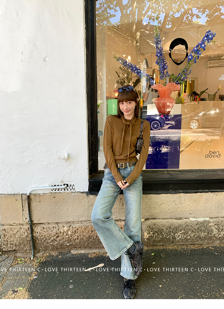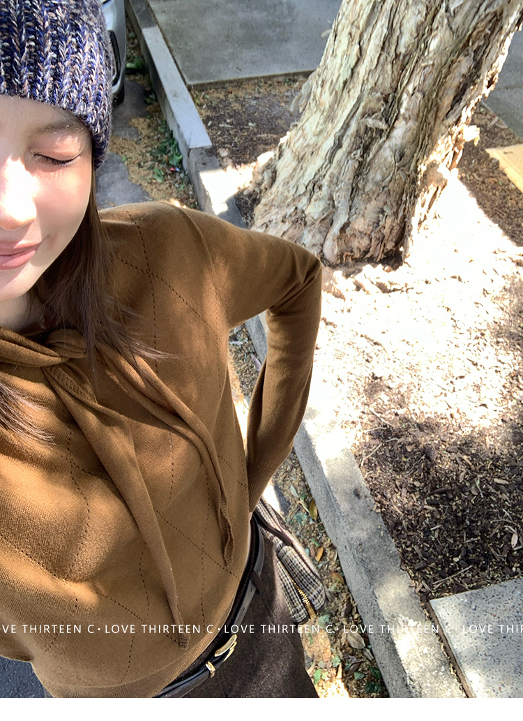 TC retro wool long-sleeved flowing collar diamond pattern sweater