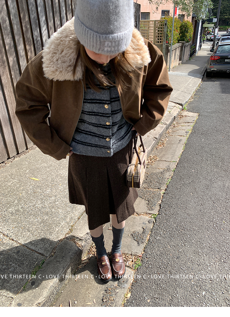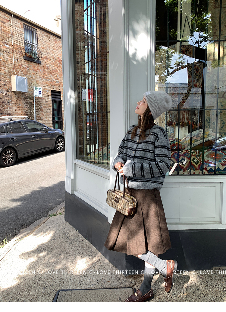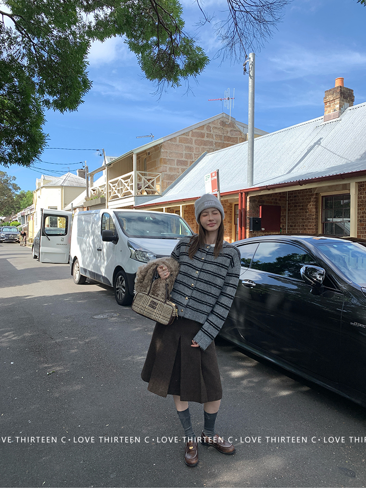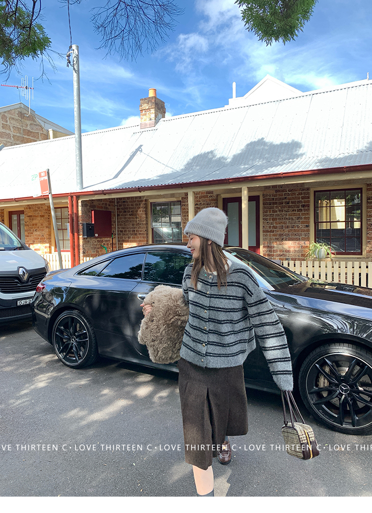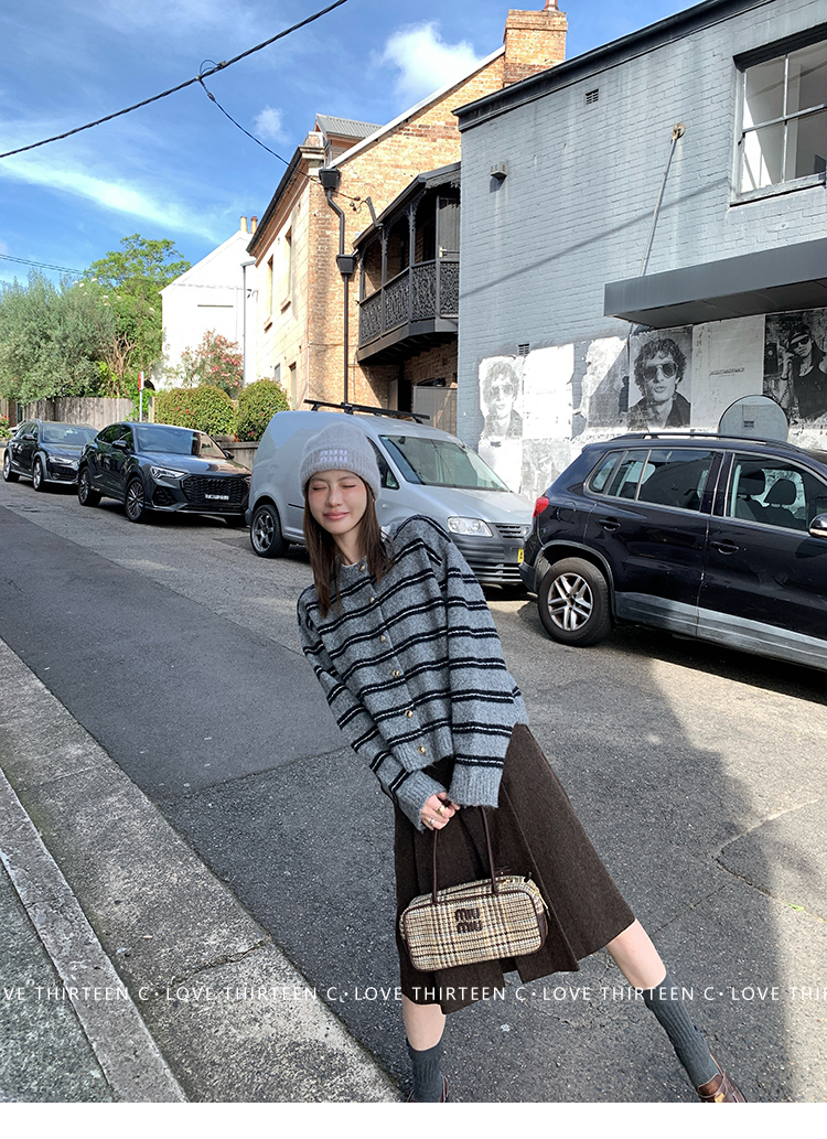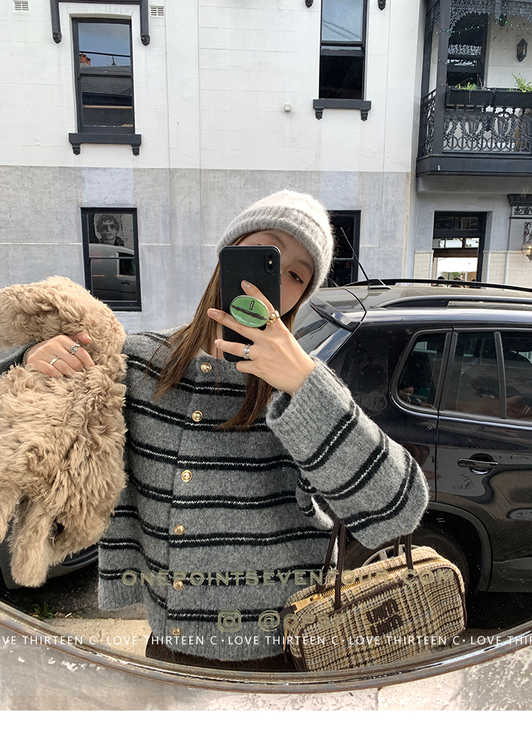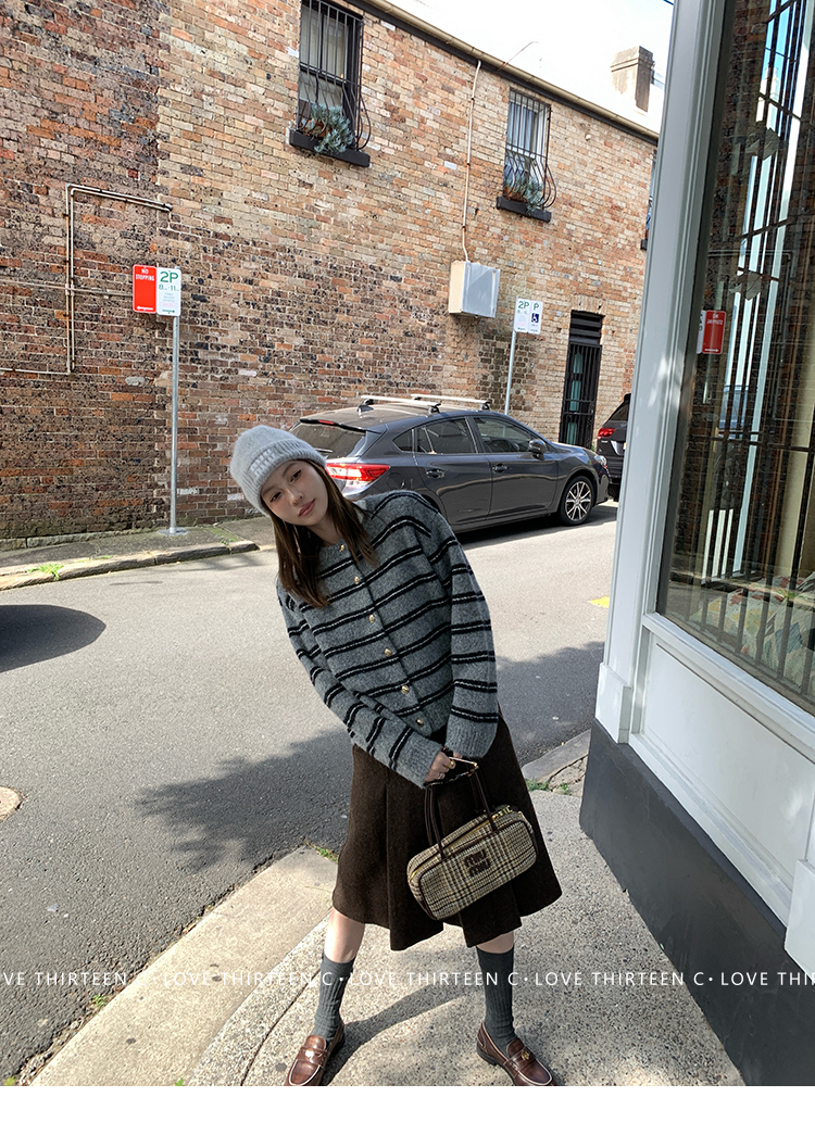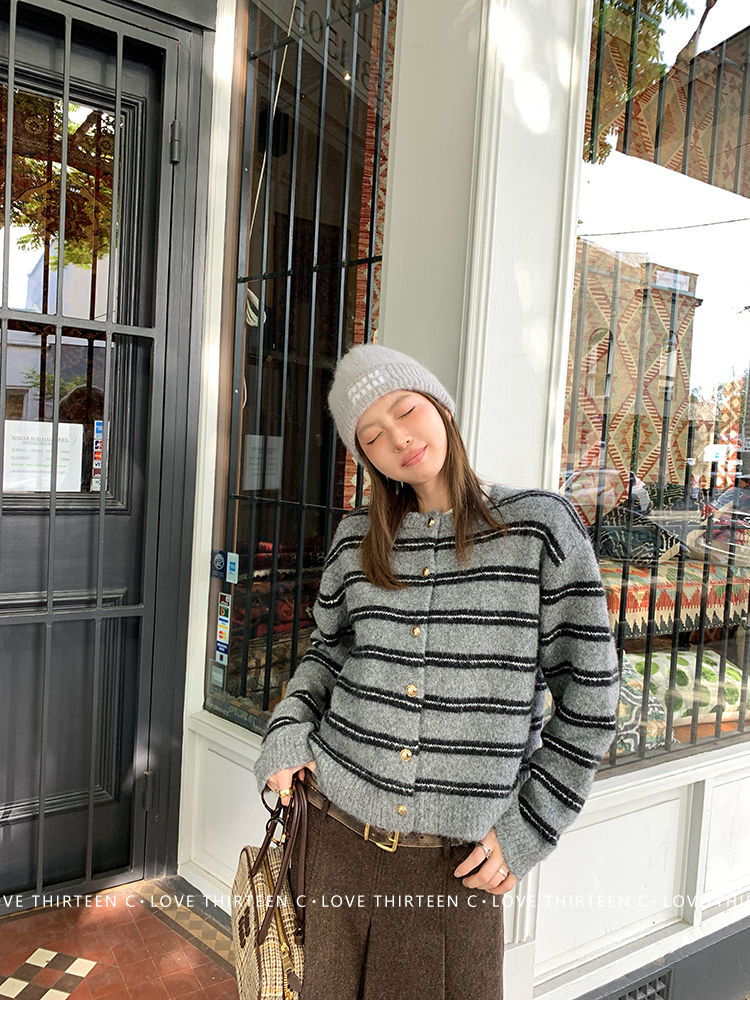 TC High-intelligence college daily round neck sweater cardigan