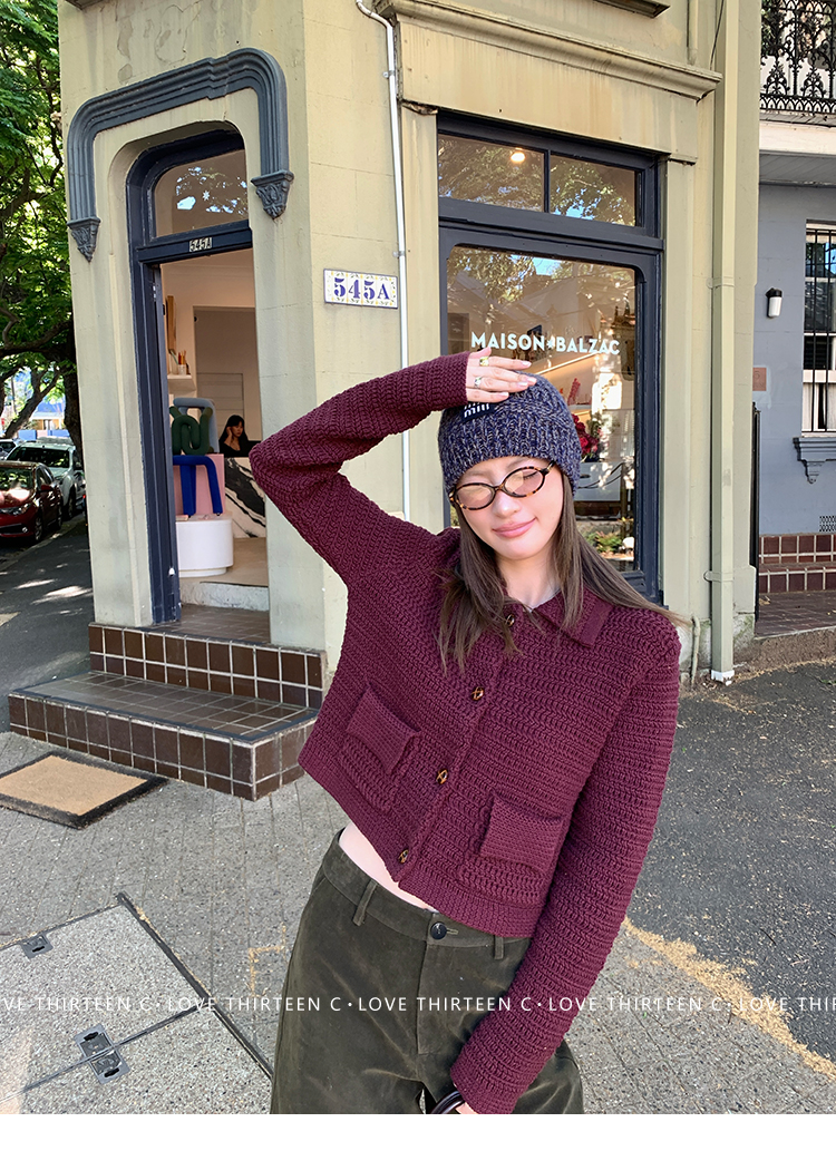 TC Autumn color pumpkin plum purple hollow knitted cardigan