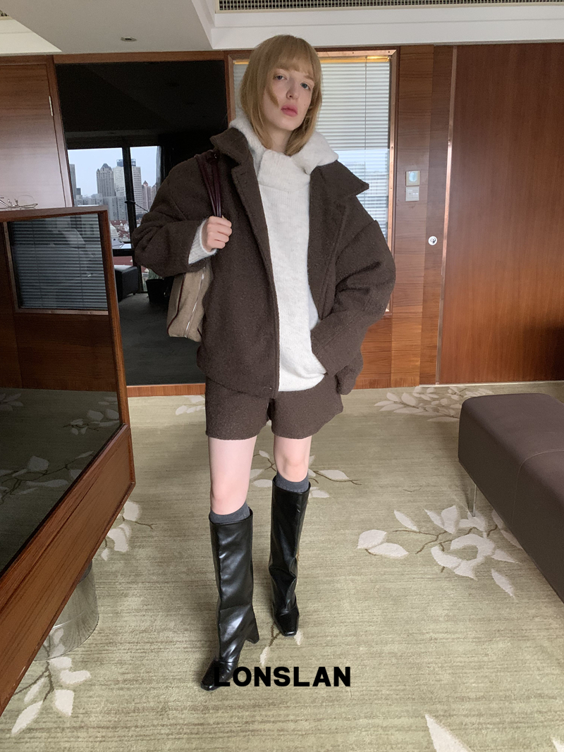 LONSLAN bouclé woolen jacket + shorts set