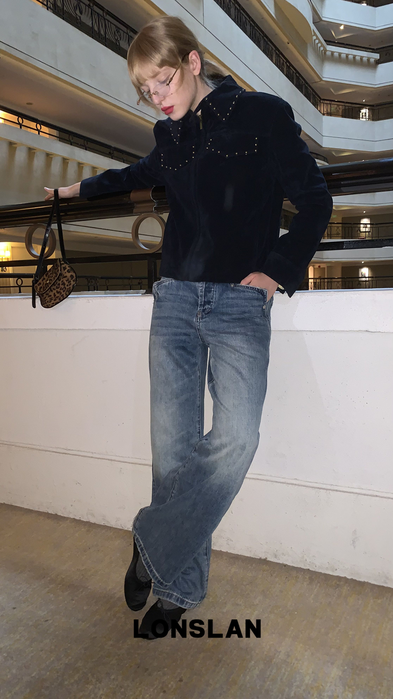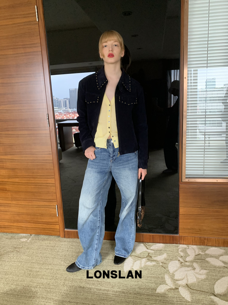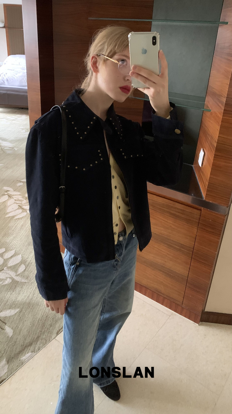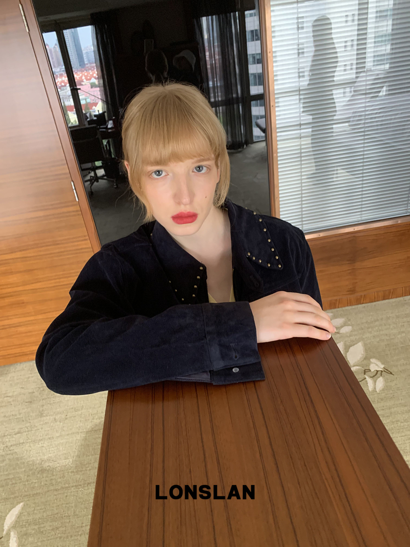LONSLAN rivet design short suede motorcycle jacket