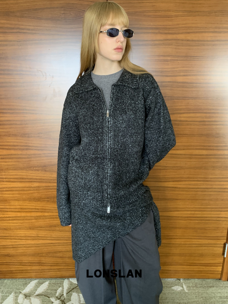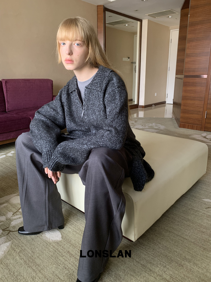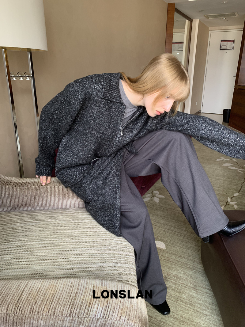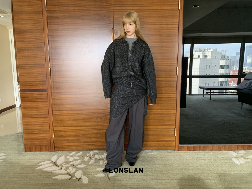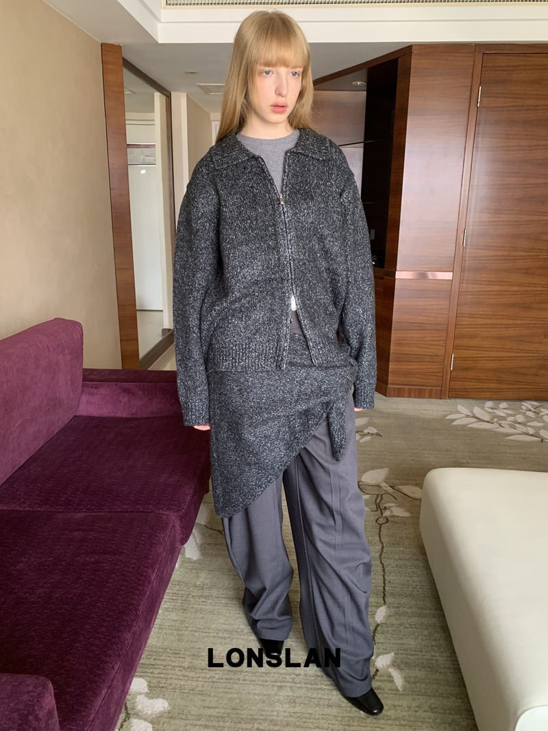 LONSLAN lapel zipper motley sweater cardigan + shawl two-piece set