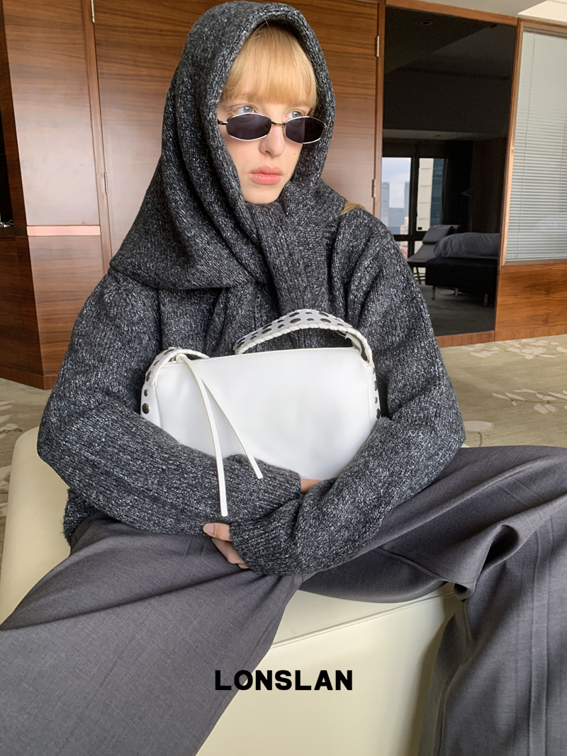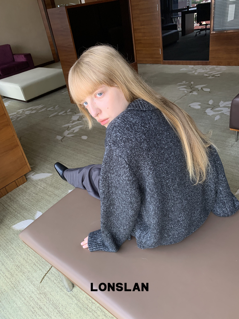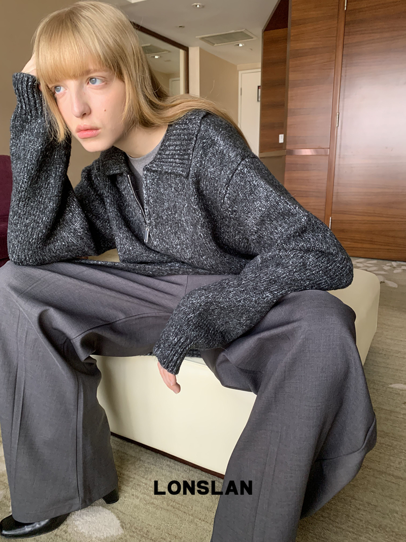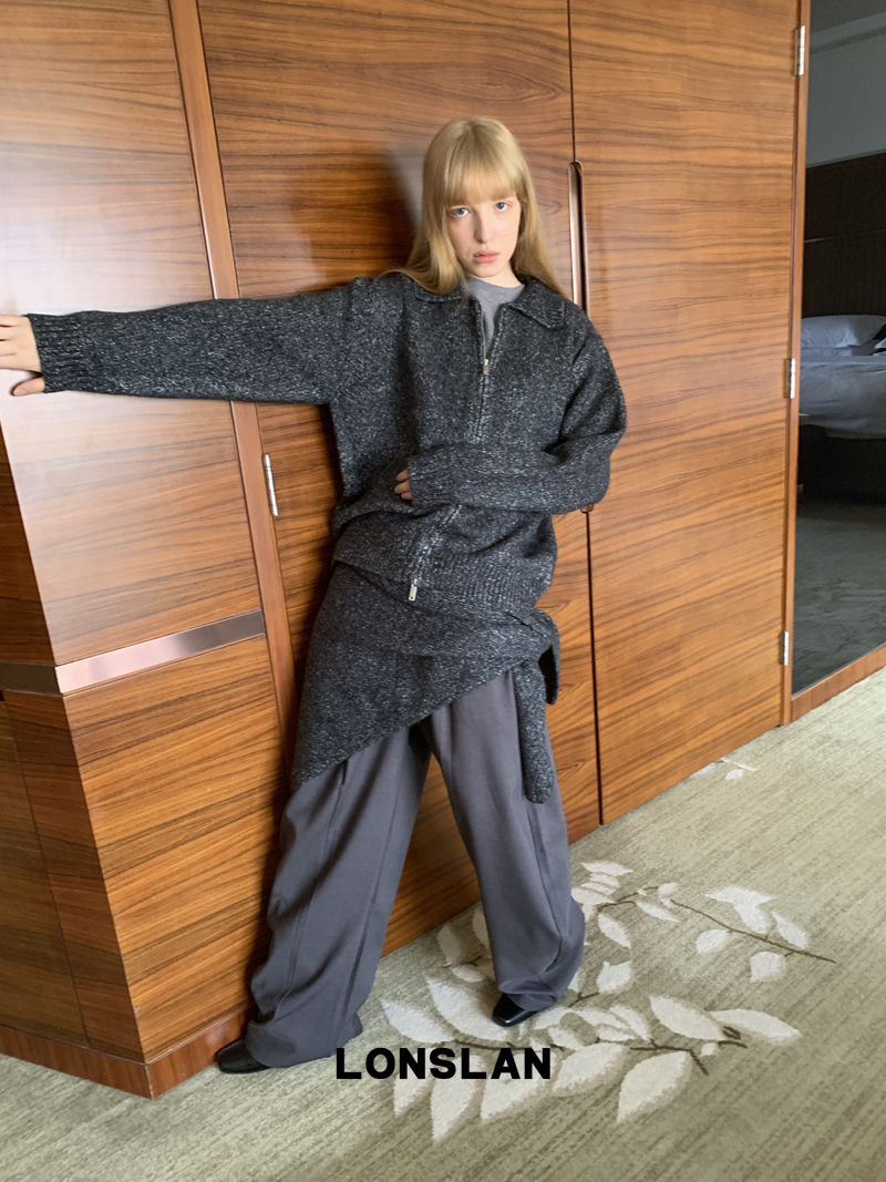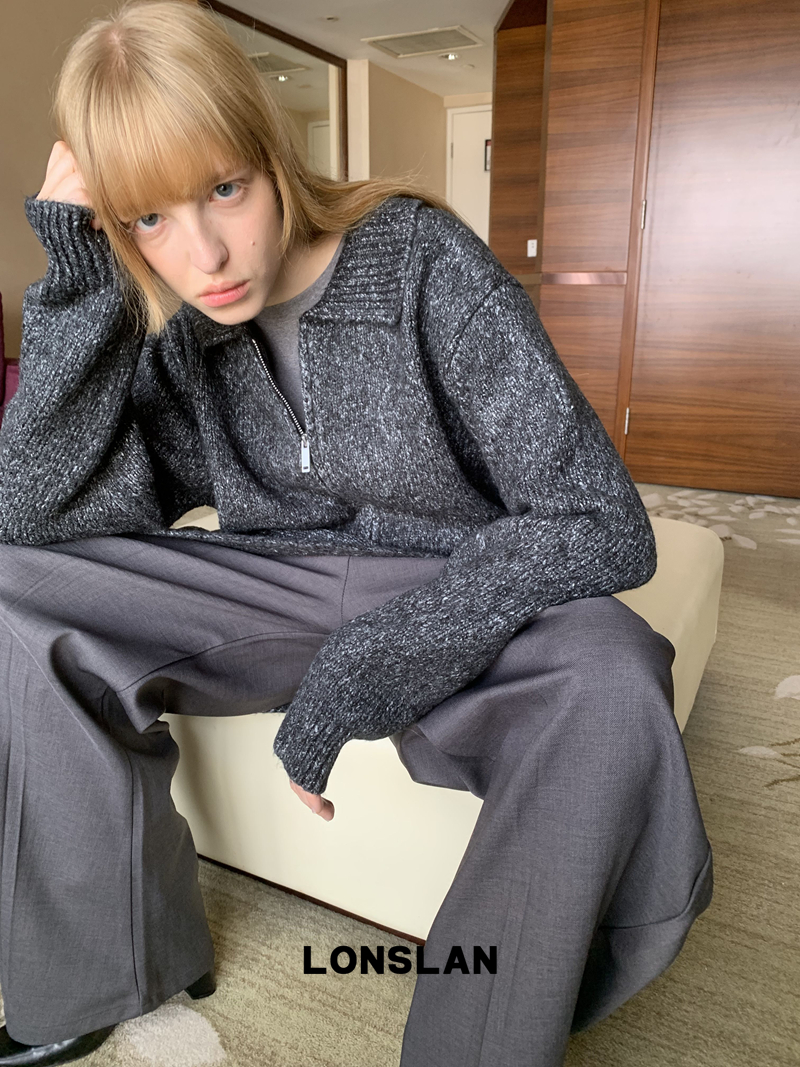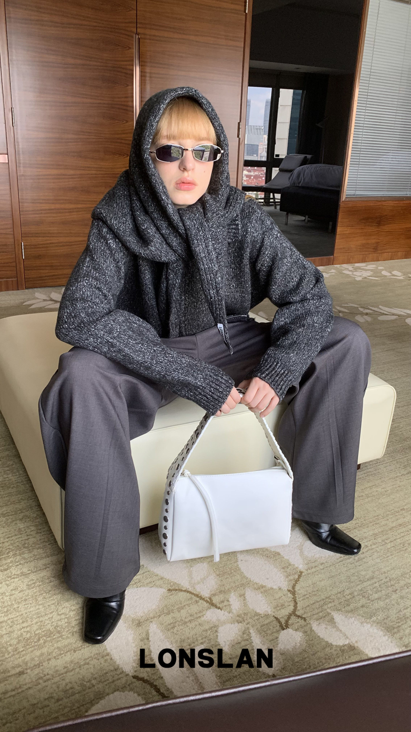 LONSLAN lapel zipper motley sweater cardigan + shawl two-piece set