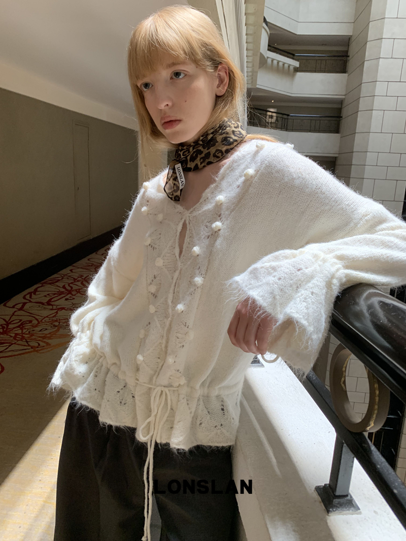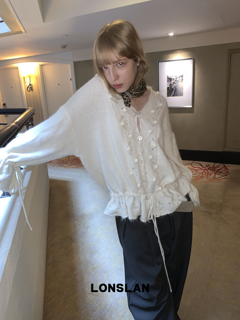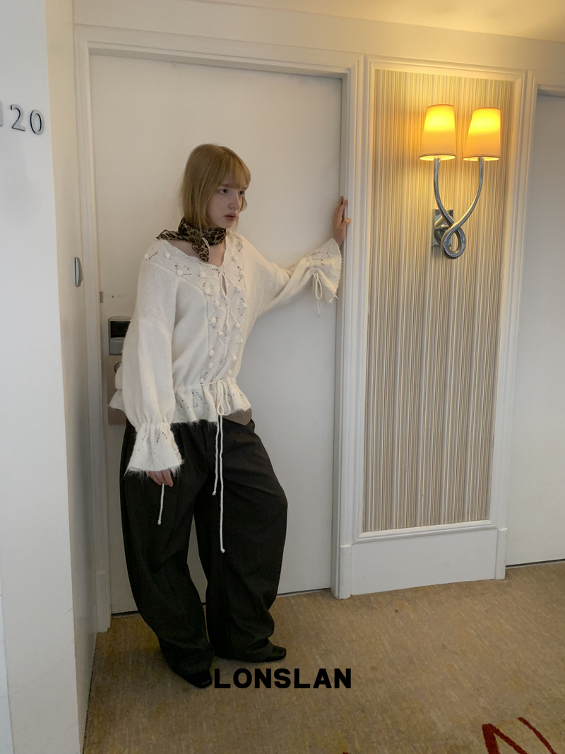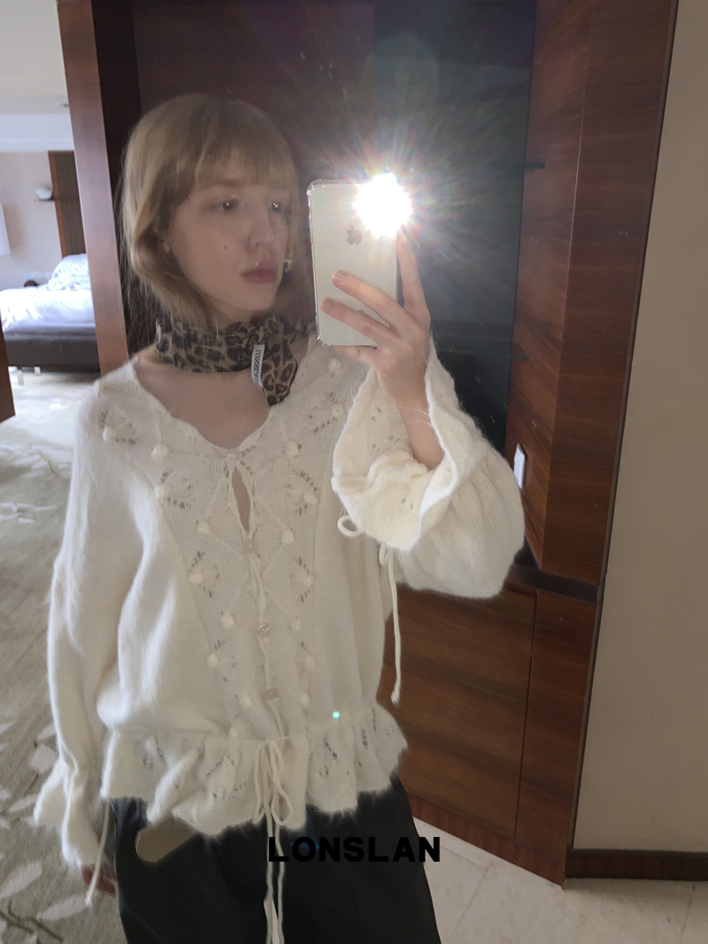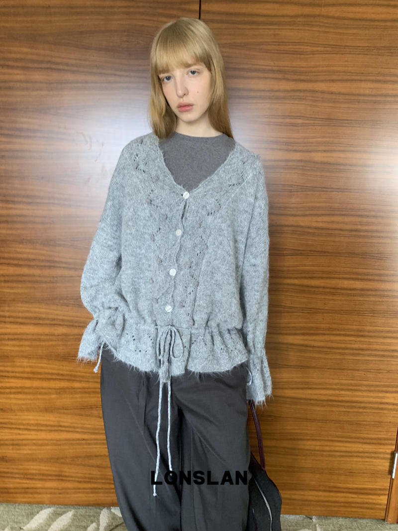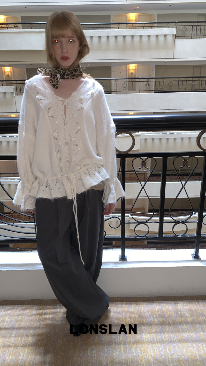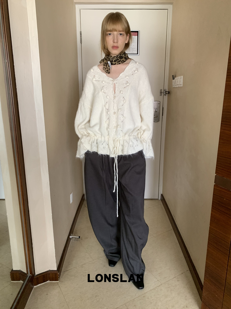 LONSLAN handmade flower waist drawstring sweater cardigan