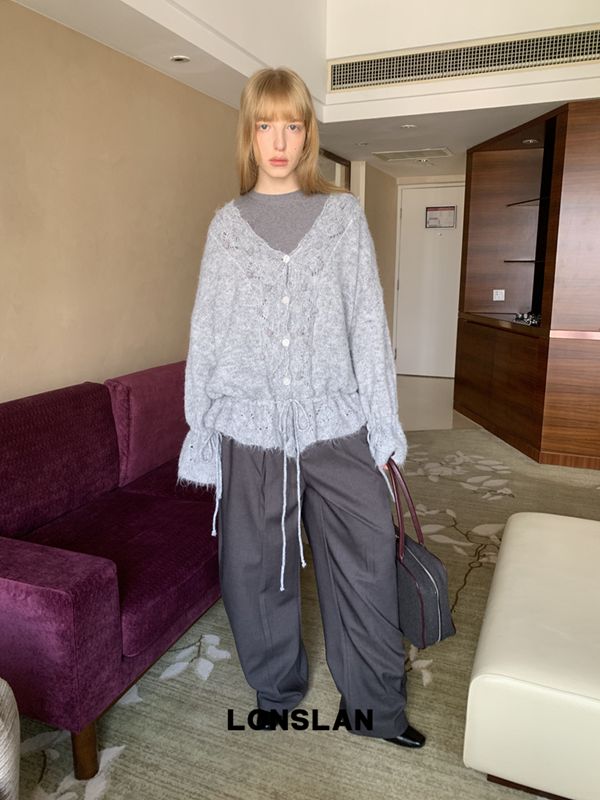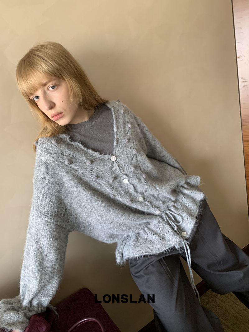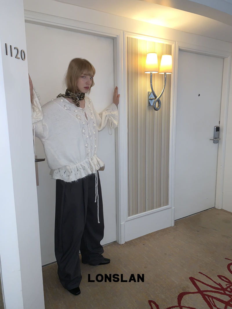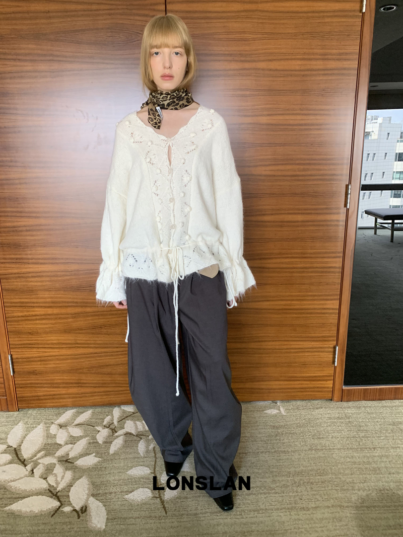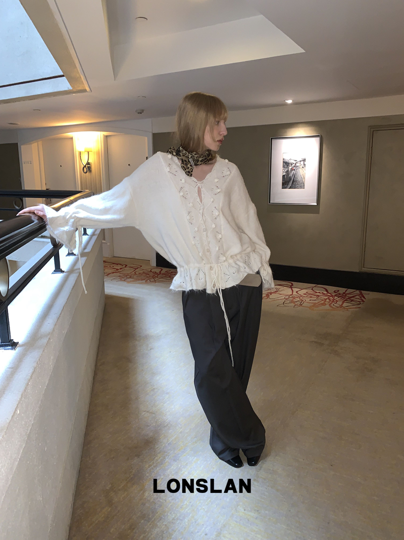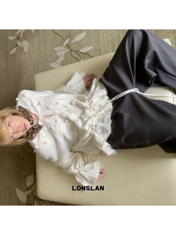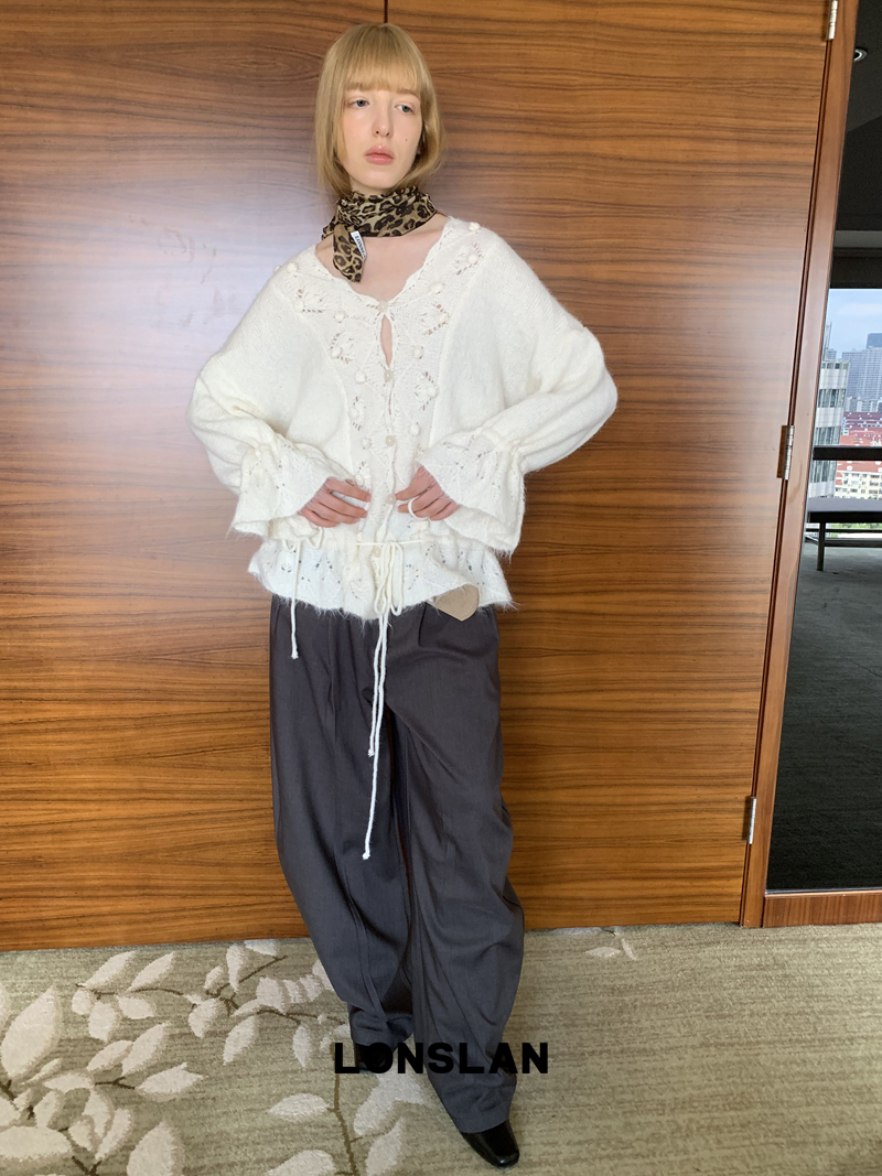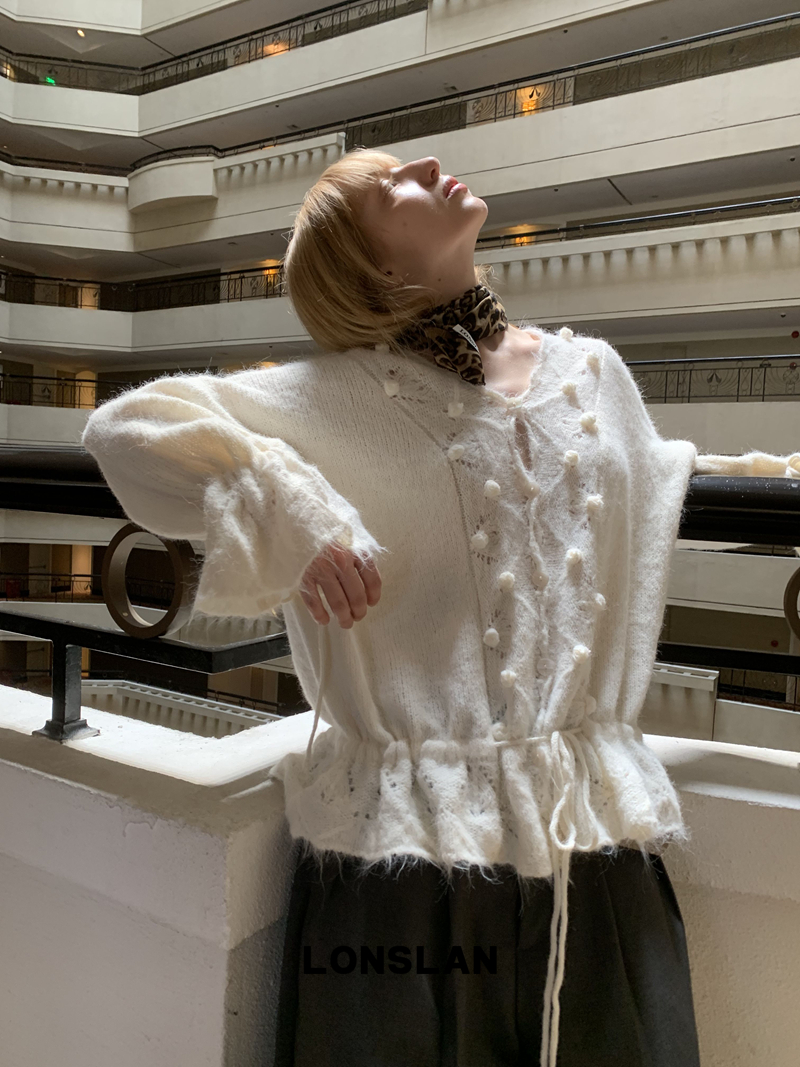 LONSLAN handmade flower waist drawstring sweater cardigan