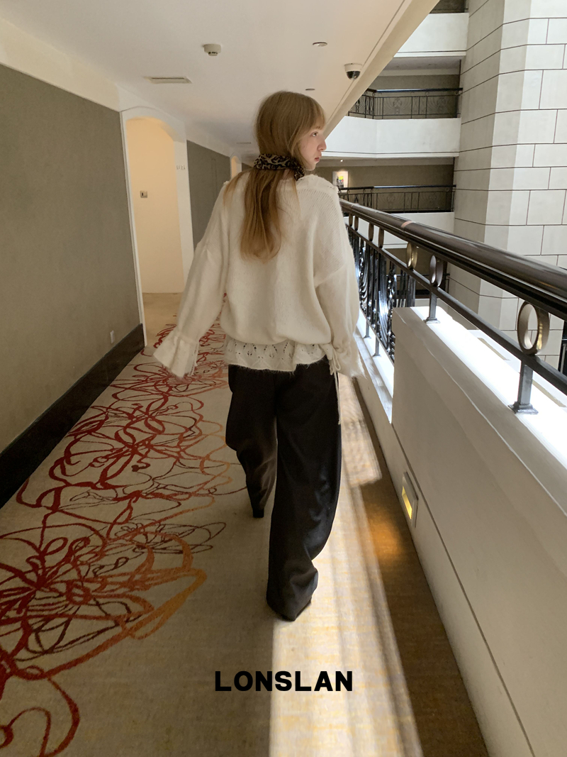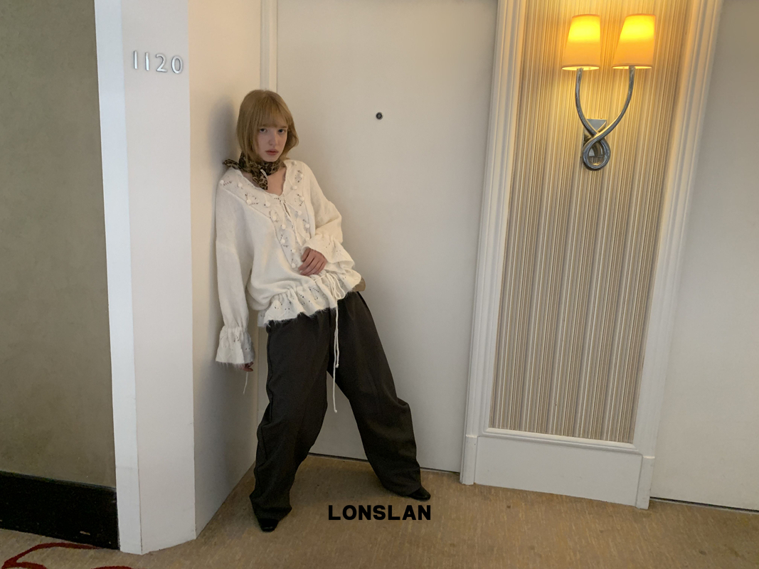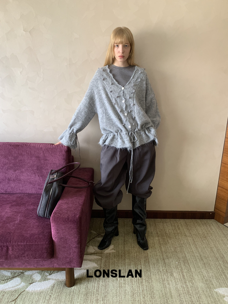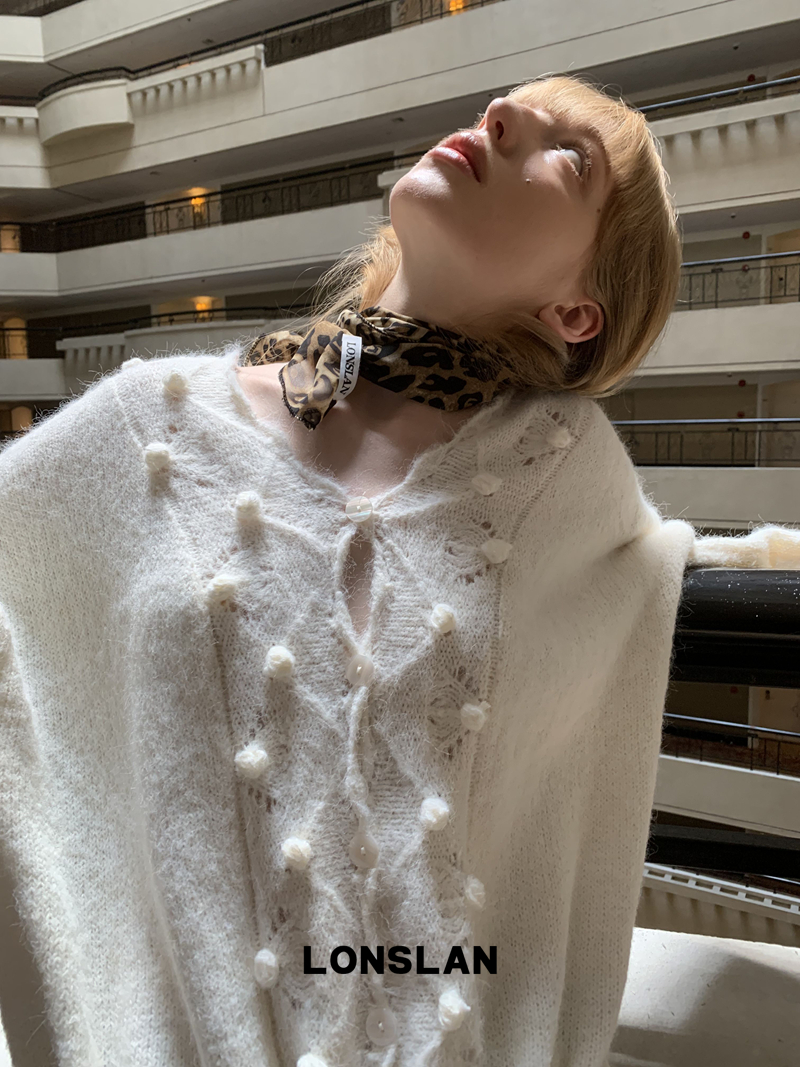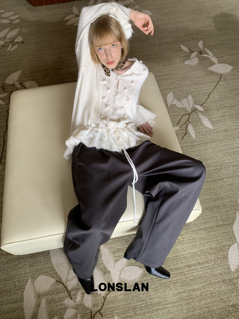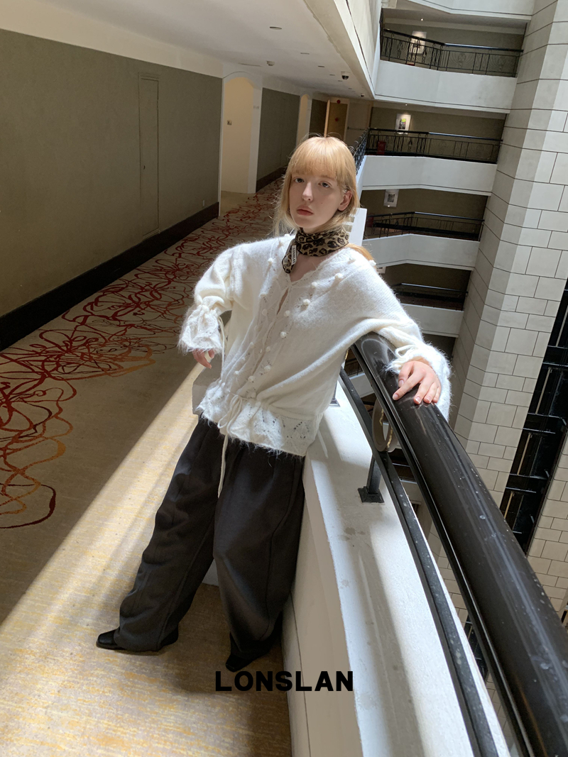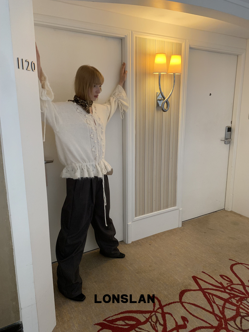 LONSLAN handmade flower waist drawstring sweater cardigan