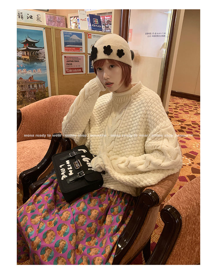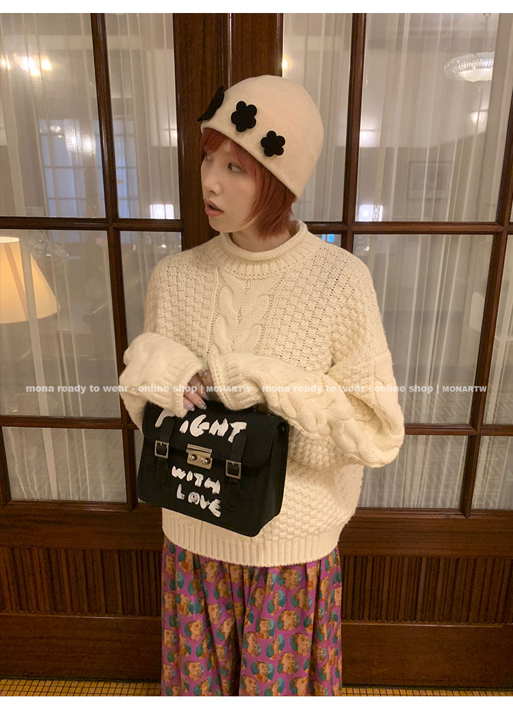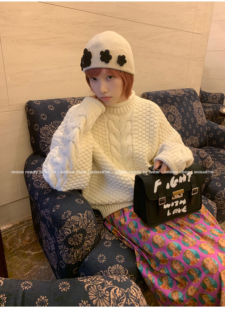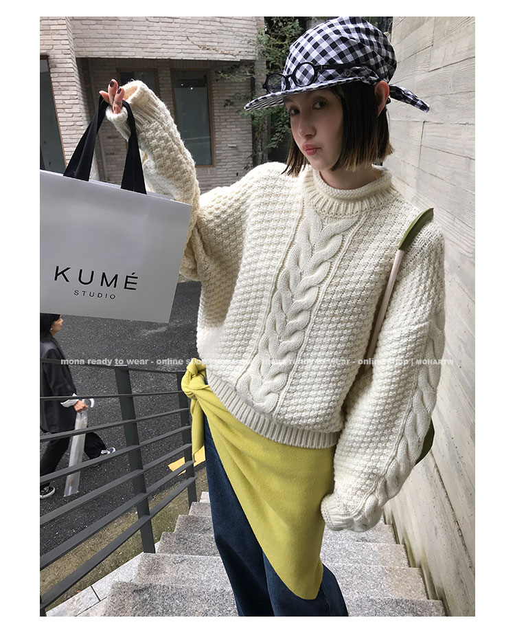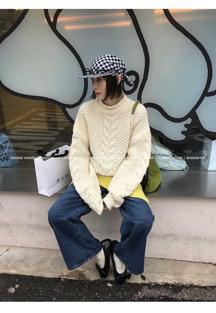 MONARTW Wool Vintage Oversize Loose Twisted Knit Sweater