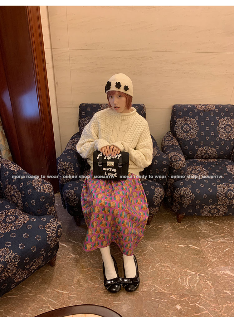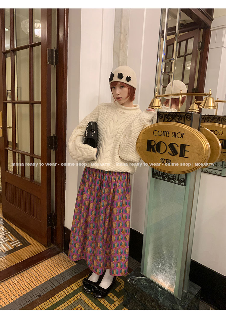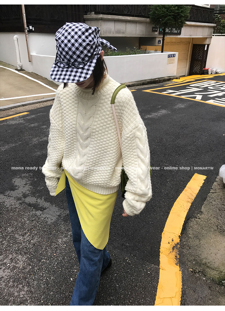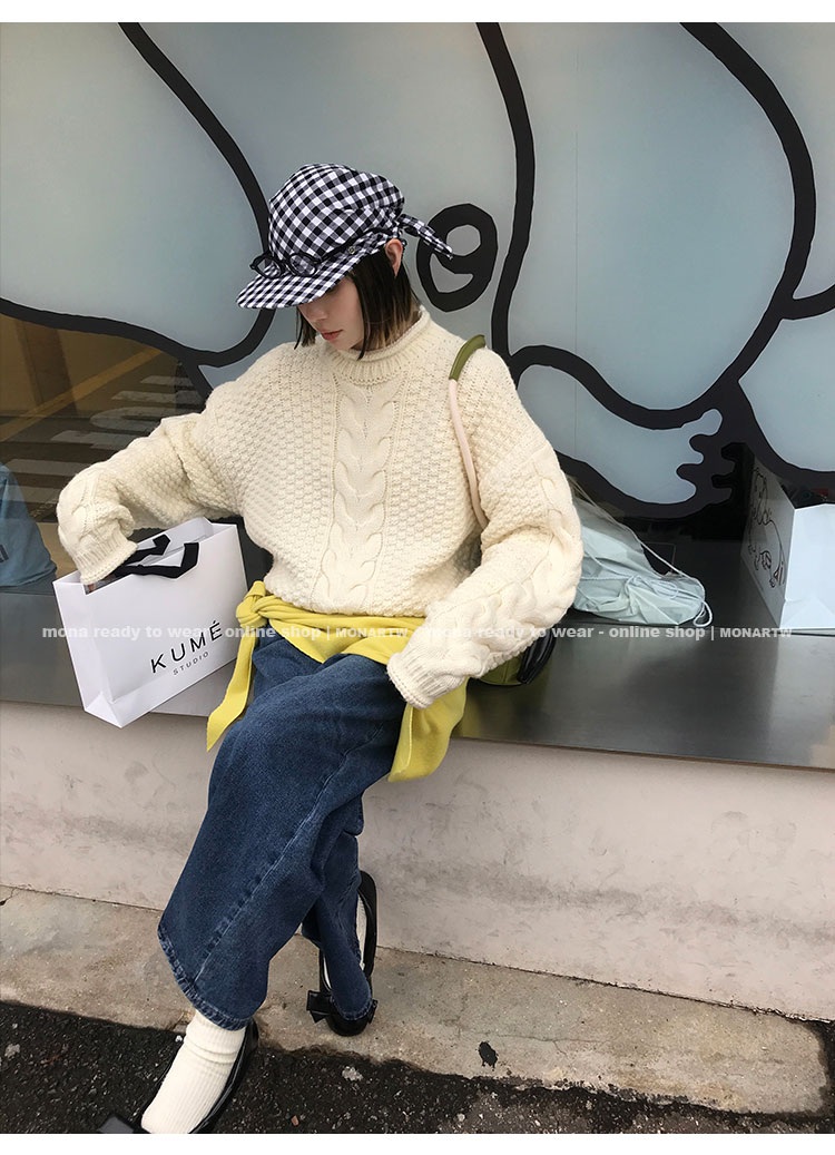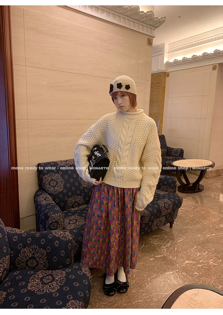 MONARTW Wool Vintage Oversize Loose Twisted Knit Sweater