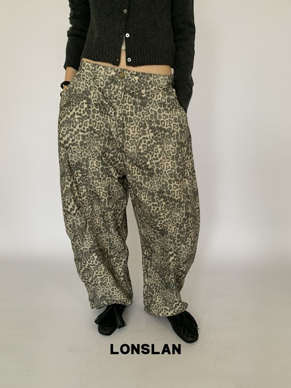 LONSLAN retro leopard print cocoon wide-leg pants