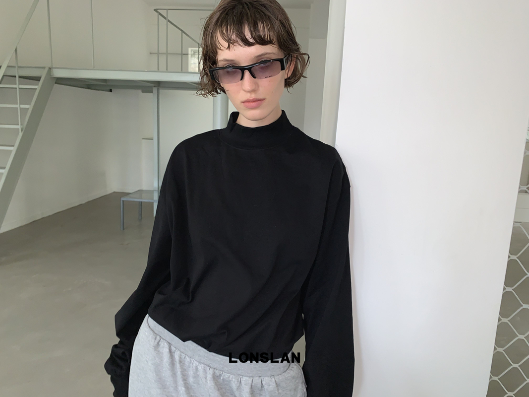 LONSLAN solid color basic version high collar long sleeve sweatshirt