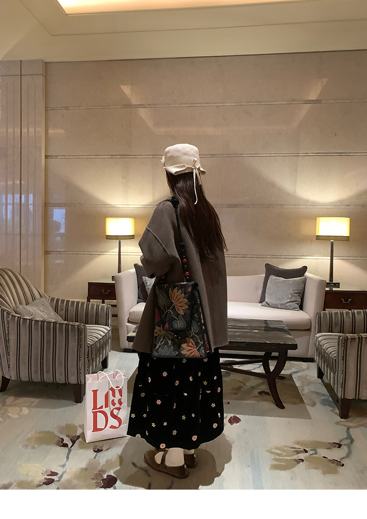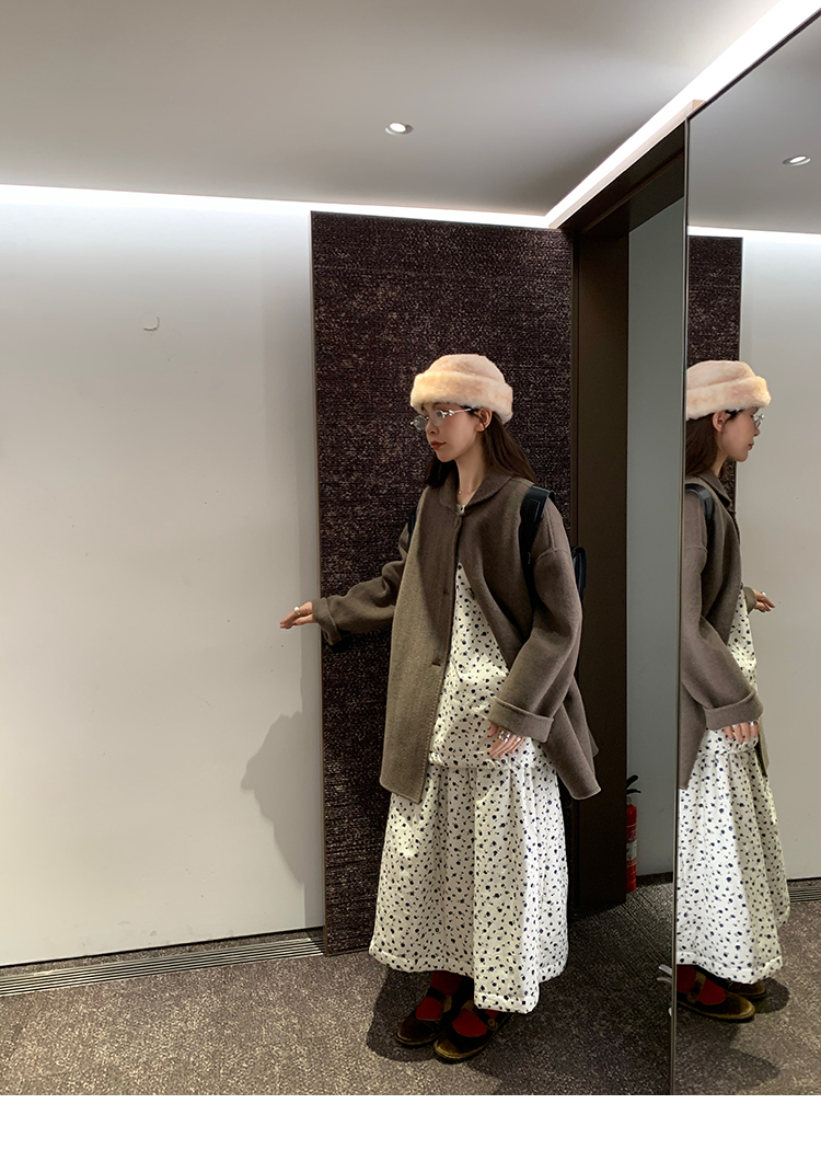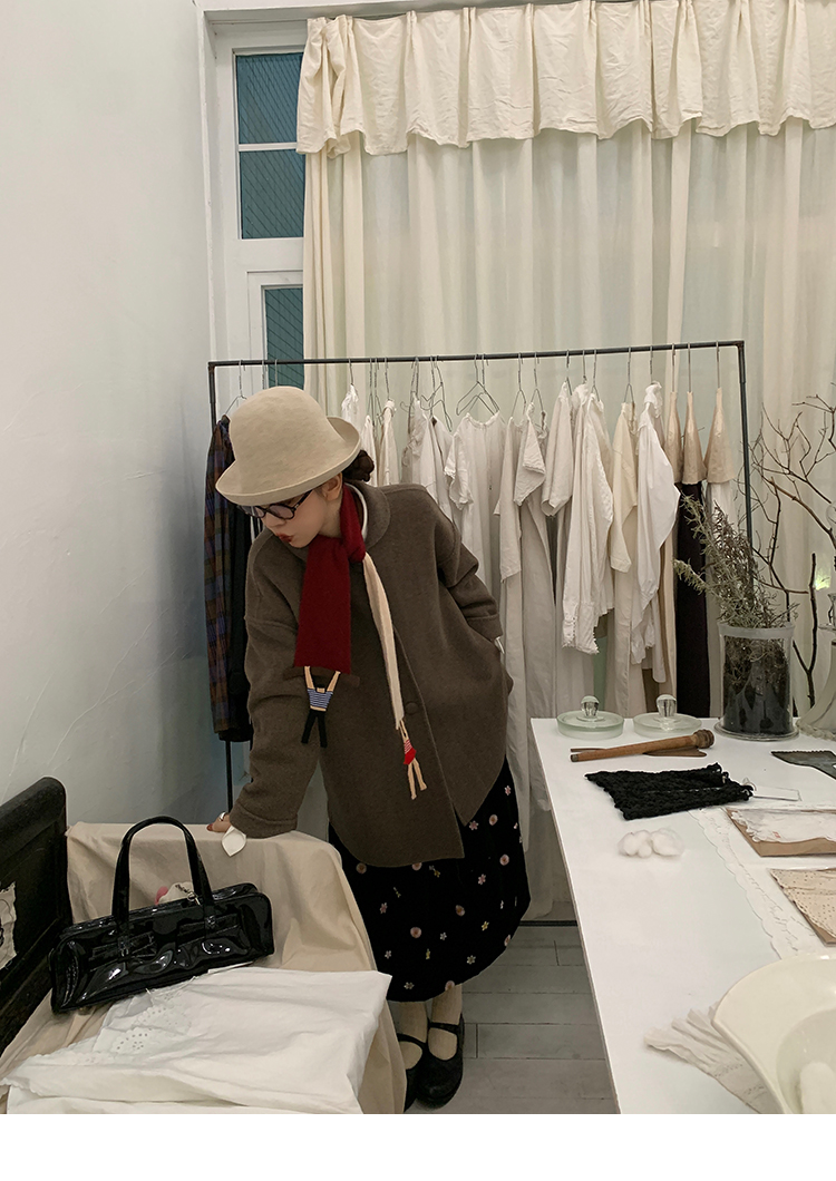 LRIB Mocha All-Wool Peter Pan Collar Loose Double-Faced Wool Coat