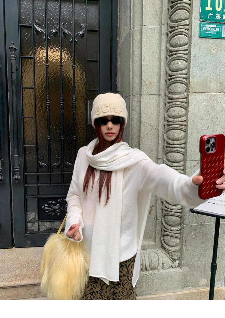 LRIB cool lazy all-wool off-white round neck knitted scarf top
