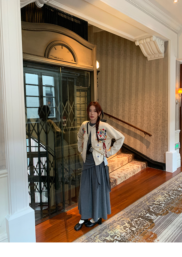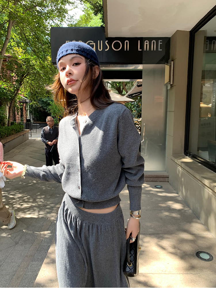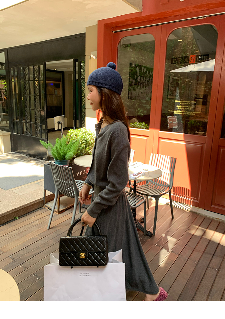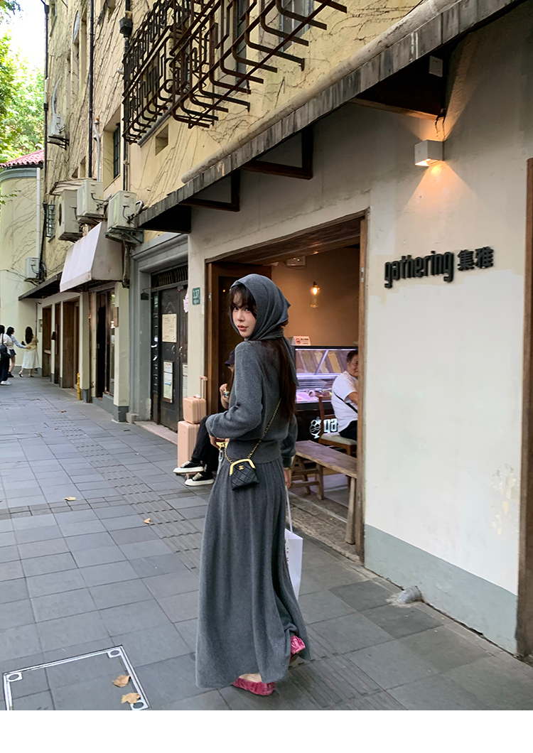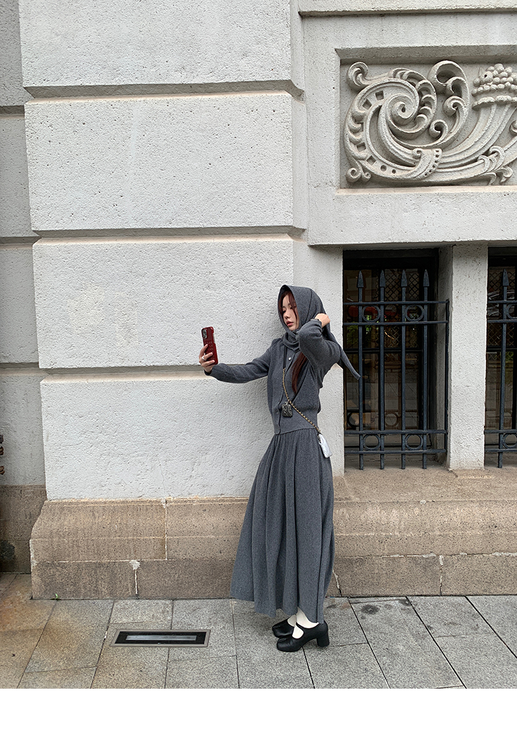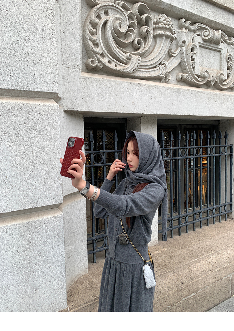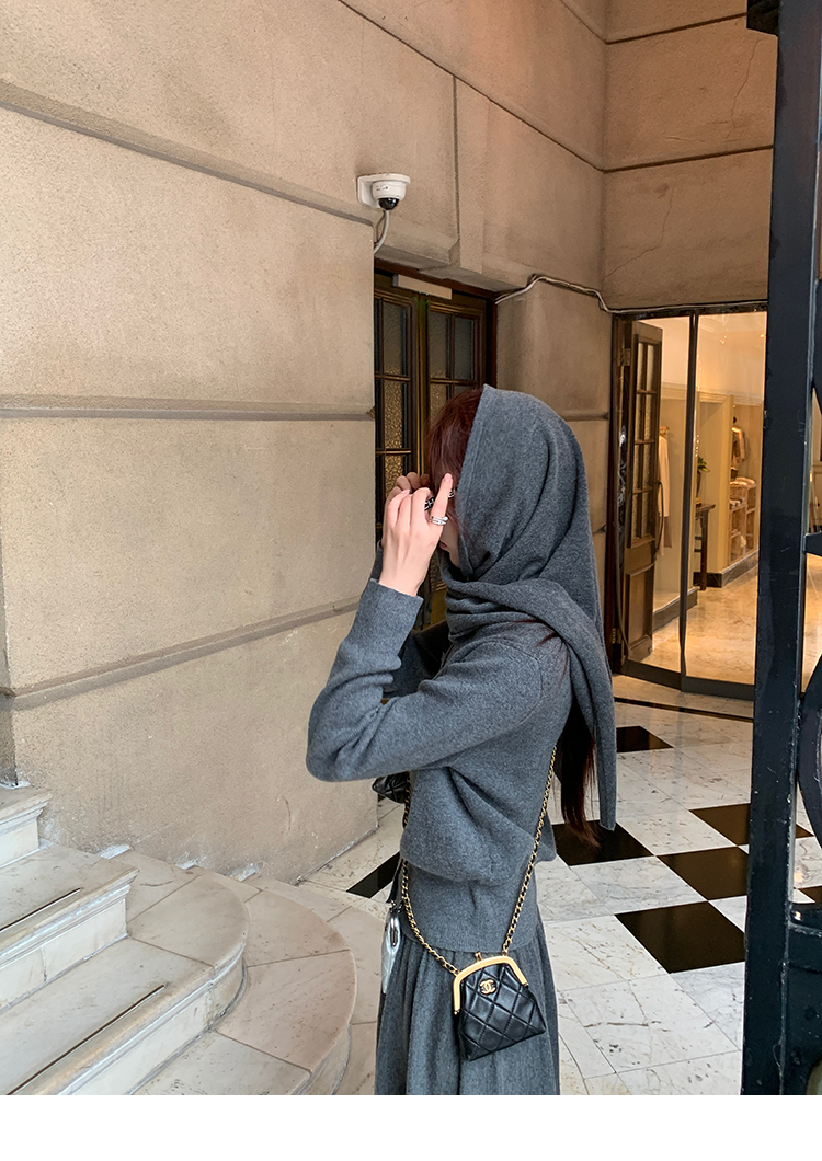 LRIB soft supply gray wool knitted cardigan skirt scarf three-piece set