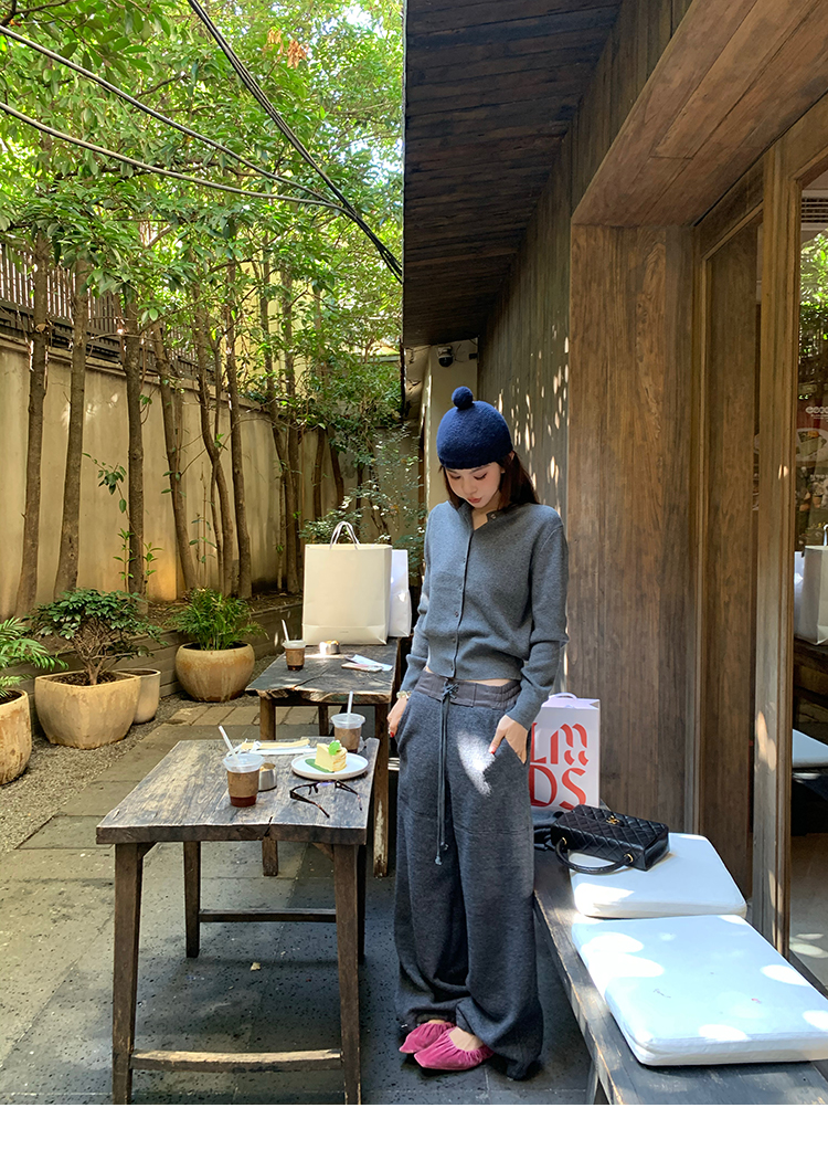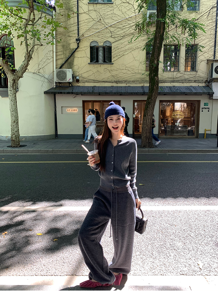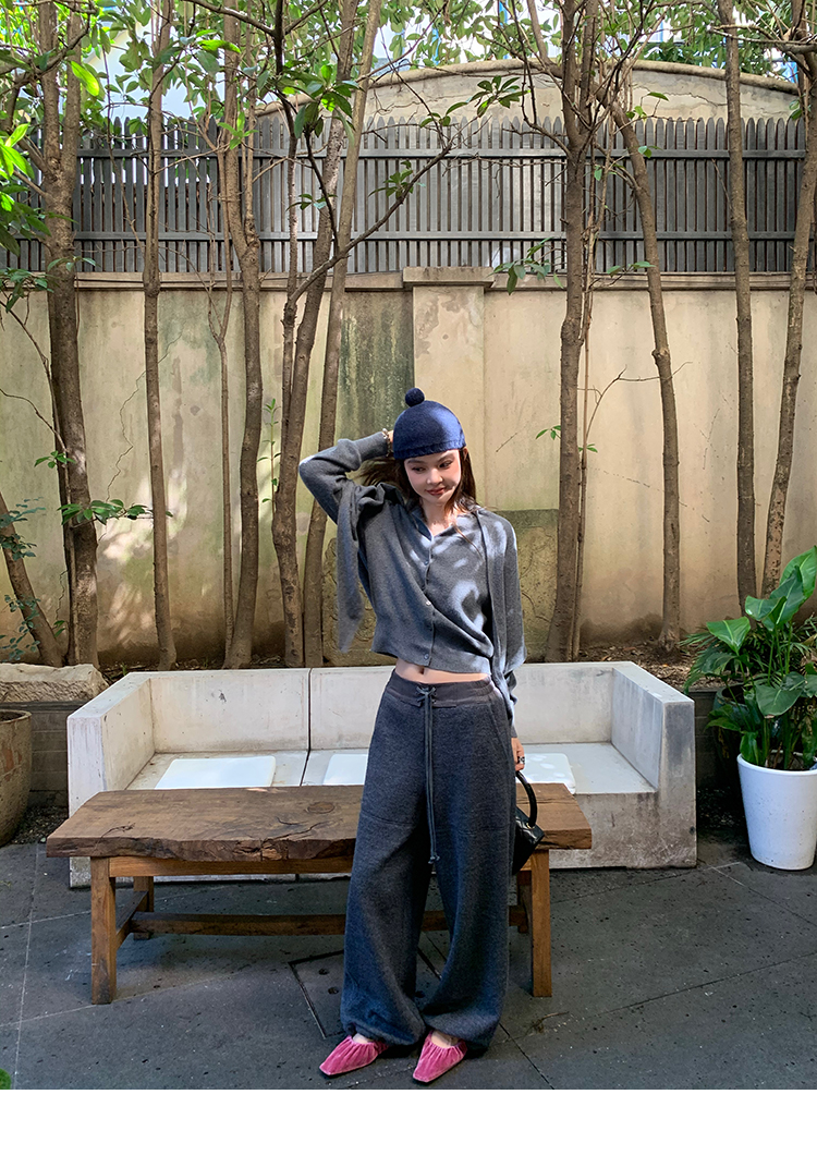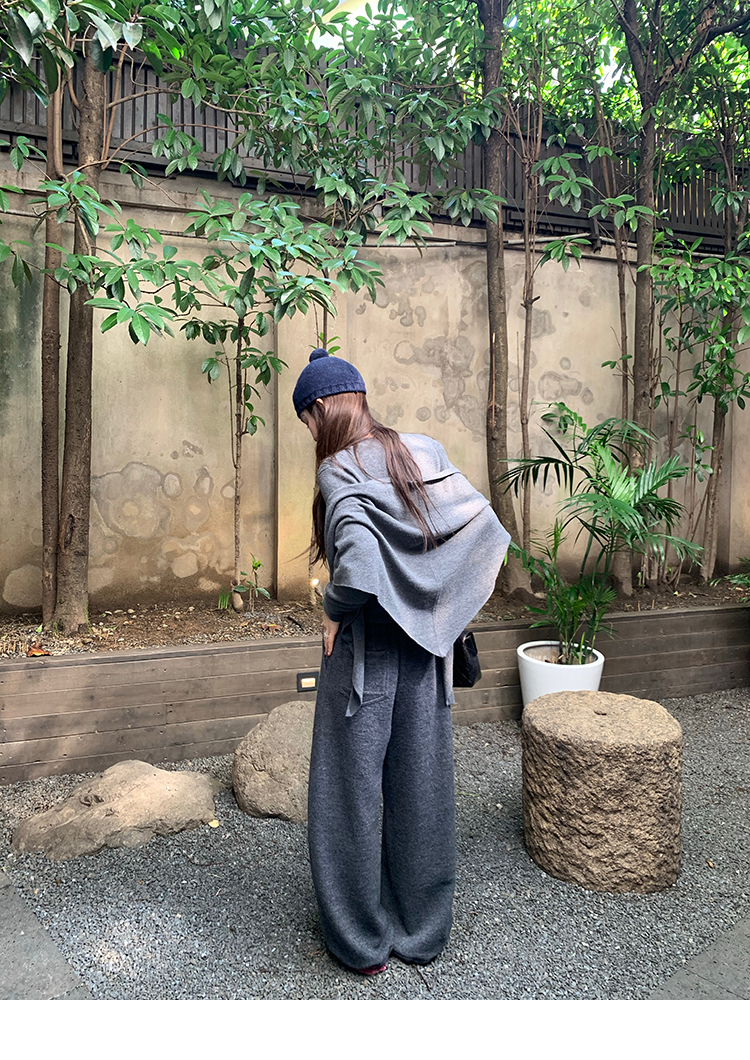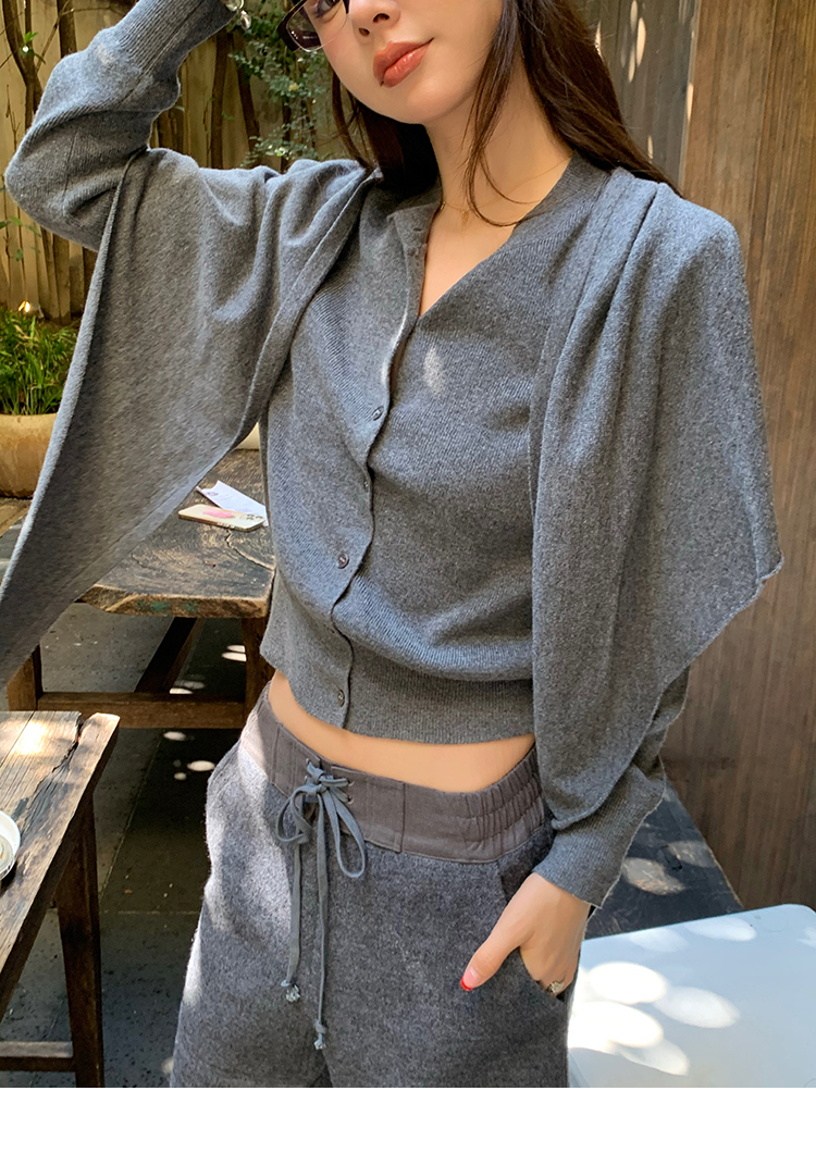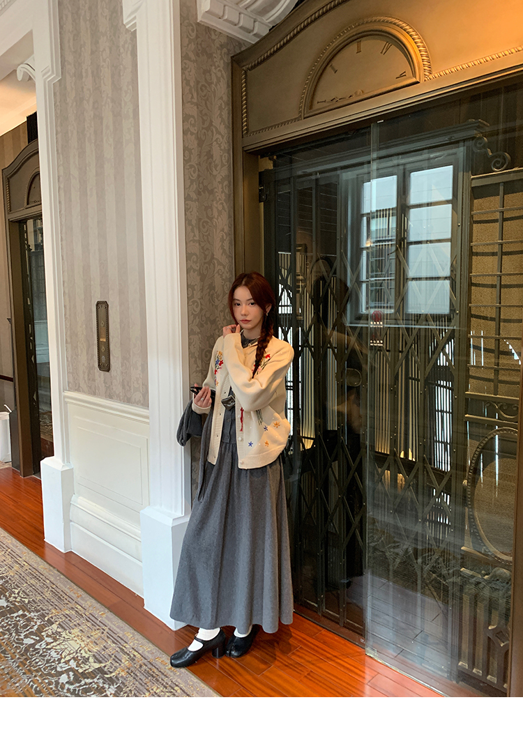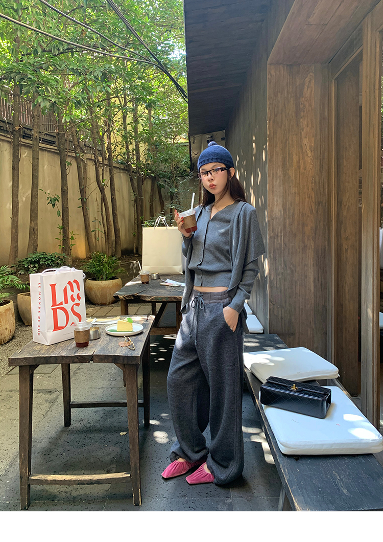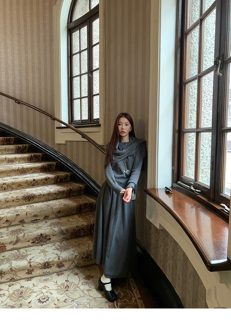 LRIB soft supply gray wool knitted cardigan skirt scarf three-piece set