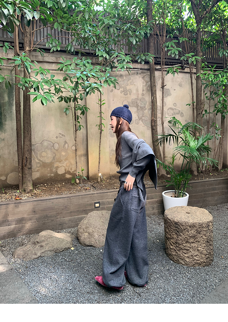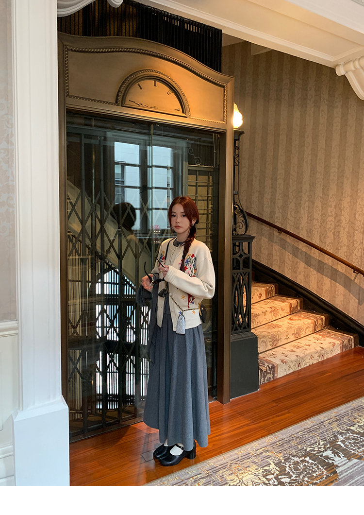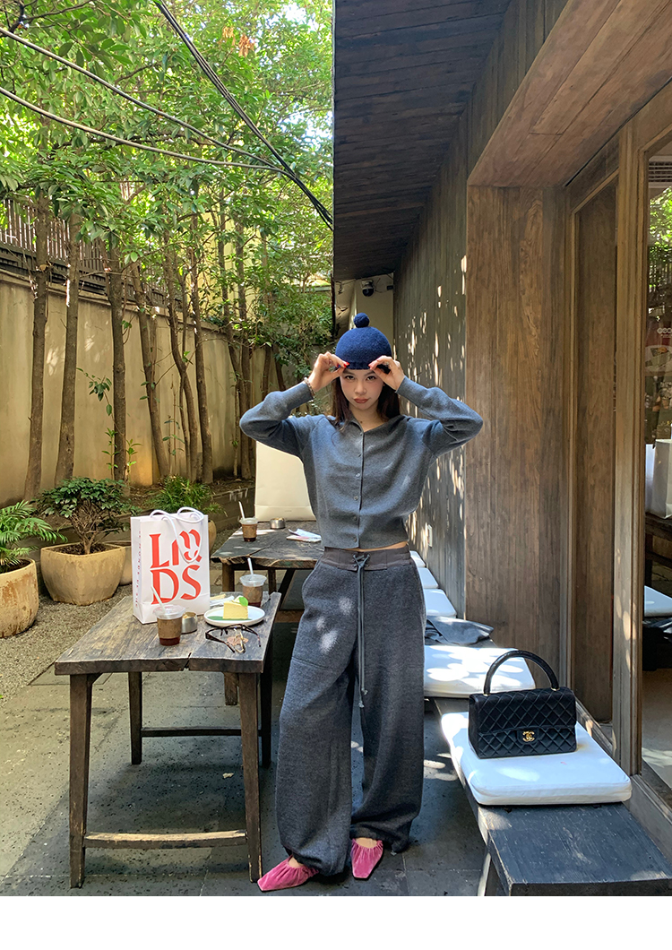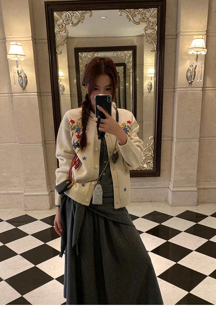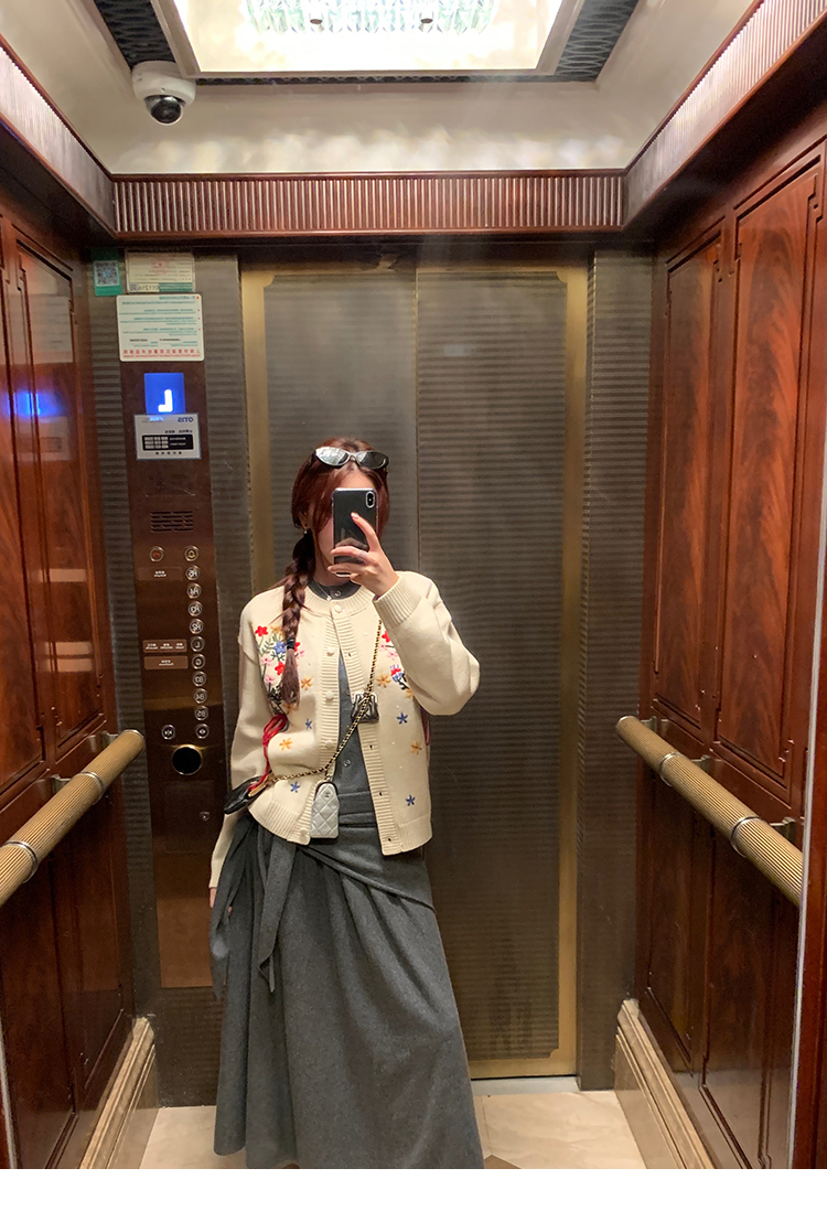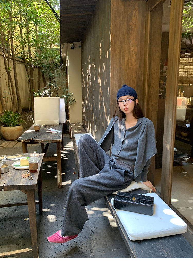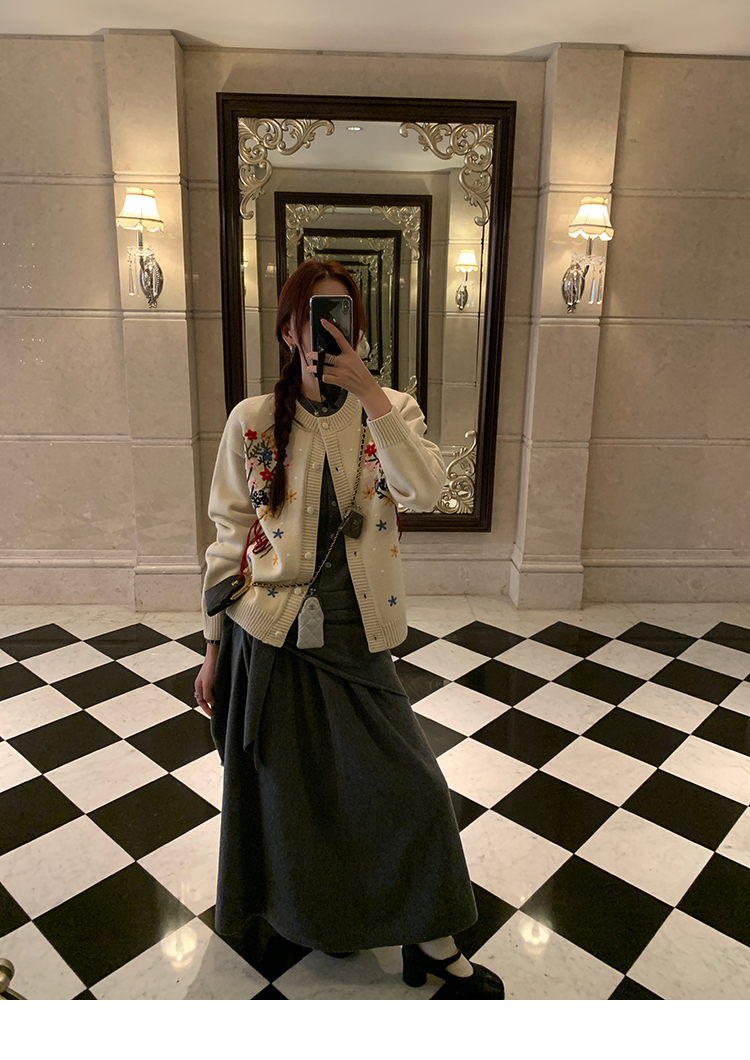 LRIB soft supply gray wool knitted cardigan skirt scarf three-piece set