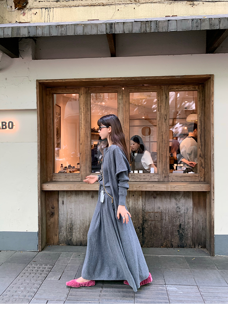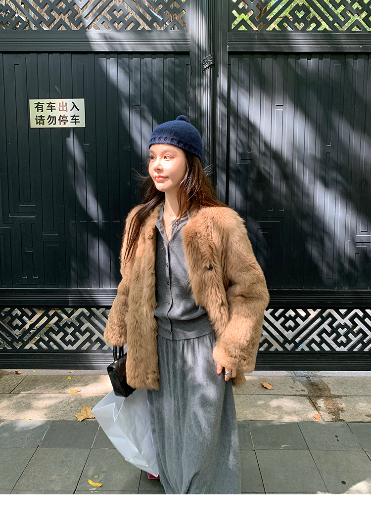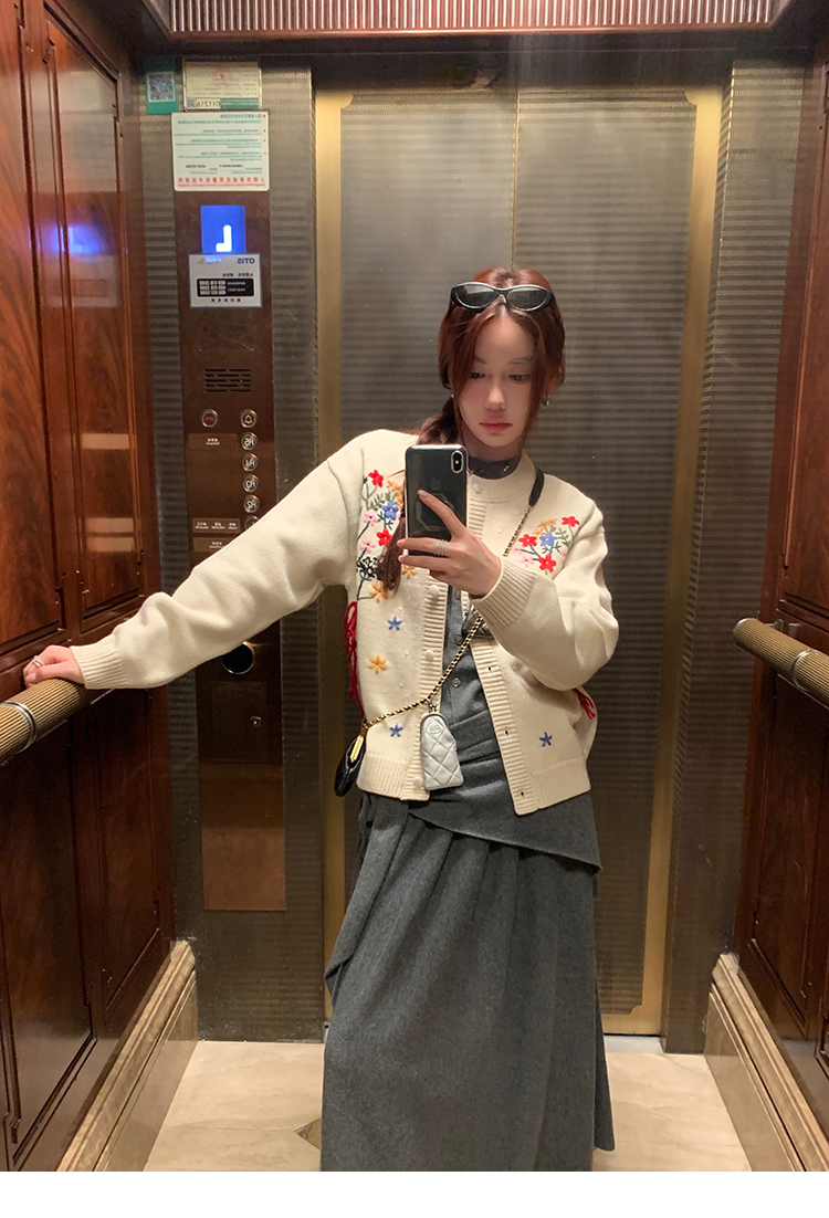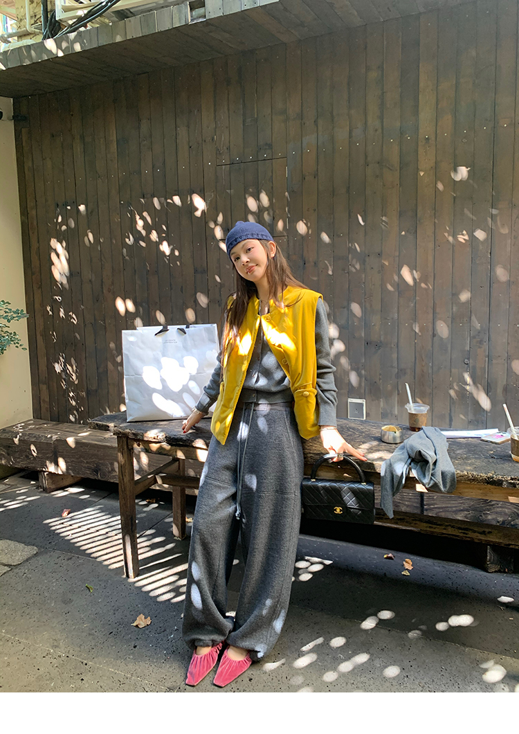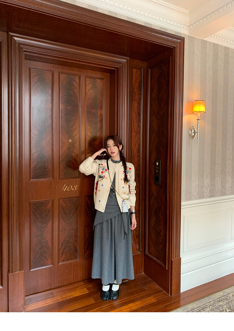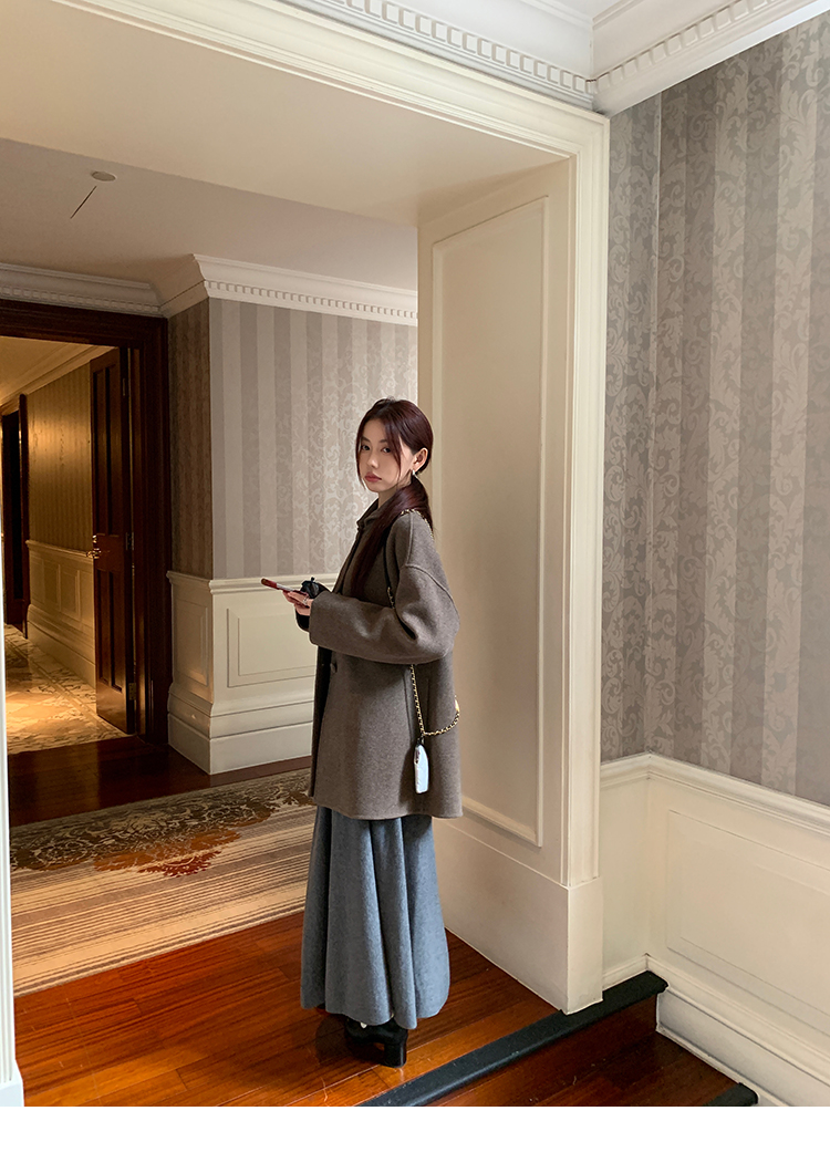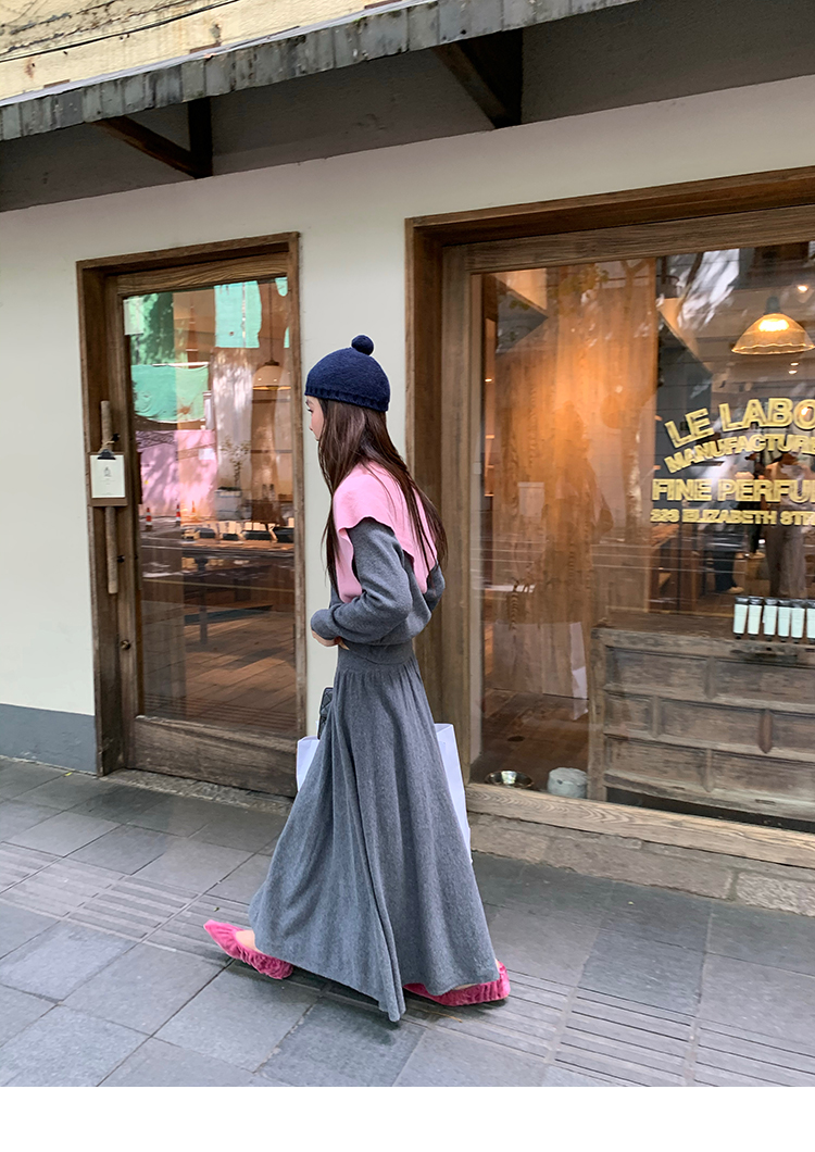 LRIB soft supply gray wool knitted cardigan skirt scarf three-piece set