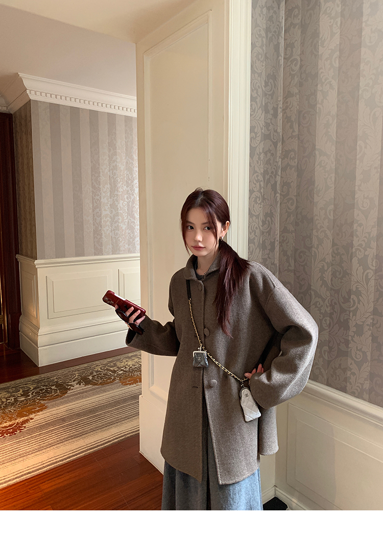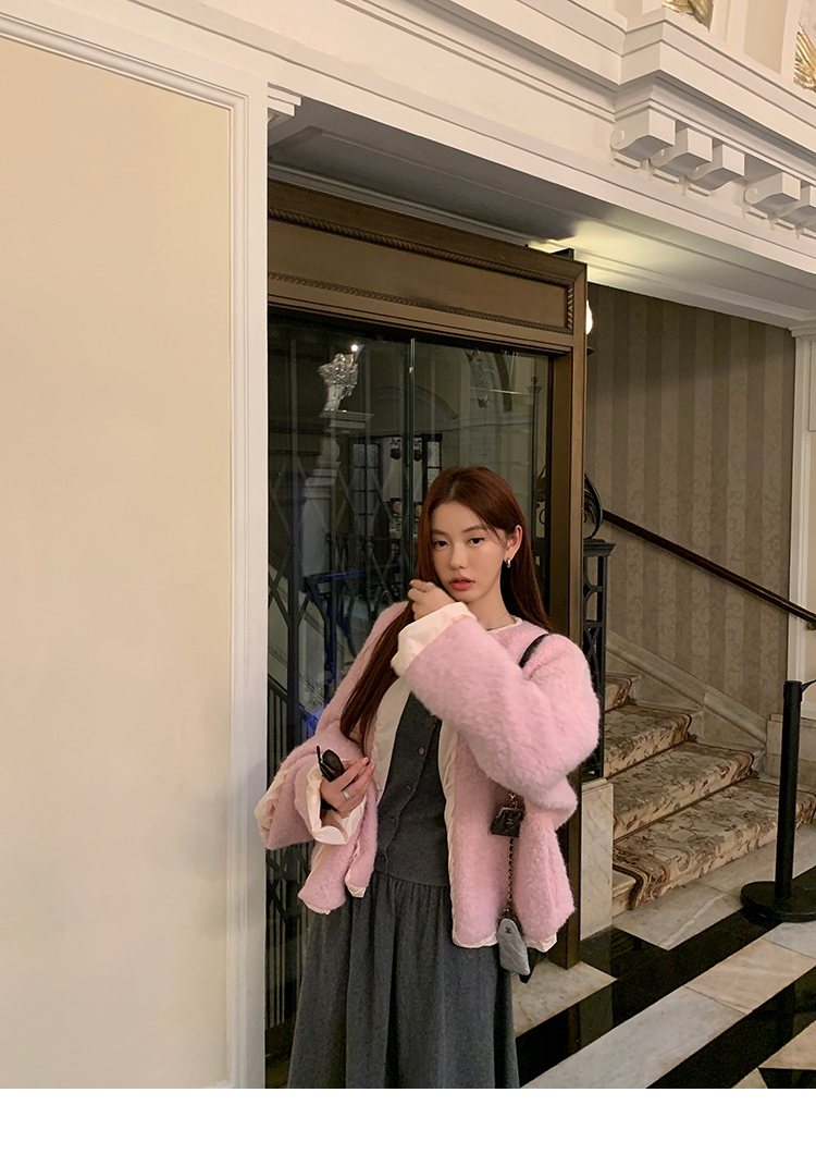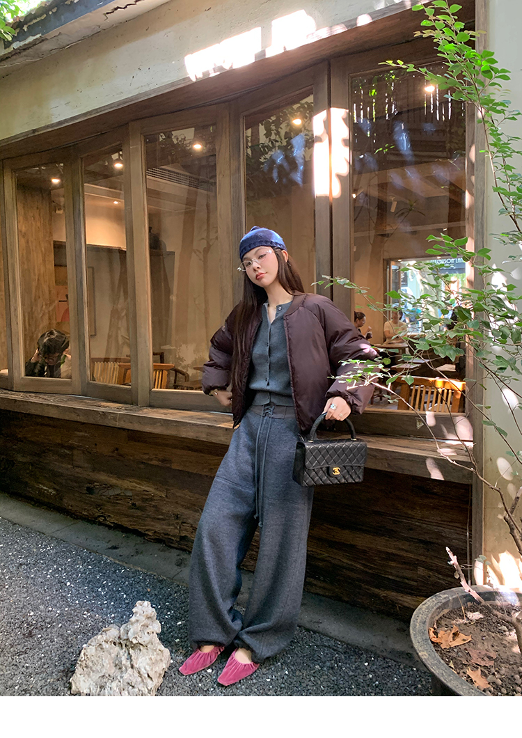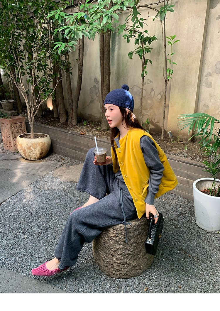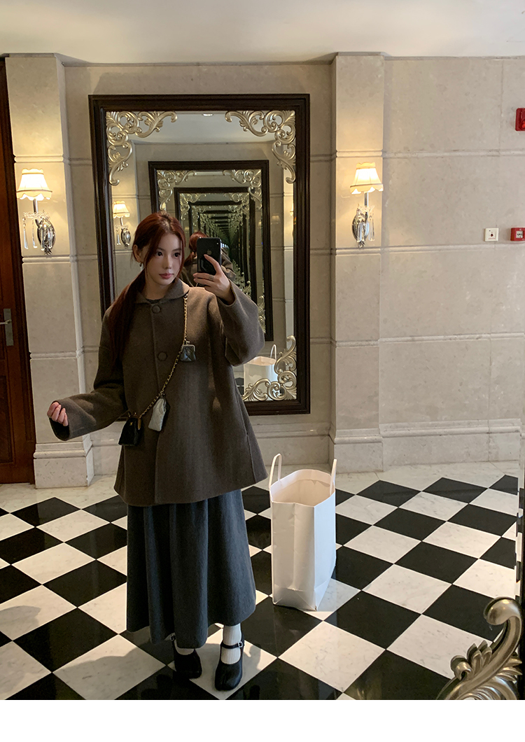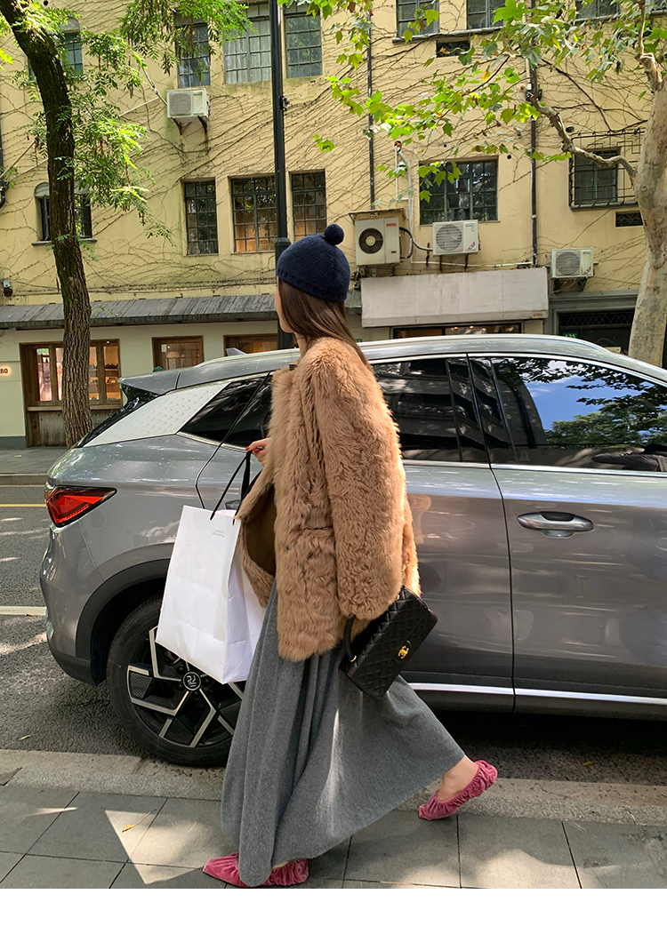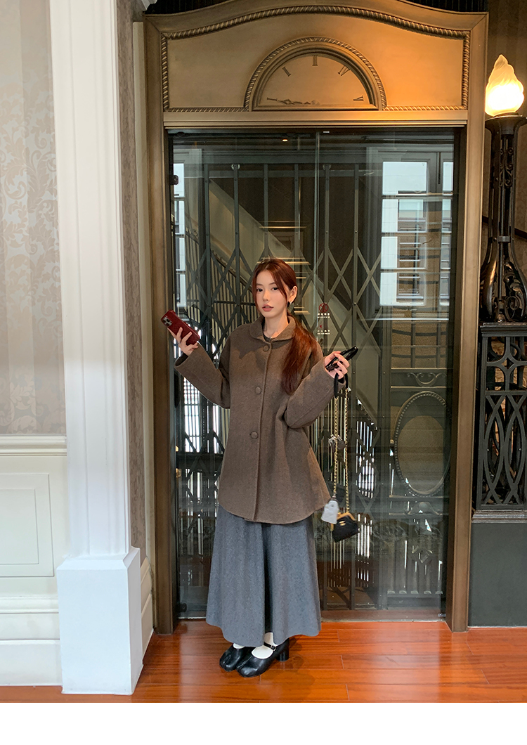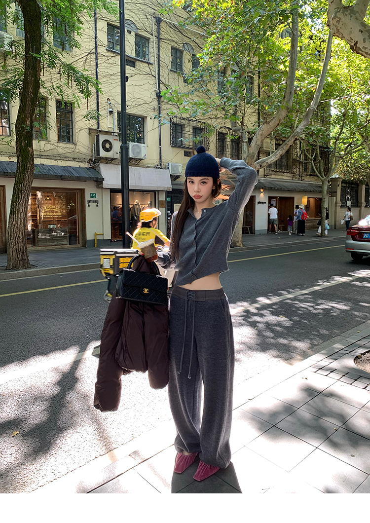 LRIB soft supply gray wool knitted cardigan skirt scarf three-piece set