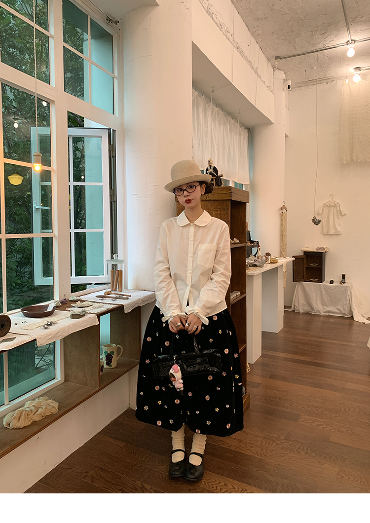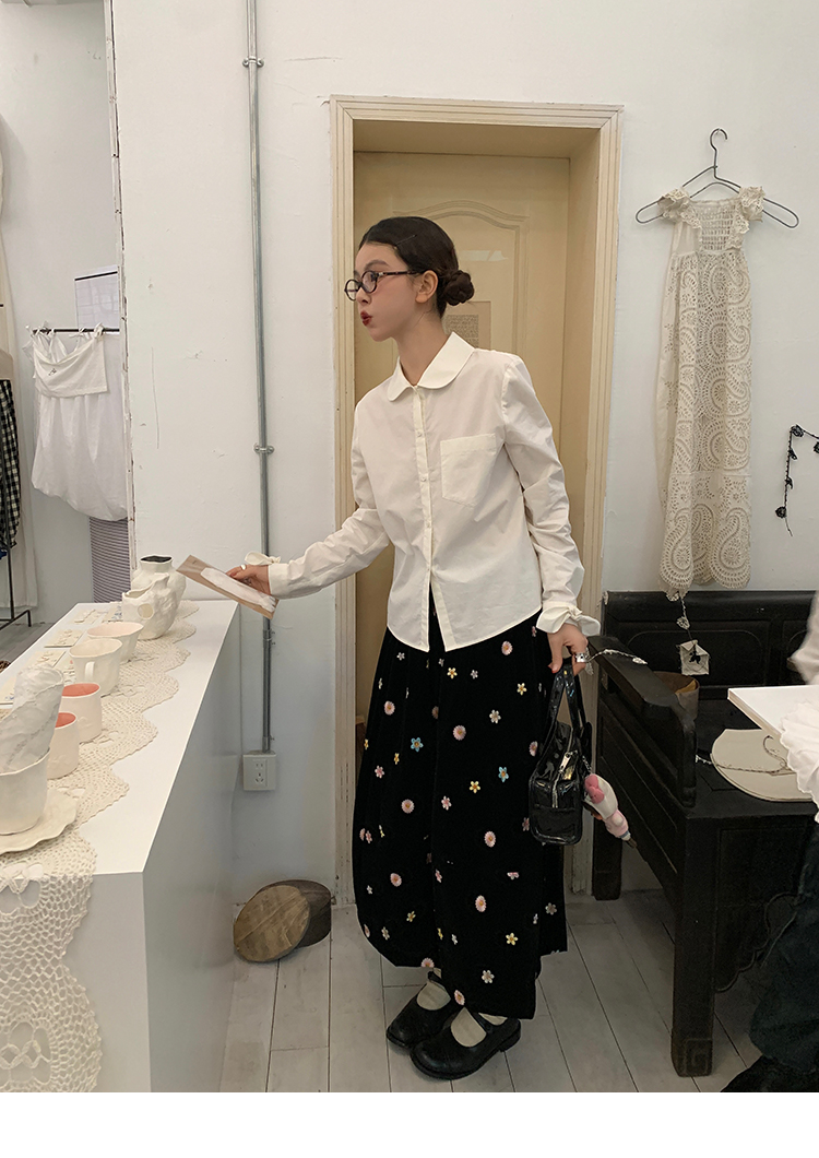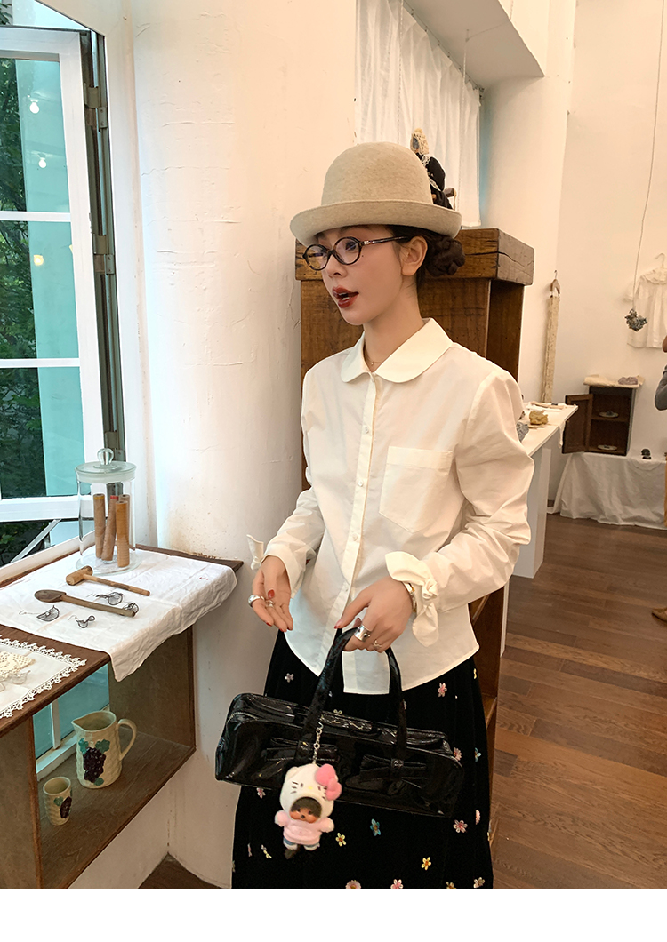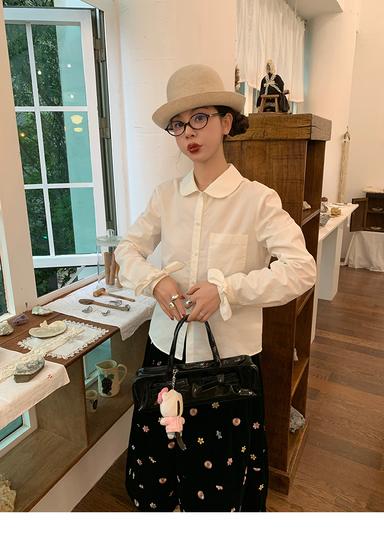 LRIB symbiosis doll lapel bow cuffs white shirt