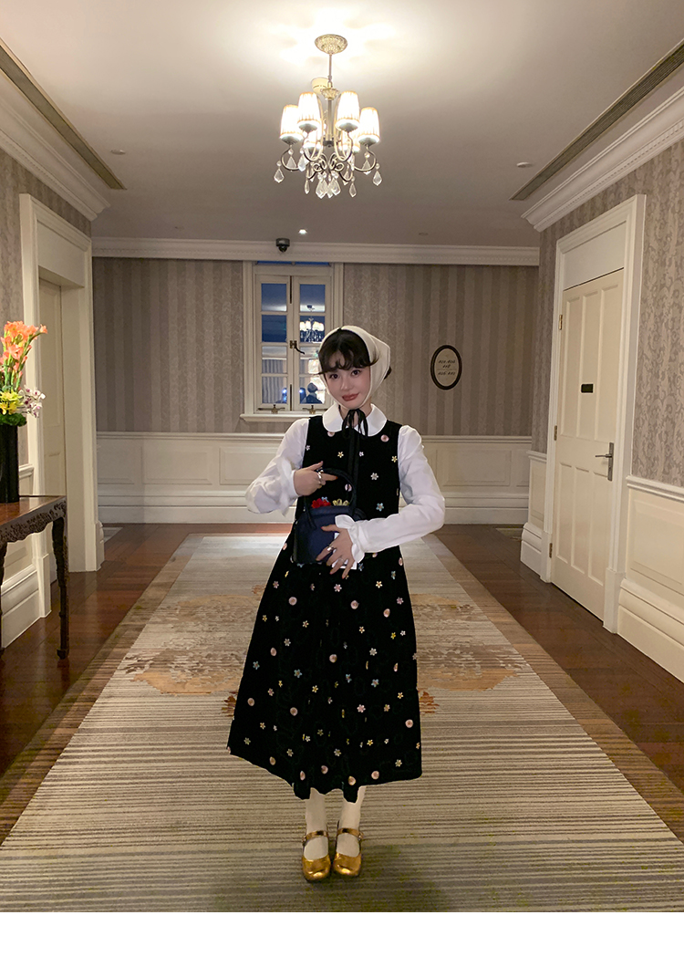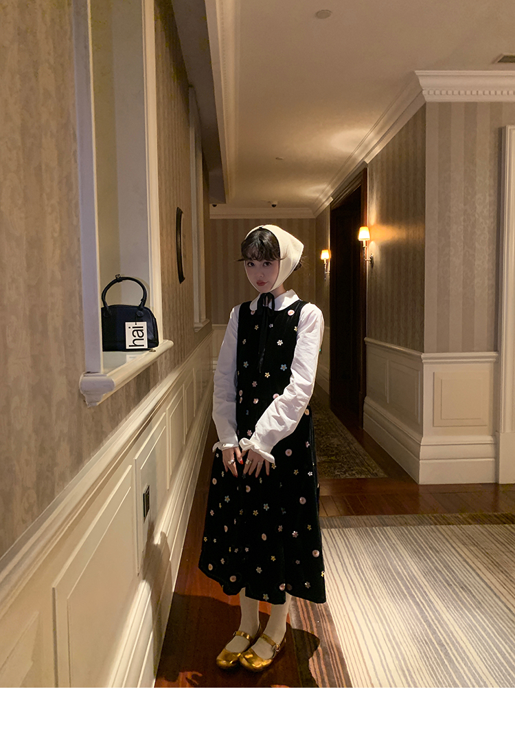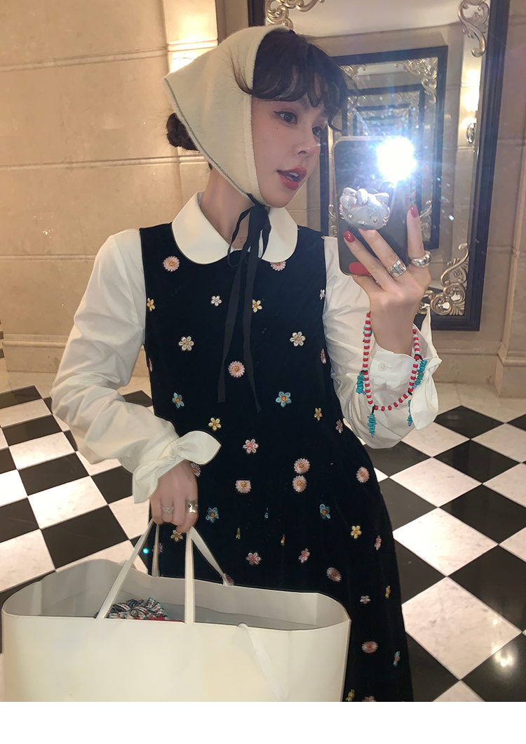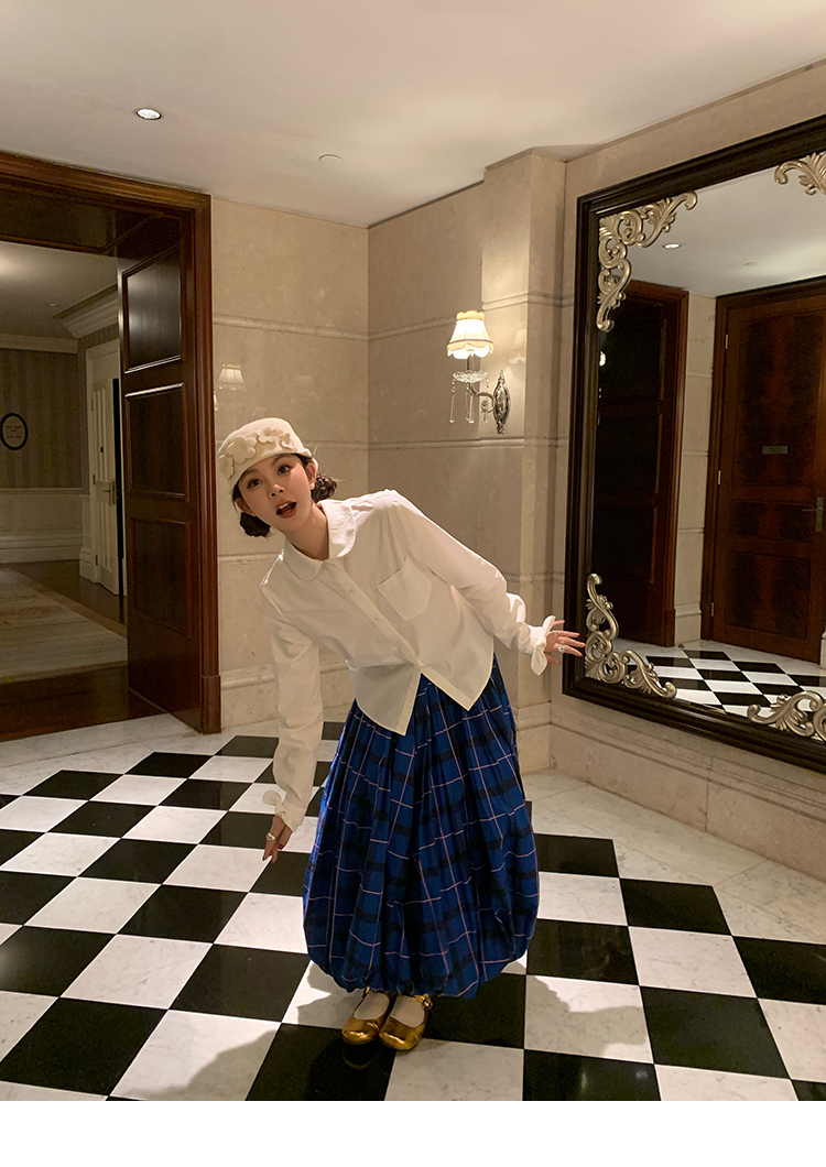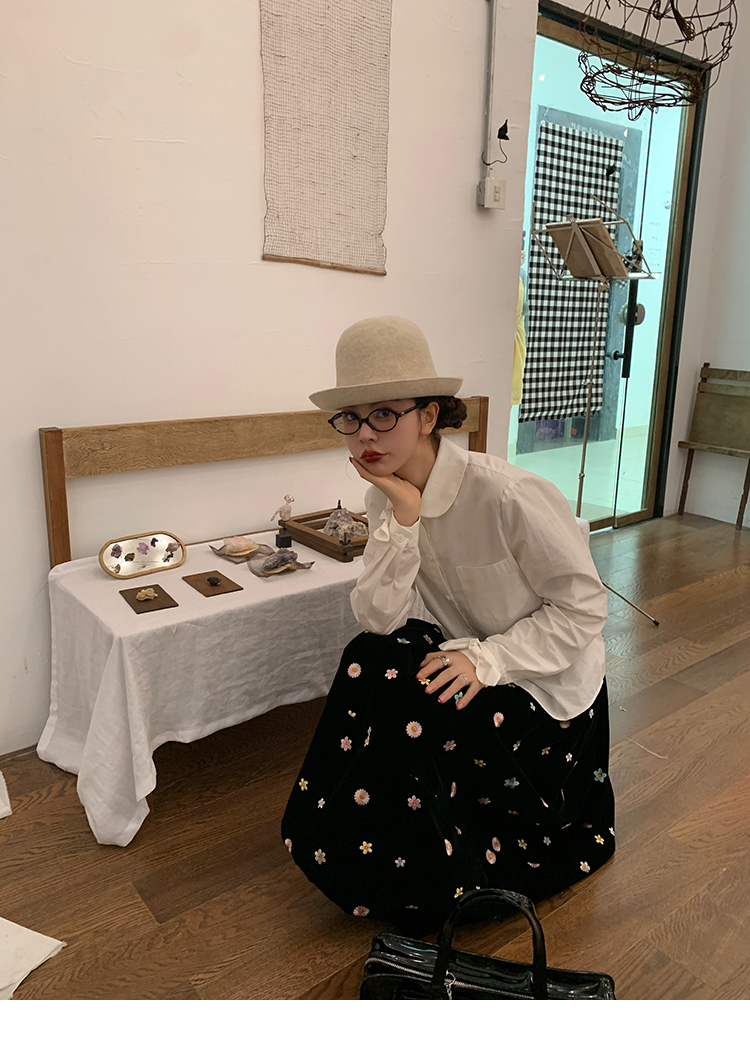 LRIB symbiosis doll lapel bow cuffs white shirt