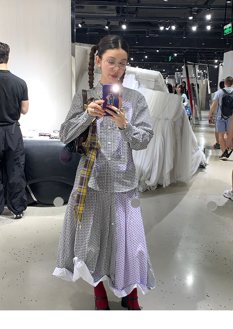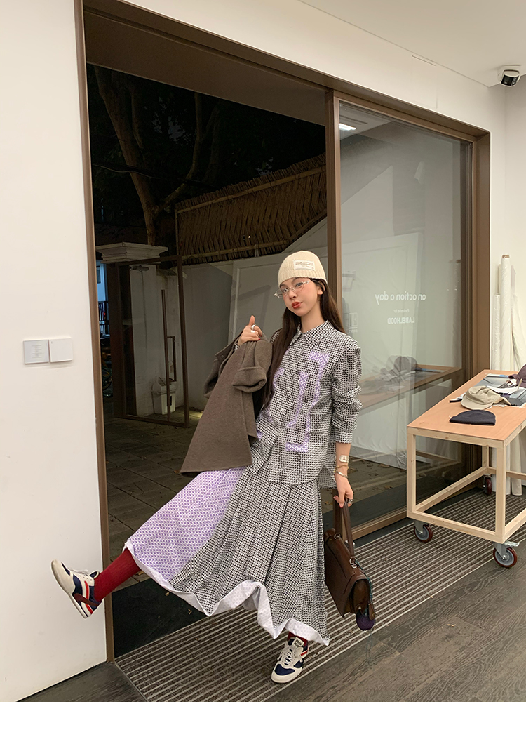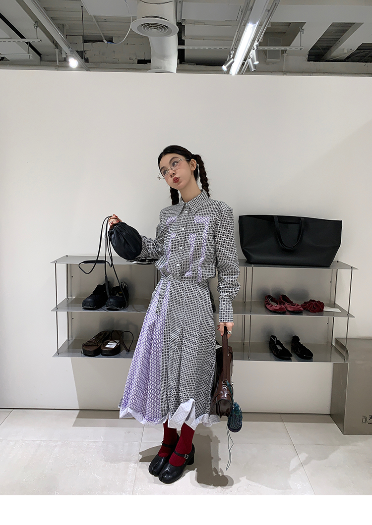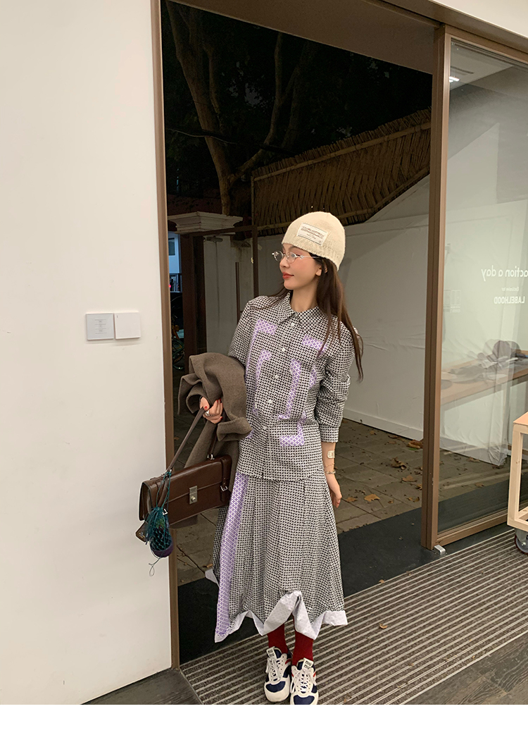 LRIB Pop Art Student Patchwork Shirt and Skirt Set