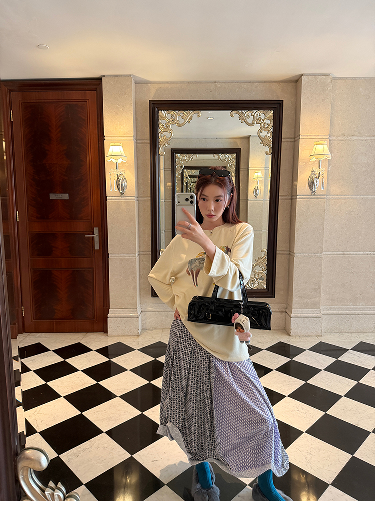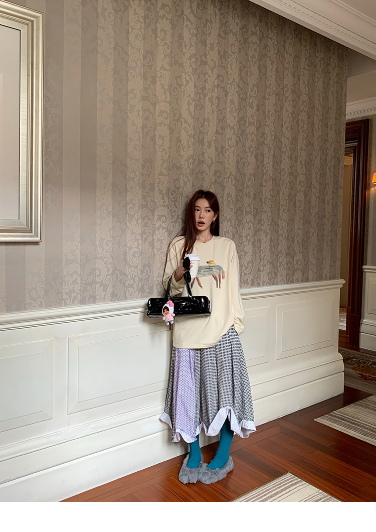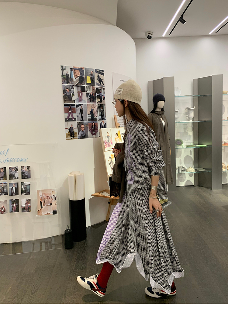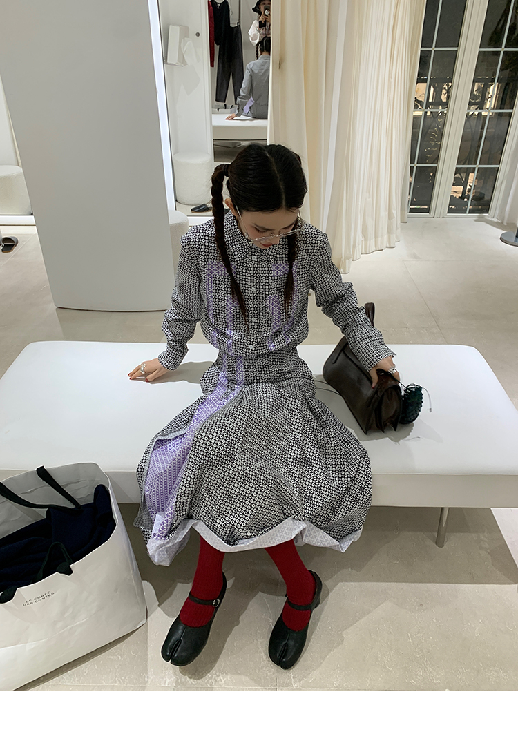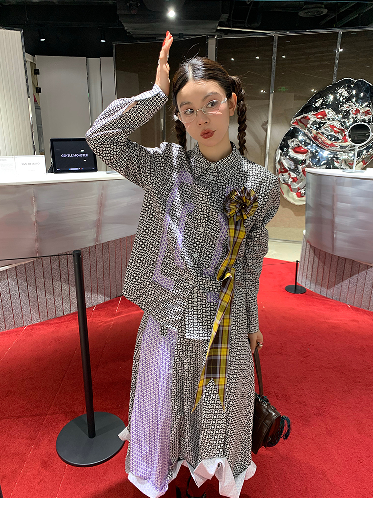 LRIB Pop Art Student Patchwork Shirt and Skirt Set