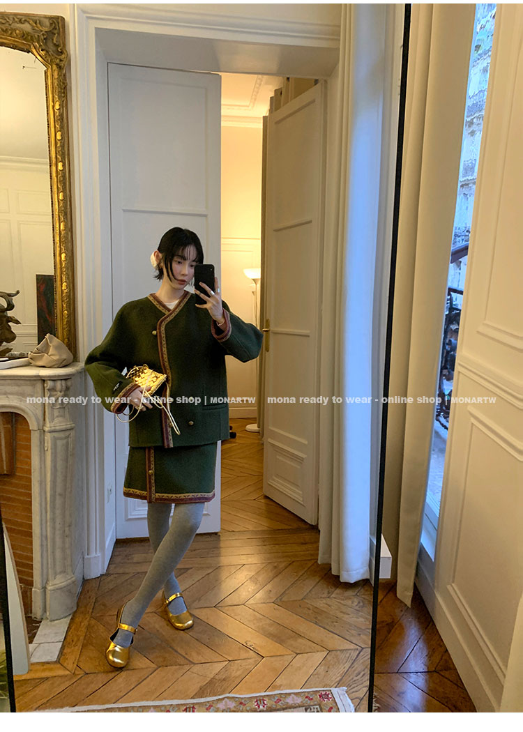 MONARTW Wool High-End Dual-Sided Wool Jacket Skirt Set