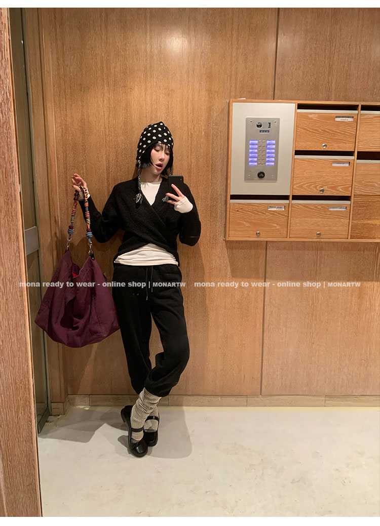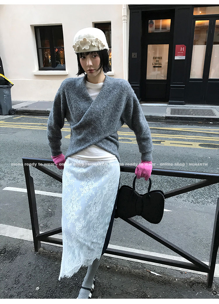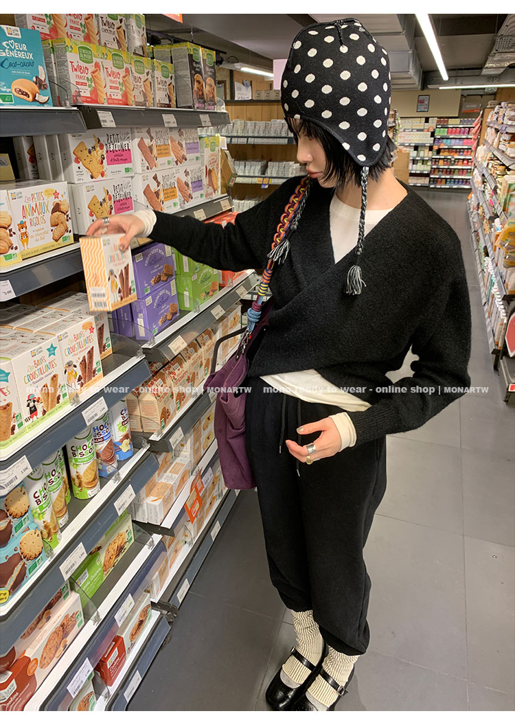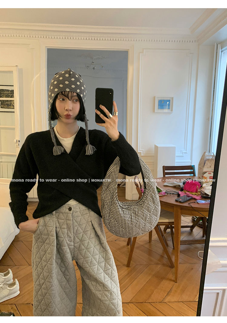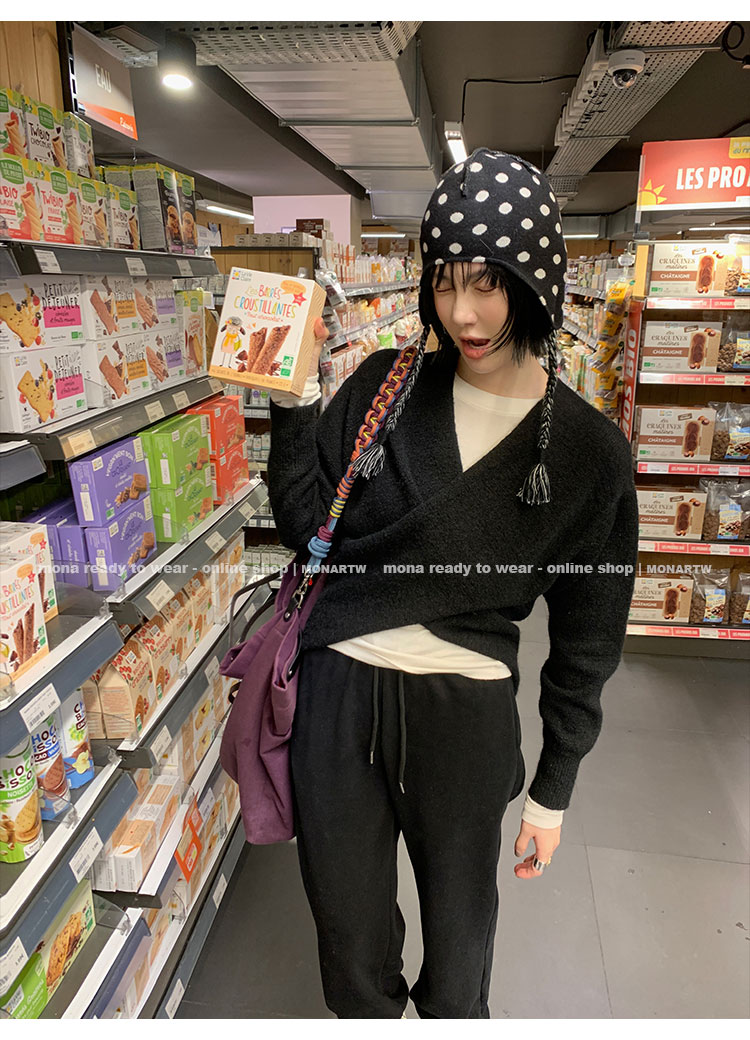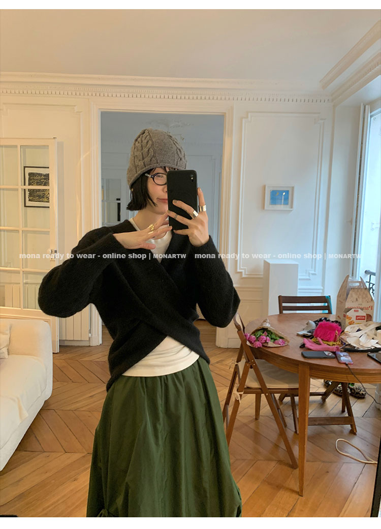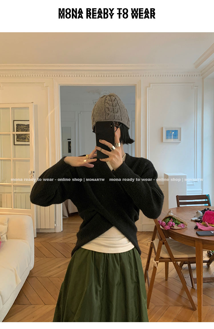 MONARTW Cross-Collar V-neck Waist Knit Sweater