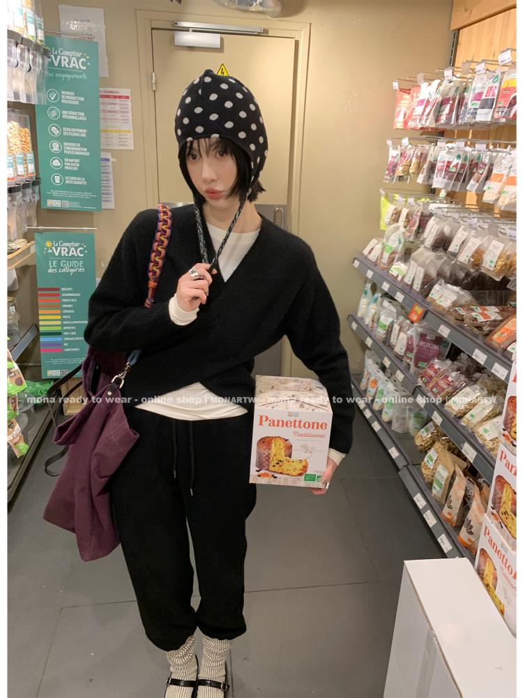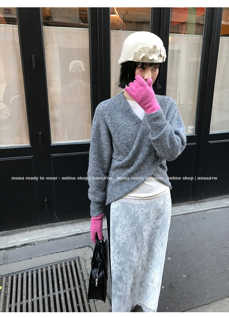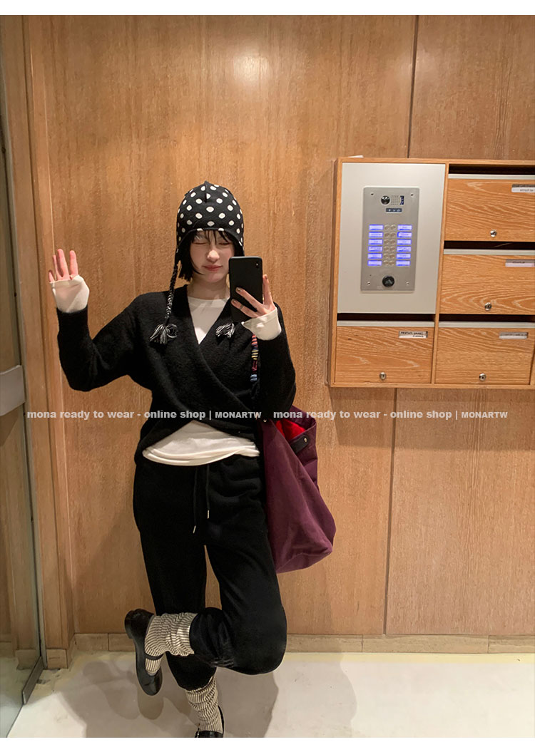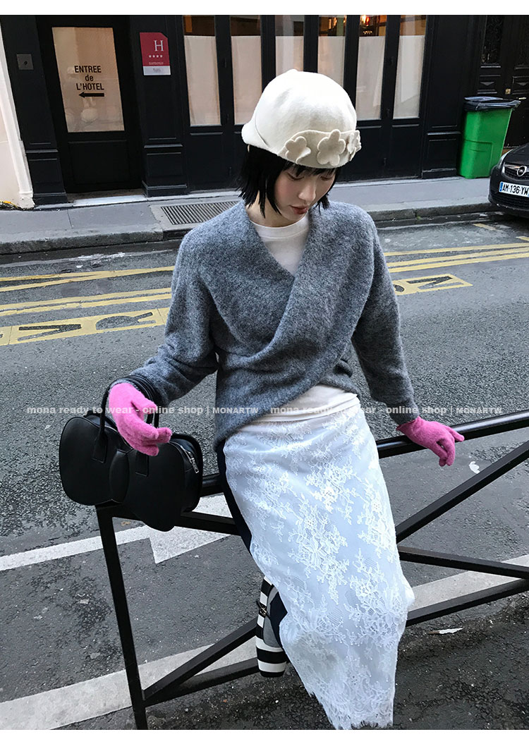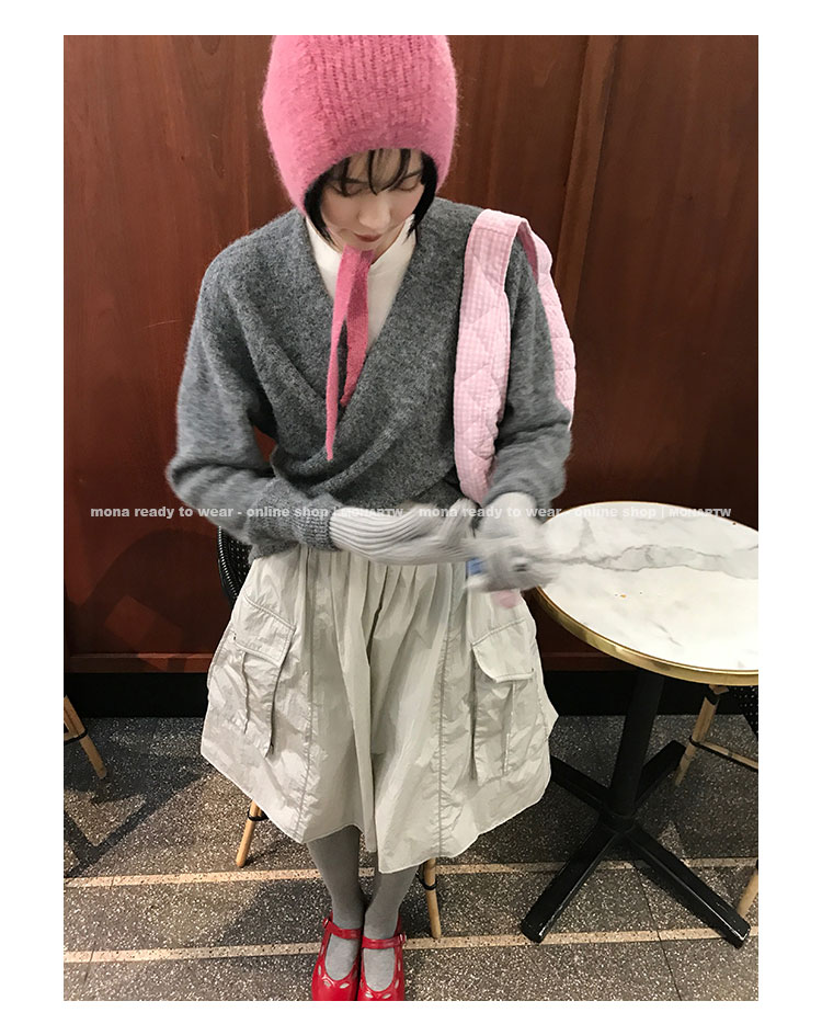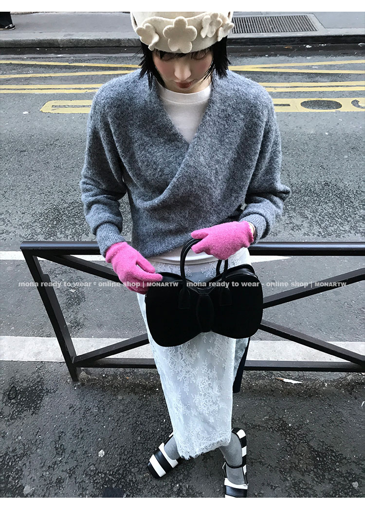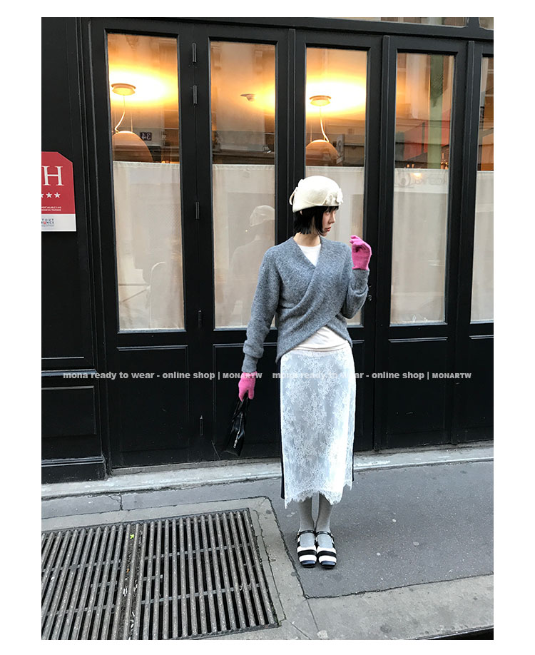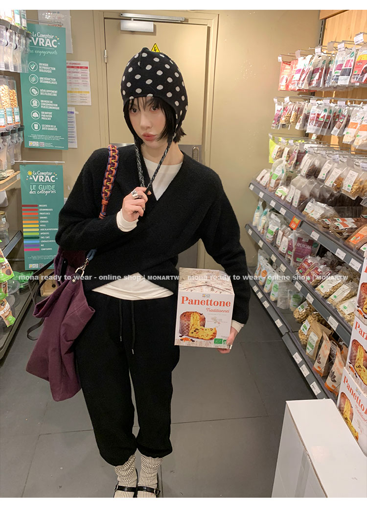 MONARTW Cross-Collar V-neck Waist Knit Sweater