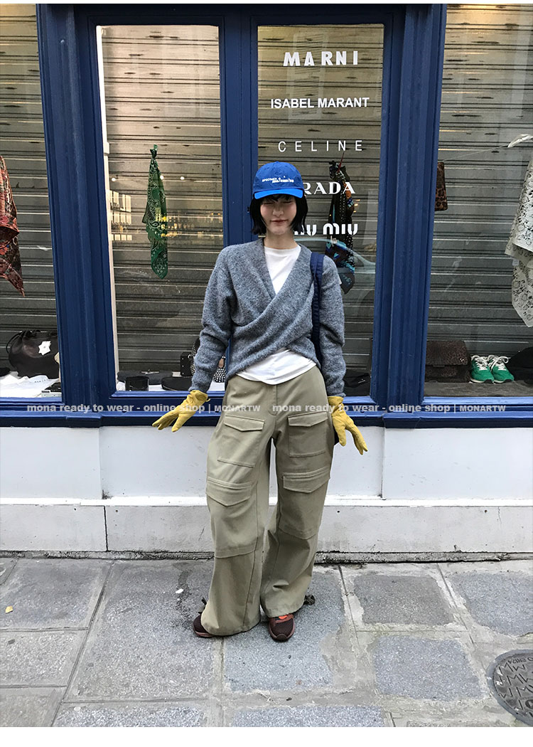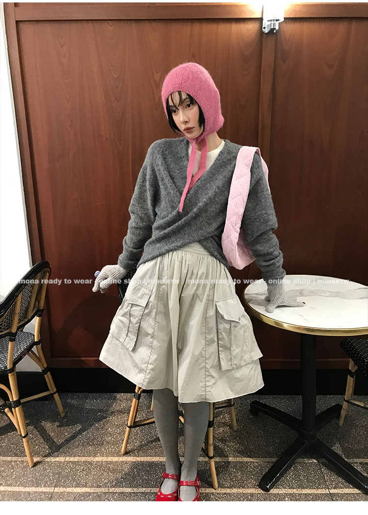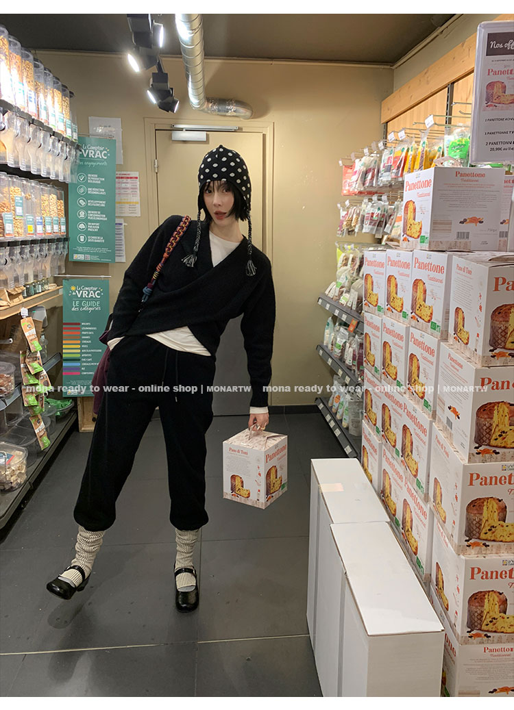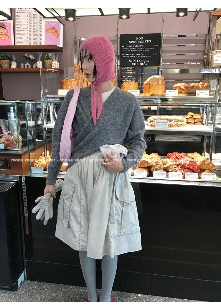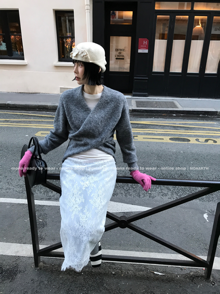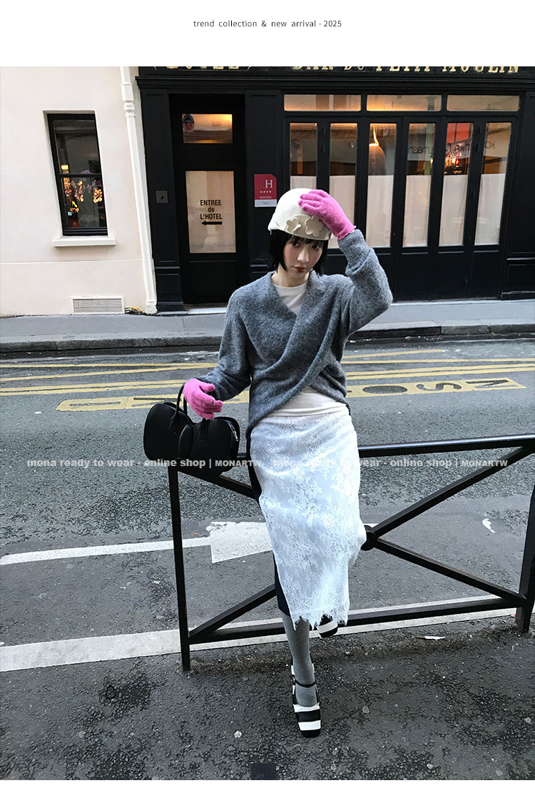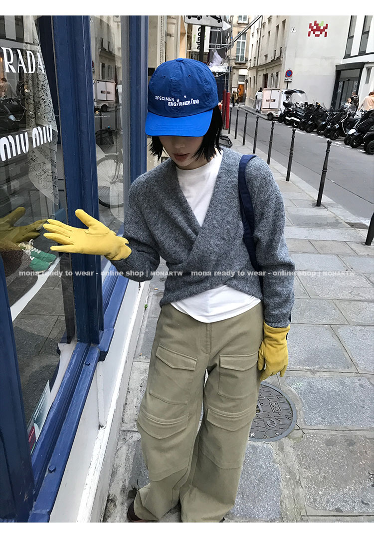 MONARTW Cross-Collar V-neck Waist Knit Sweater