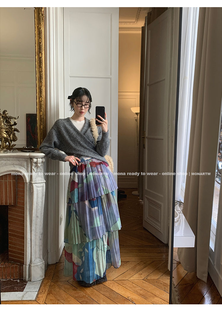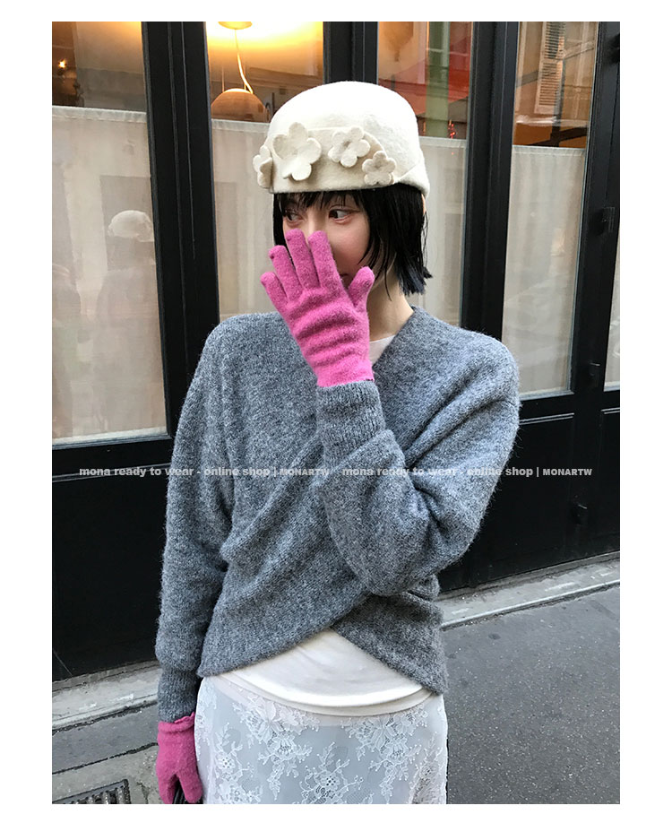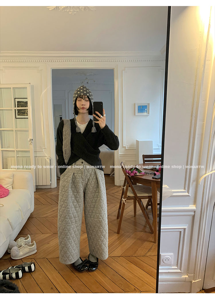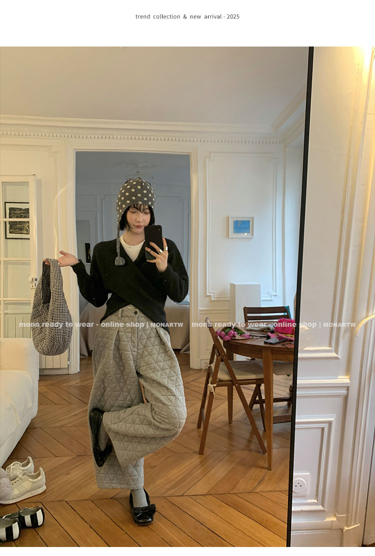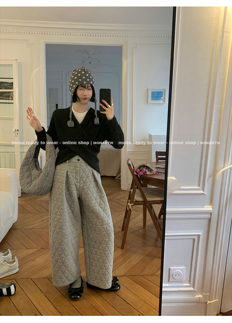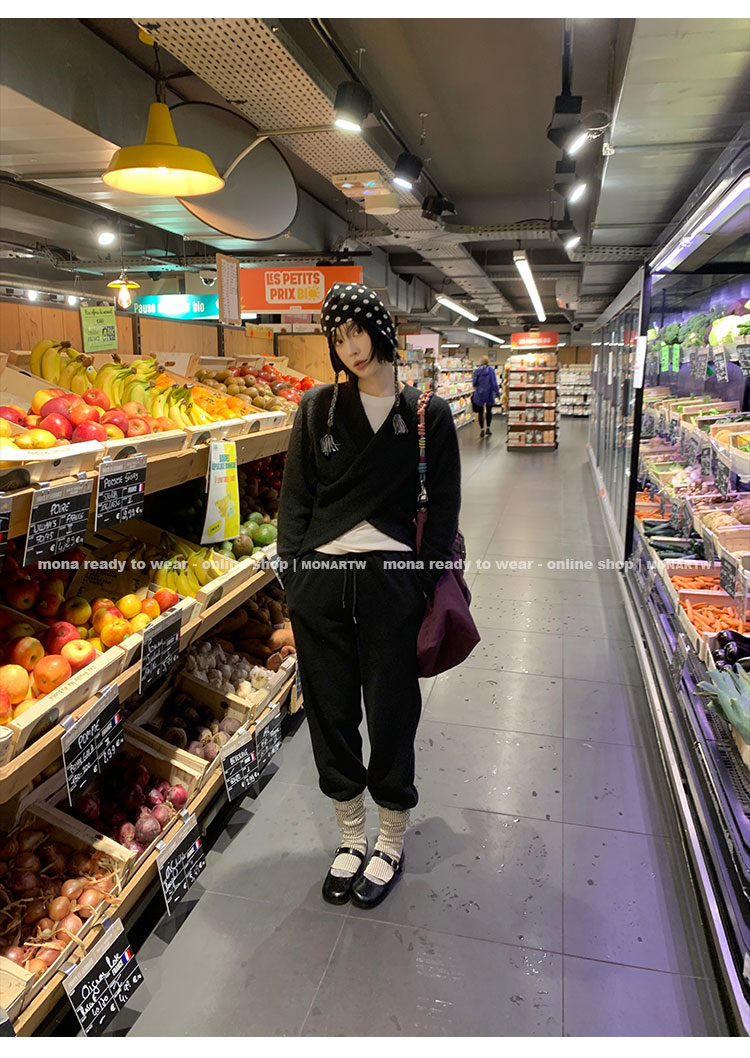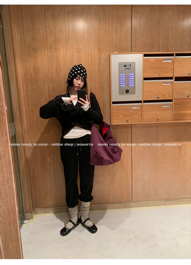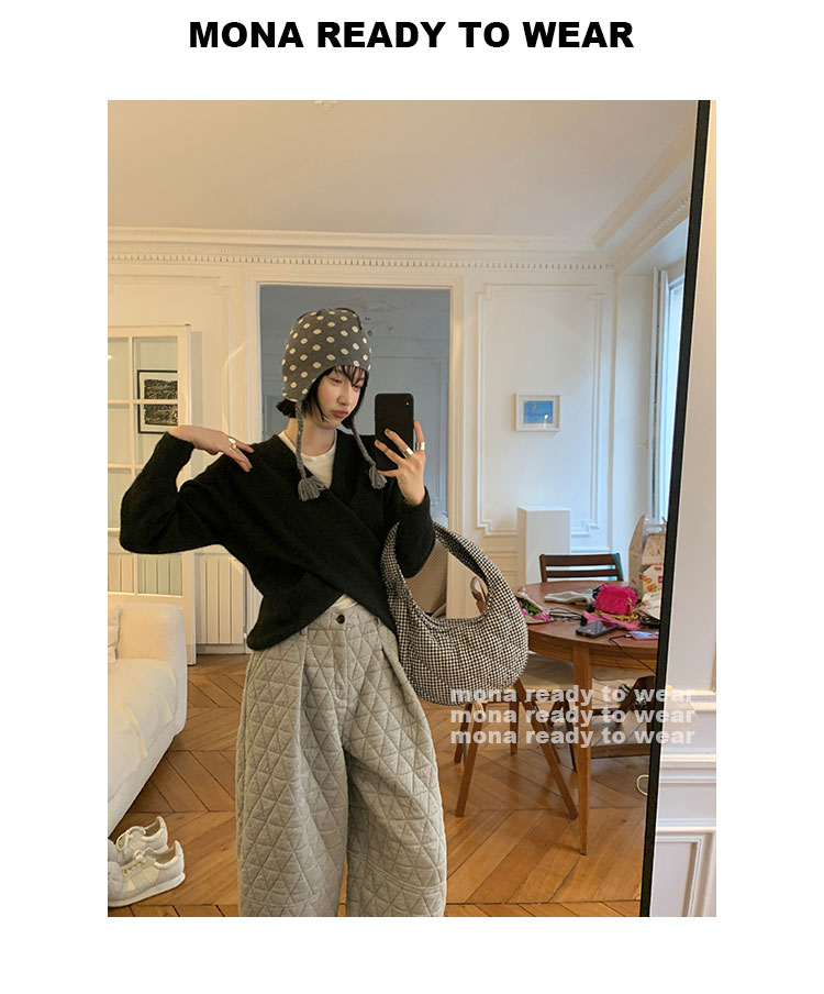 MONARTW Cross-Collar V-neck Waist Knit Sweater