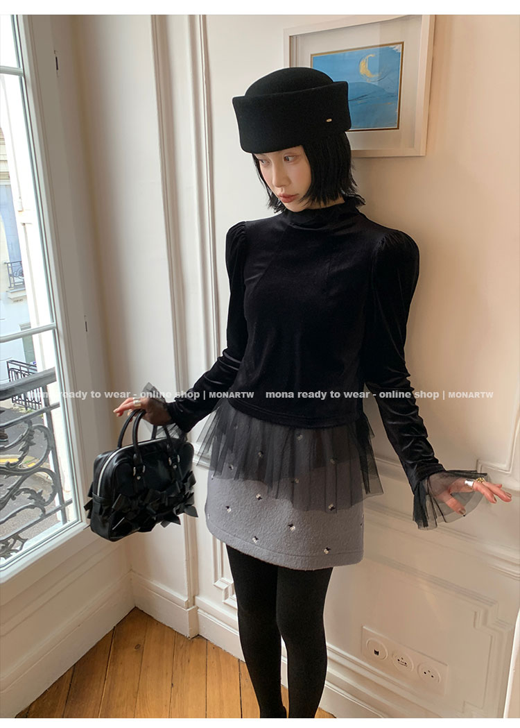 MONARTW Velvet Mesh Seamless Top