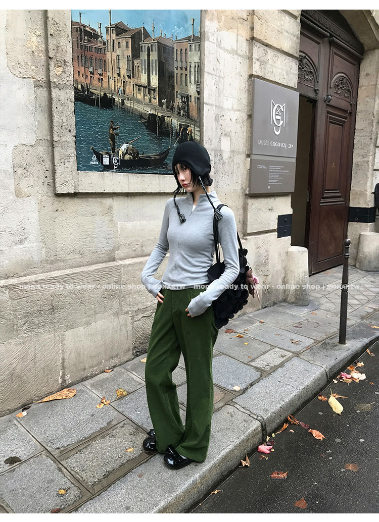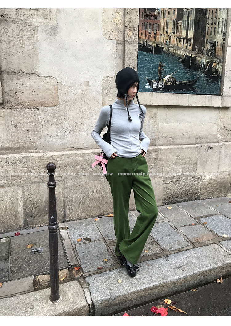 MONARTW Vintage Micro Velvet Mid-Waisted Pants