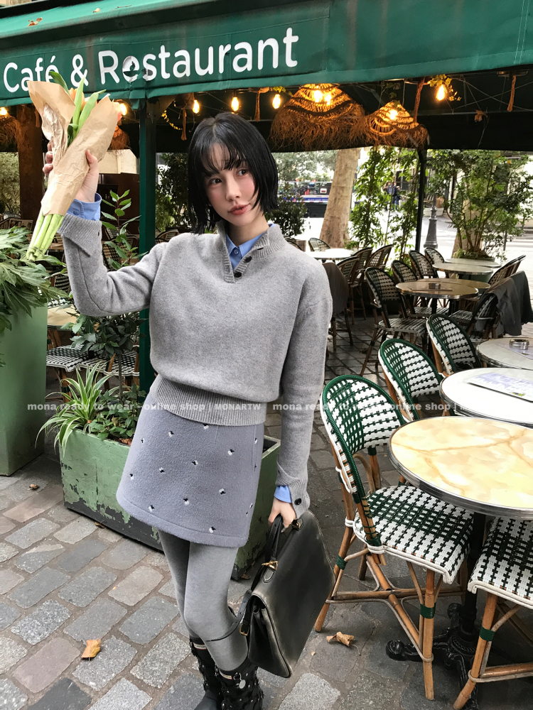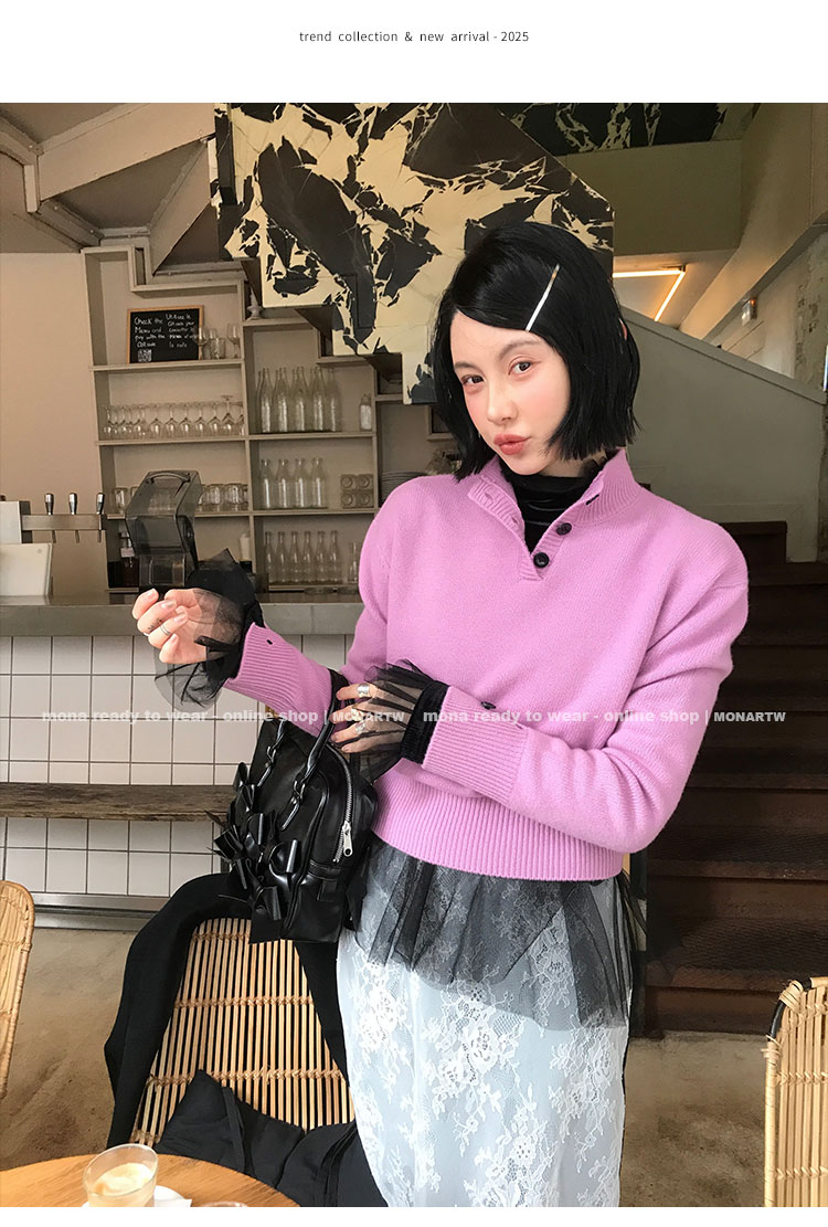 MONARTW Wool Stand Collar Knit Sweater
